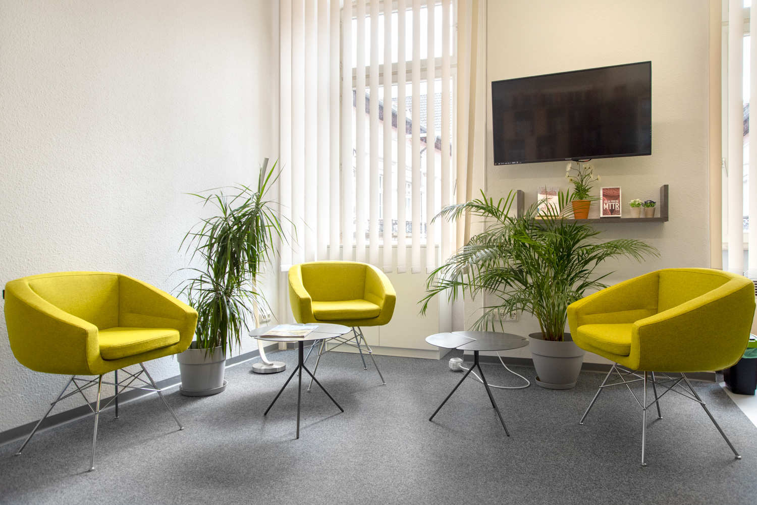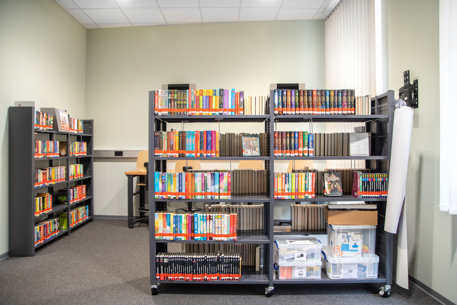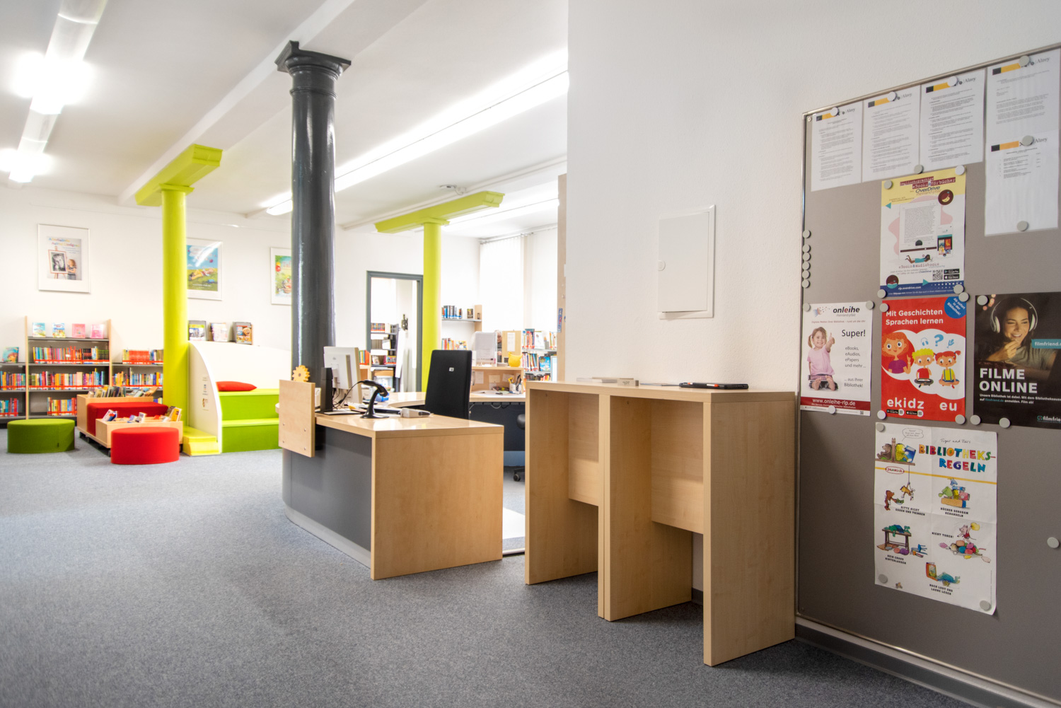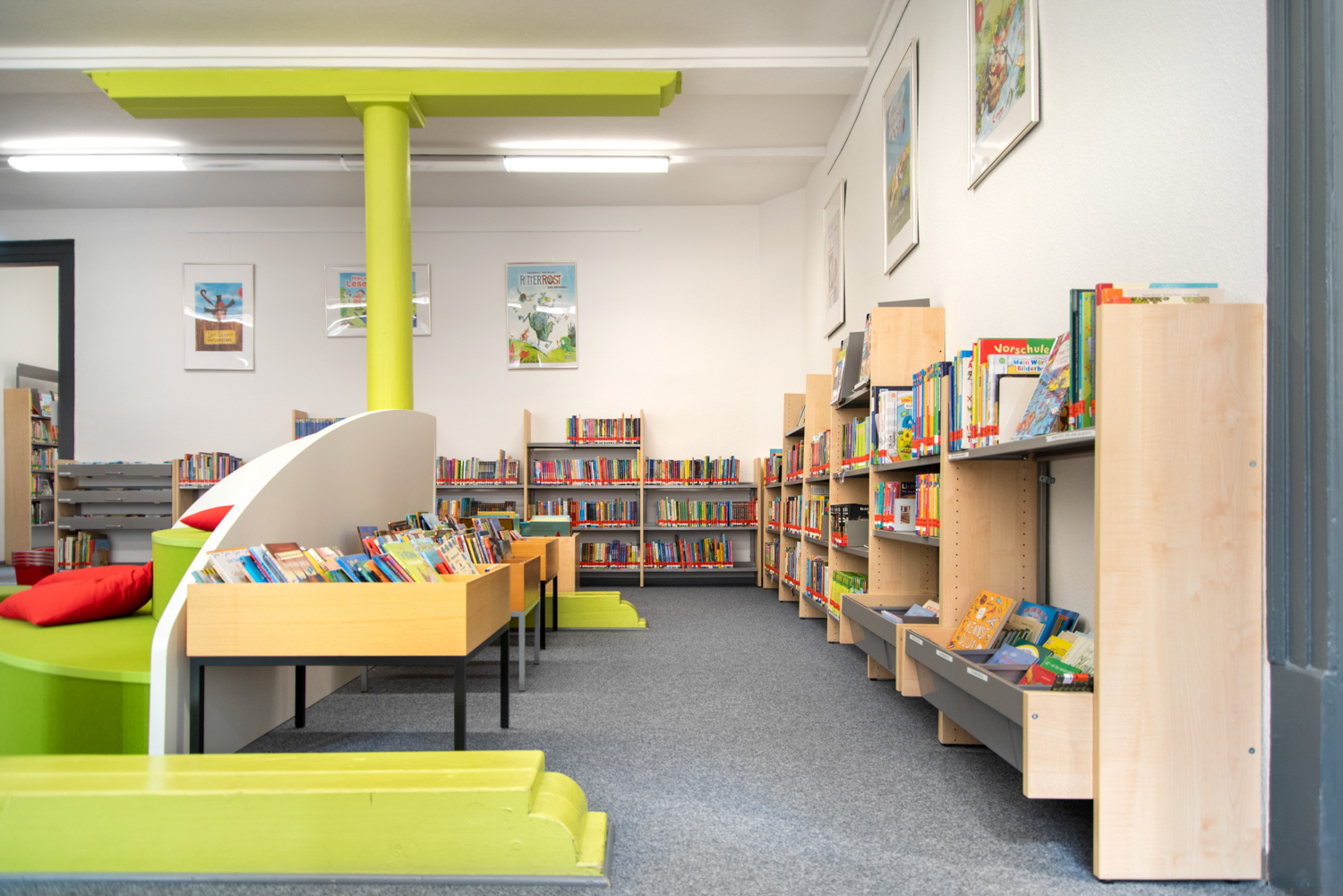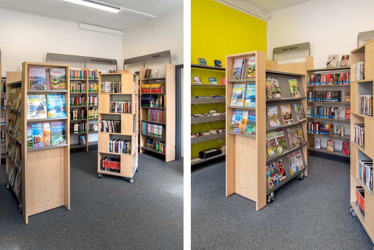 Dans un bâtiment classé monument historique et situé dans le centre d'Alzey, nous avons créé une combinaison élégante et moderne de mobilier de bibliothèque standard et de nouveaux concepts décoratifs.