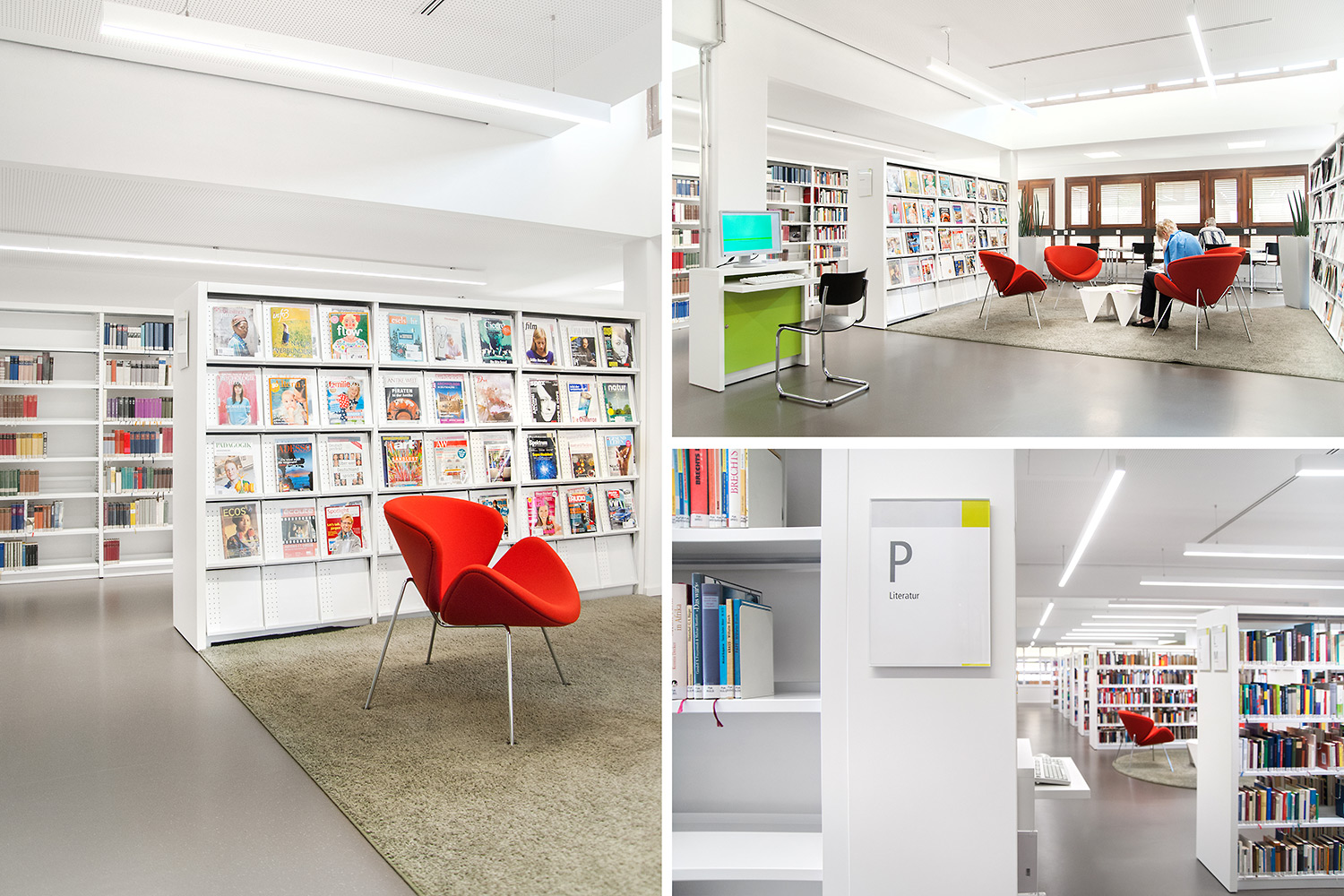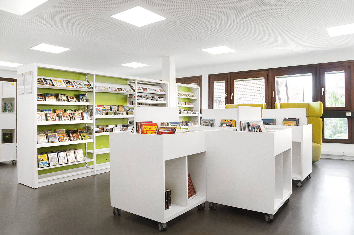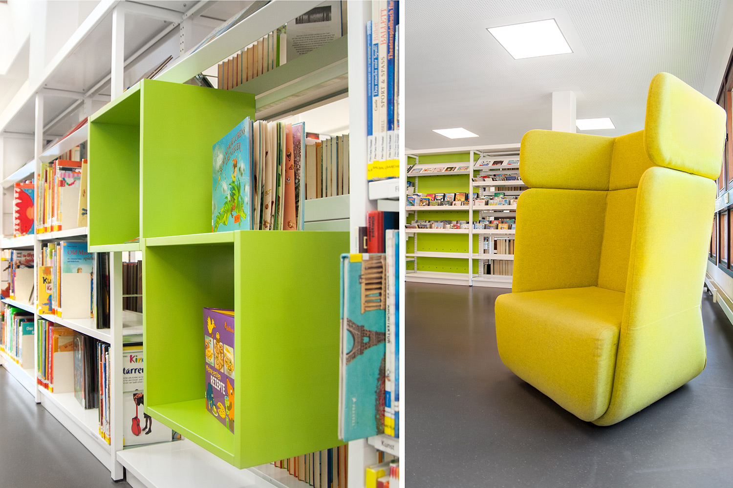 La bibliothèque, située au cœur de la ville historique de Bietigheim, avait besoin de se doter d’un espace de relaxation, mais aussi d’un environnement moderne où les utilisateurs se sentent pleinement à l’aise. La bibliothèque a été créée pour répondre aux besoins de tous les visiteurs, jeunes ou moins jeunes. Un exemple ? La zone enfants stimule l’imagination des plus petits pendant que les parents s’offrent un moment de détente dans l’espace lounge.
