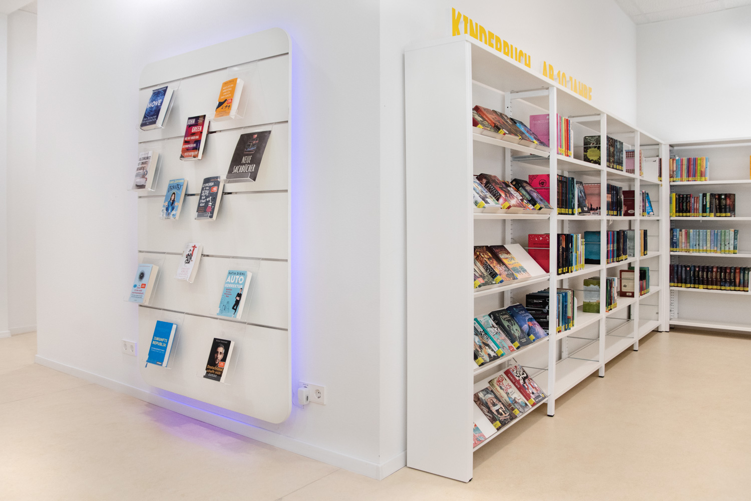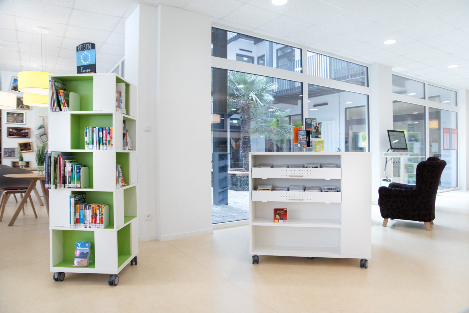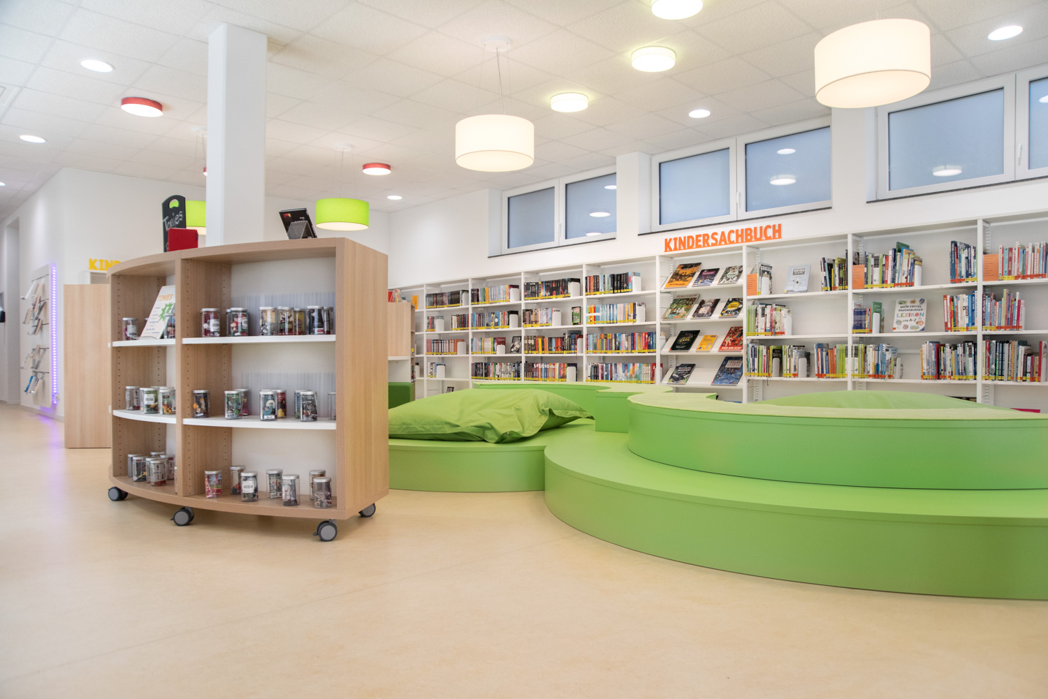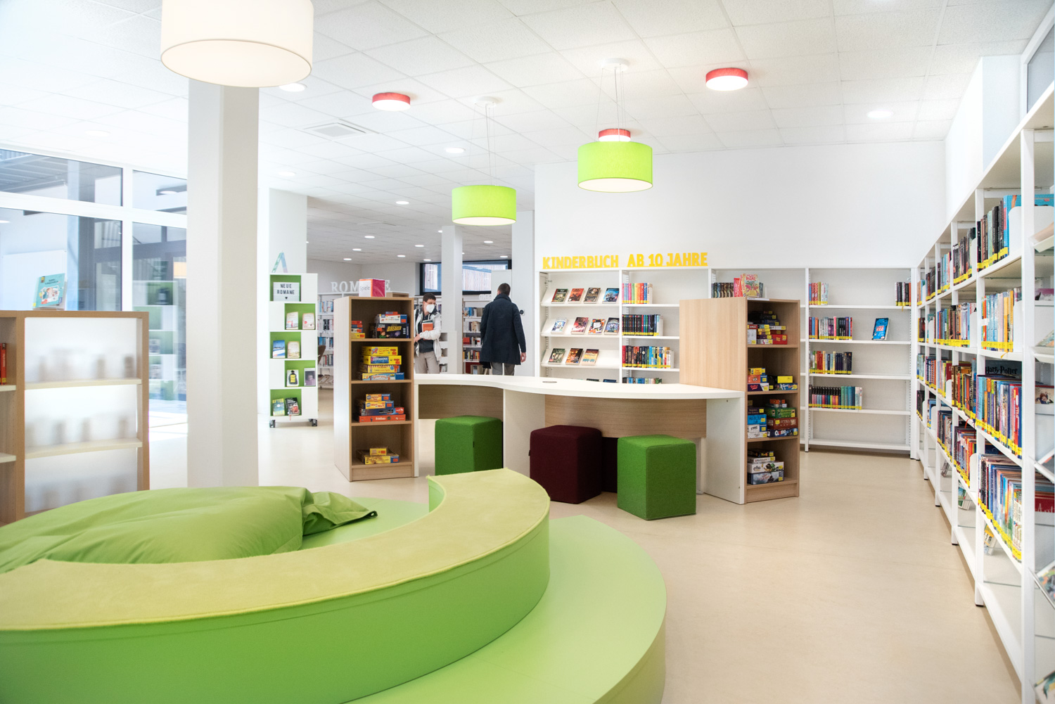 Notre équipe d'architectes, en collaboration avec la bibliothèque d'Ilsfeld, a proposé des solutions originales concernant les couleurs et les formes du mobilier. Cela a donné naissance à cette très belle bibliothèque, accueillante et de haute qualité.