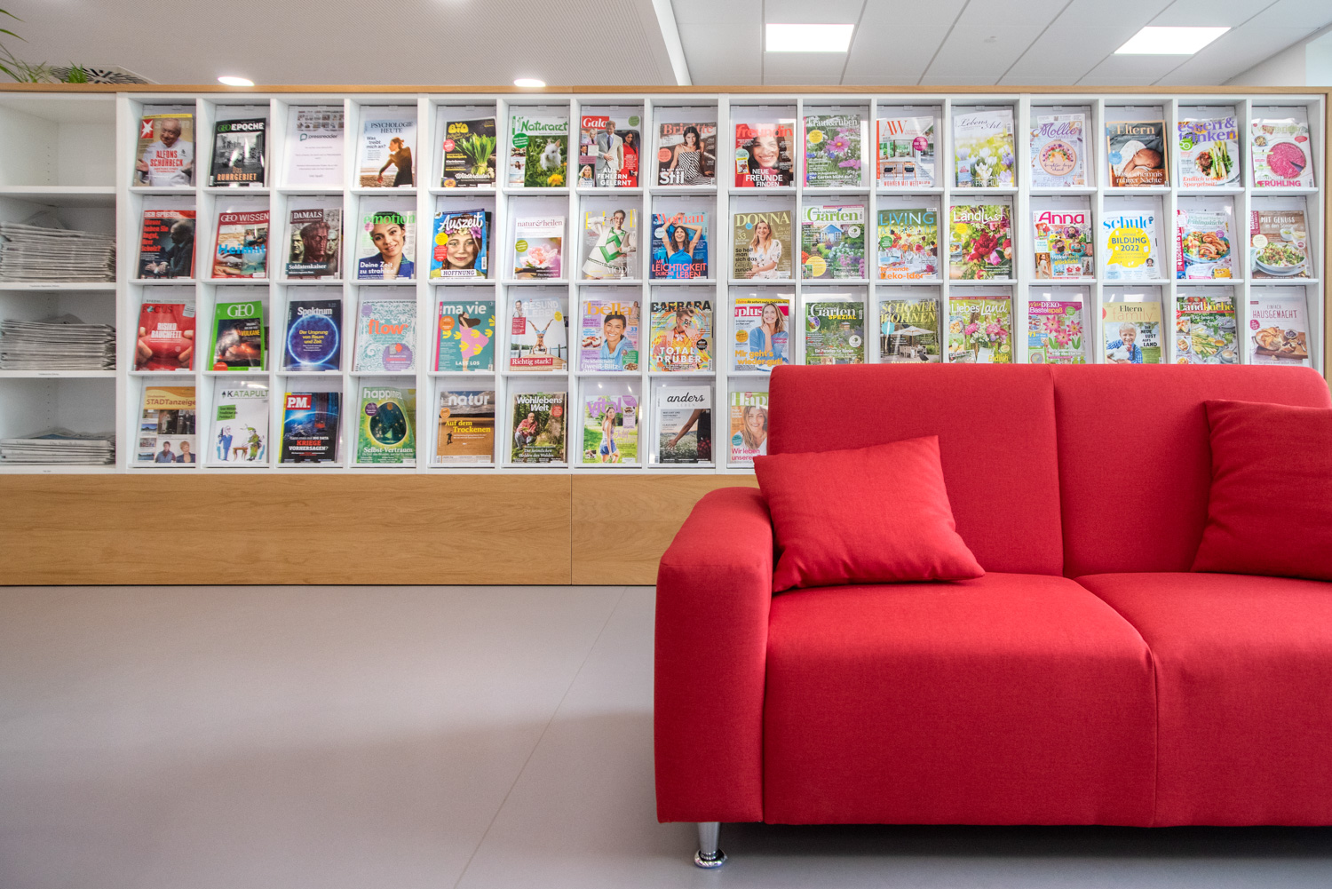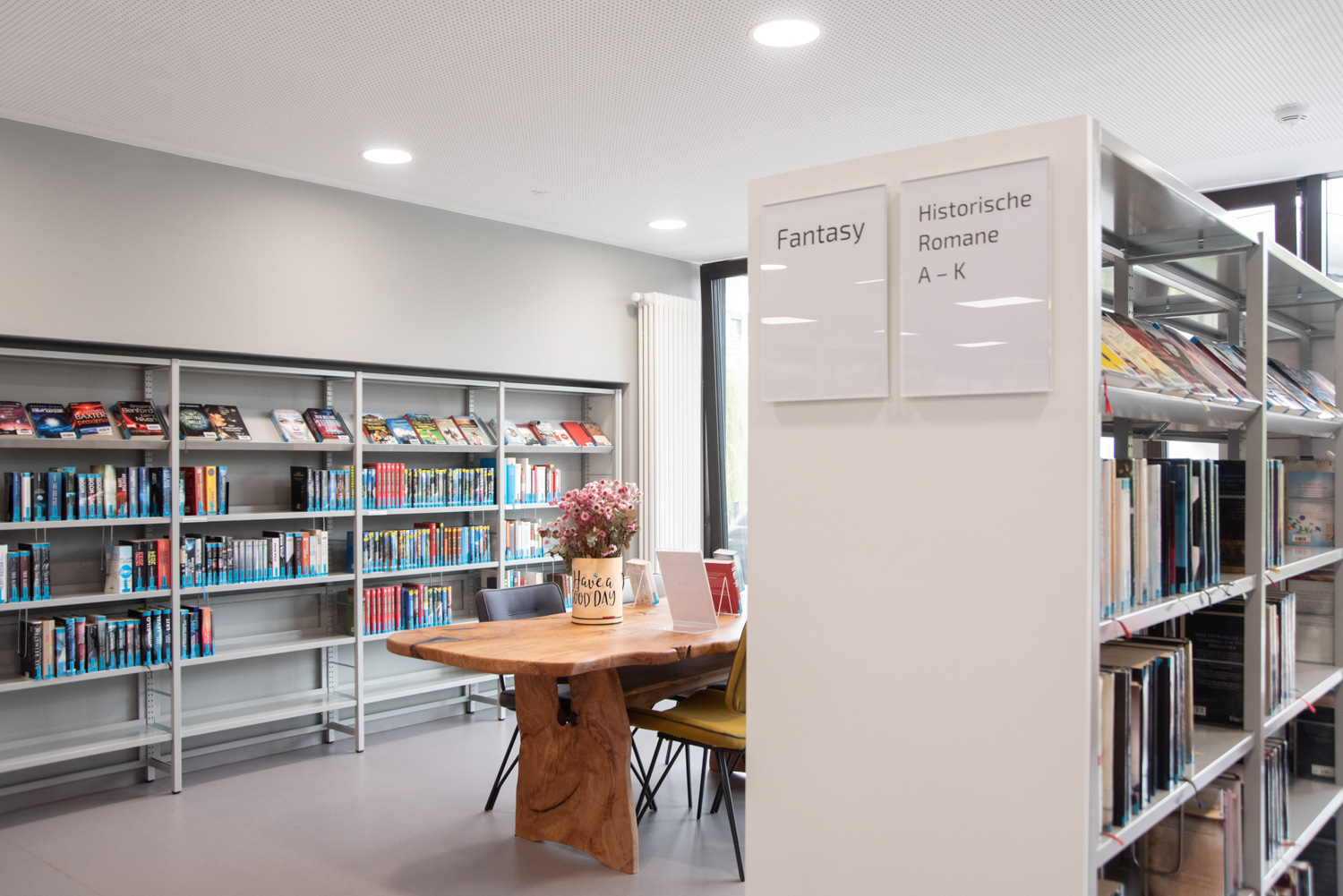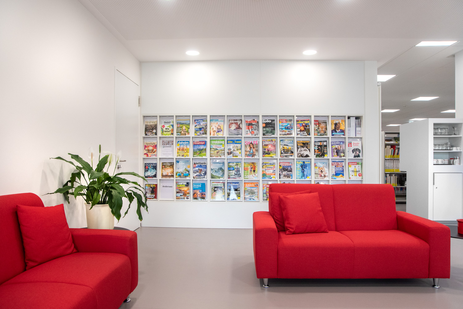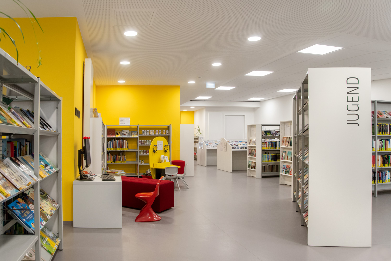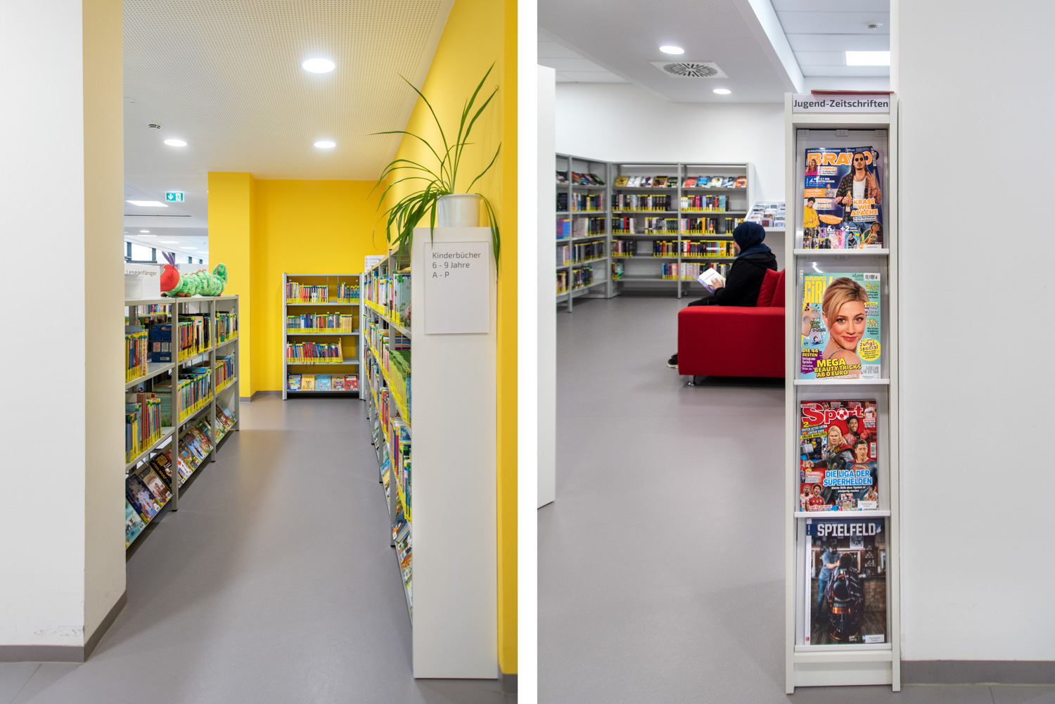 A la bibliothèque de Sinsheim tous les rayonnages métalliques existants ont été réutilisés et modernisées. Parallèlement, de nouveaux meubles, tels que la pyramide de présentation Wow et la table Inform, ont été ajoutés à la bibliothèque pour lui donner un nouveau look.