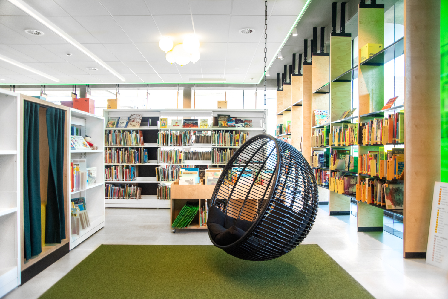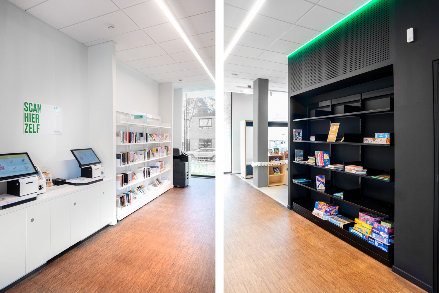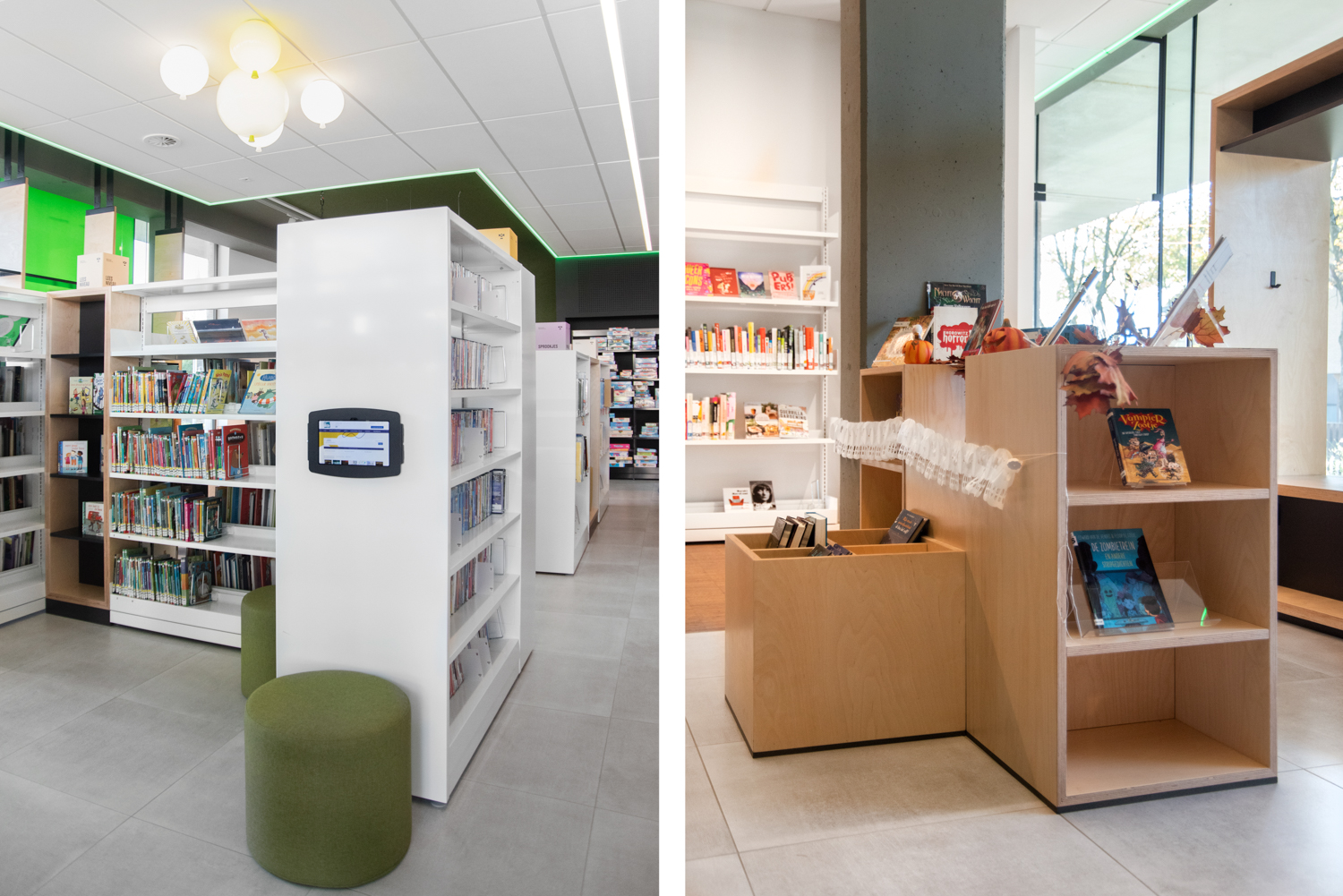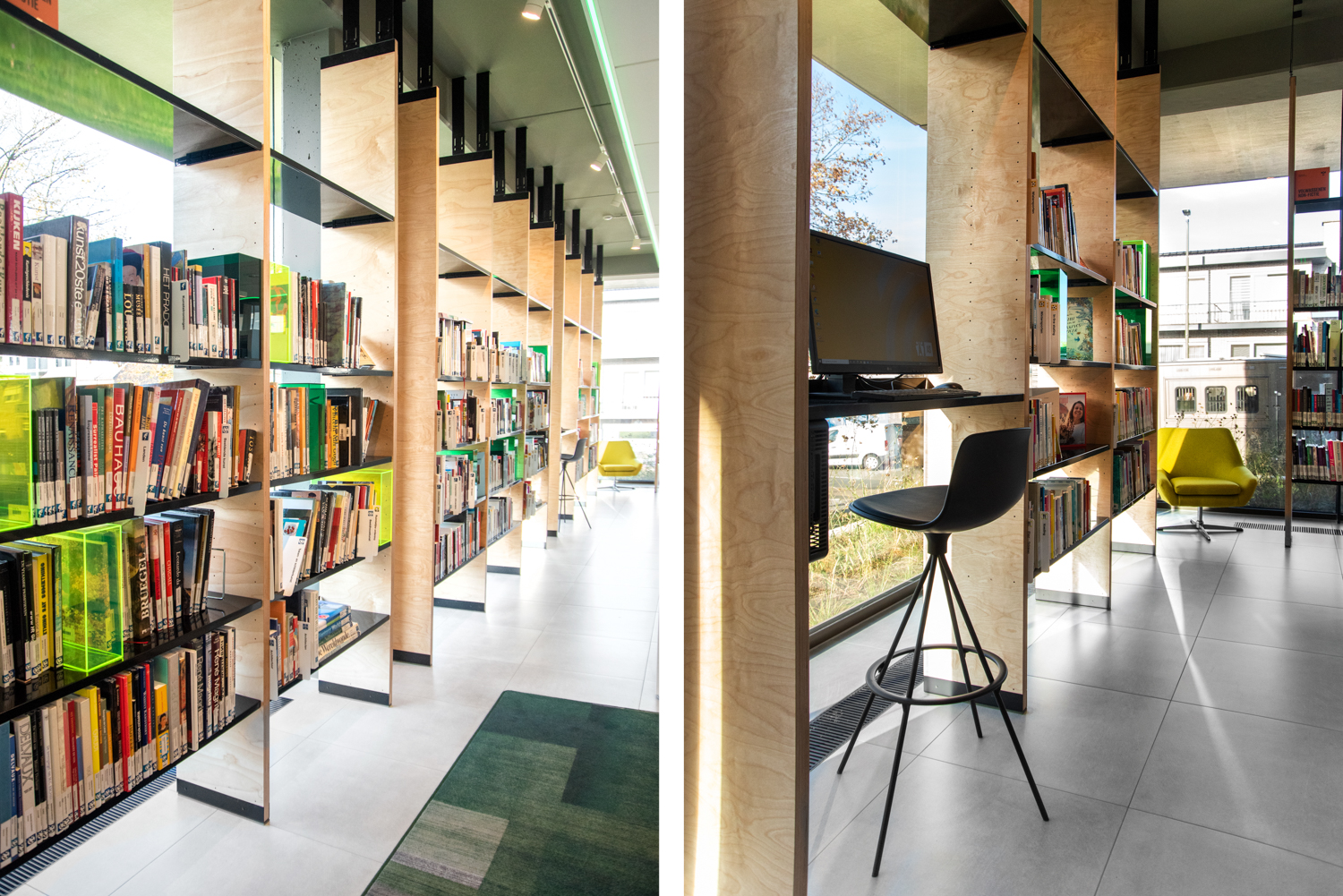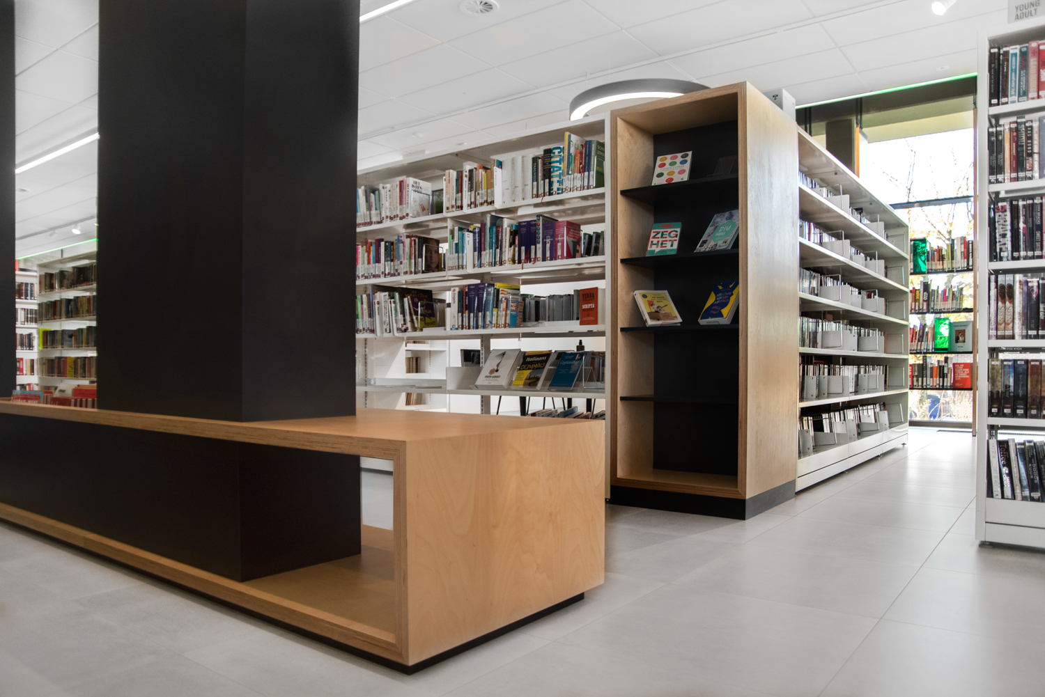 La bibliothèque publique de AS est située au milieu de la province belge du Limbourg. Elle est caractérisée par beaucoup de lumière et par son atmosphère chaleureuse. L’aménagement combine des mobiliers de bibliothèque standard et des réalisations sur mesure.