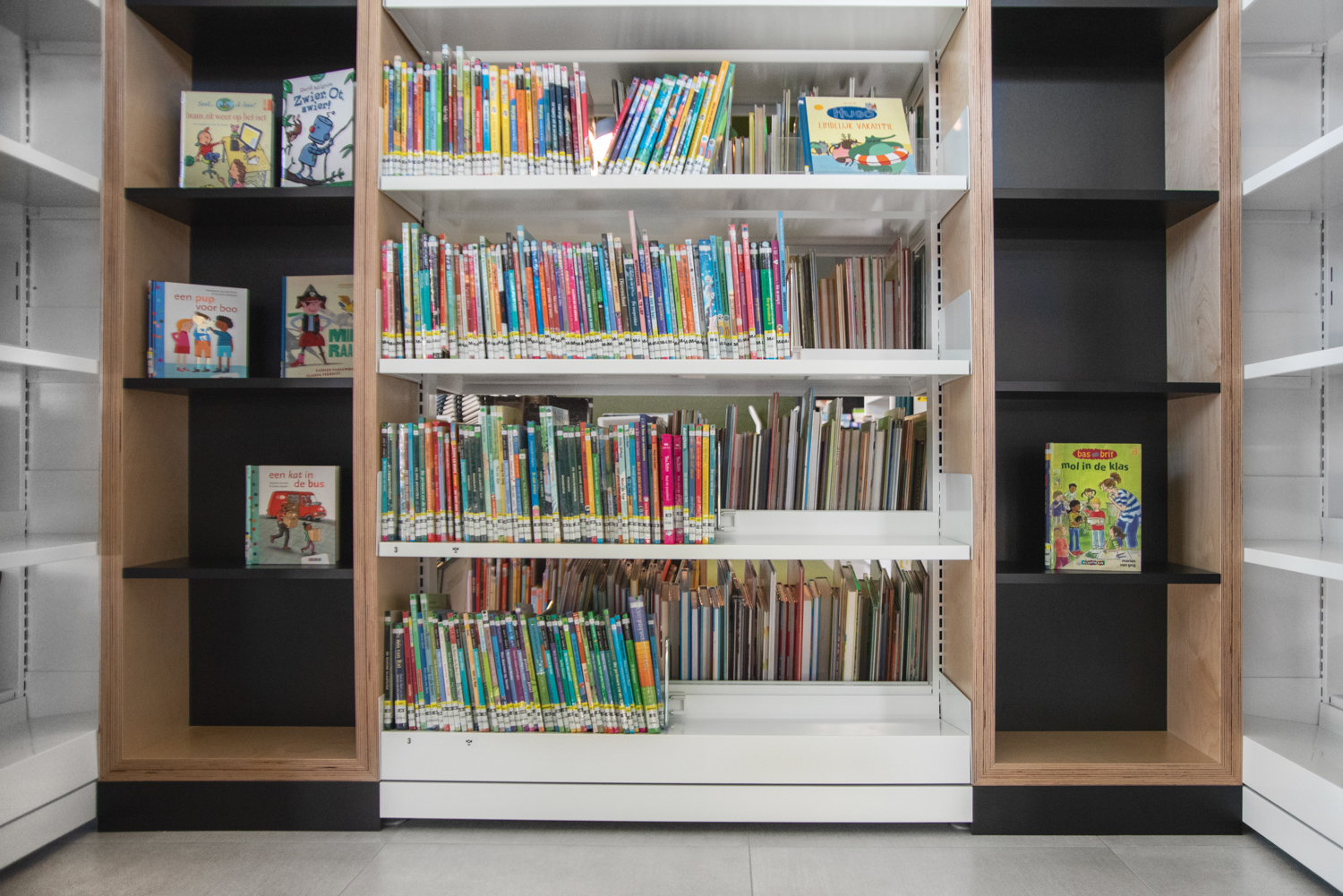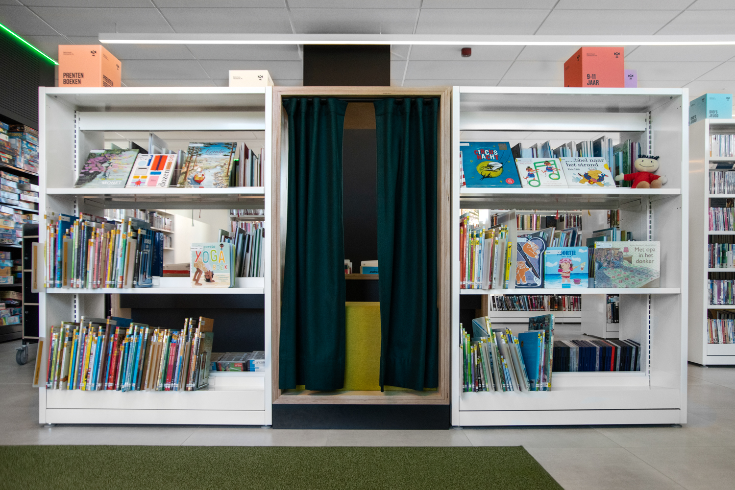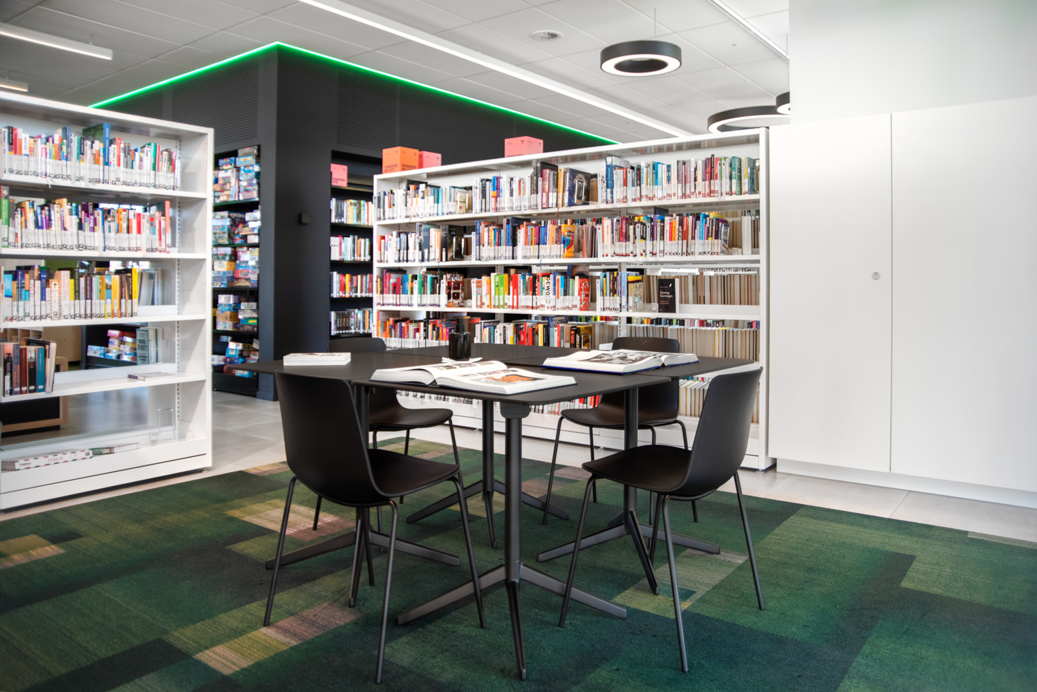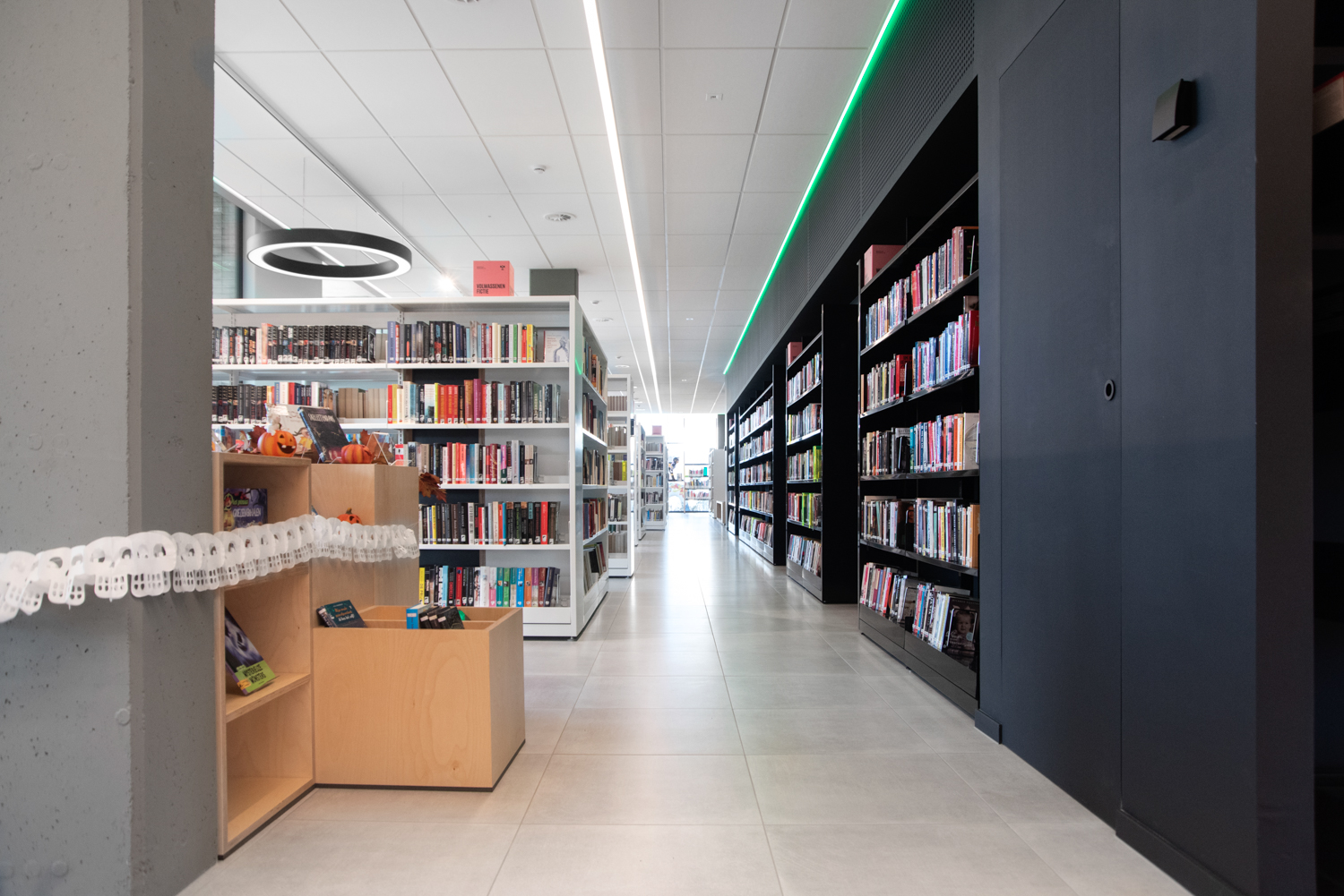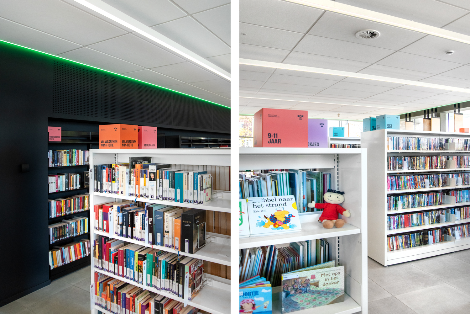 La bibliothèque publique de AS est située au milieu de la province belge du Limbourg. Elle est caractérisée par beaucoup de lumière et par son atmosphère chaleureuse. L’aménagement combine des mobiliers de bibliothèque standard et des réalisations sur mesure.