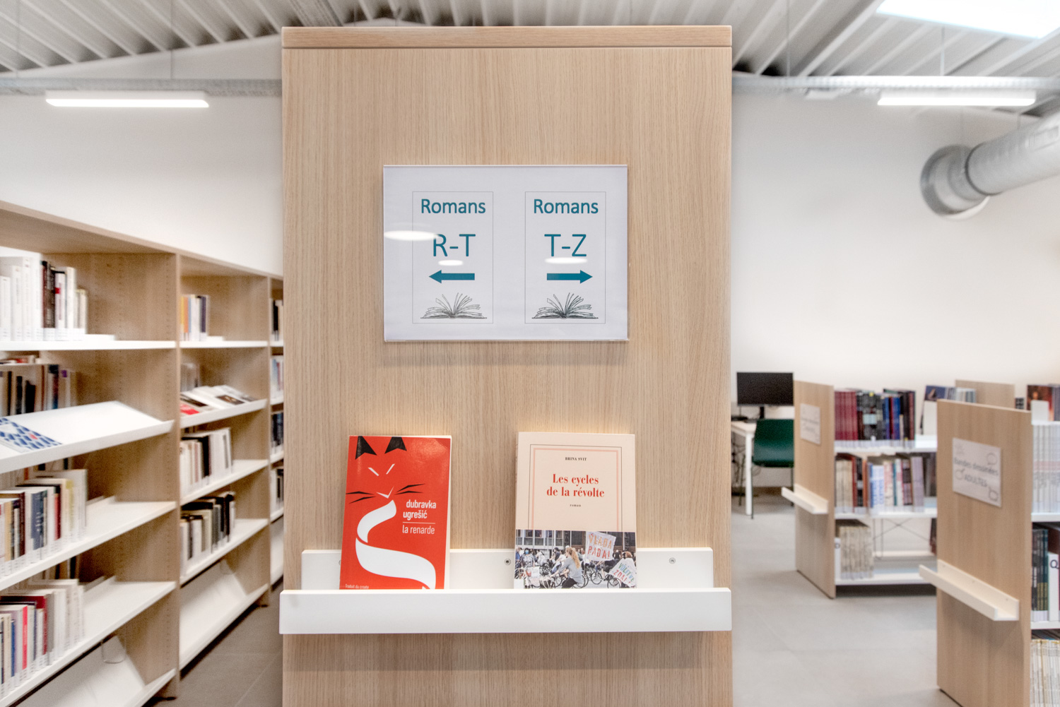 • Des zones d'exposition judicieusement réparties pour présenter les nouveautés, intégrées dans les rayonnages afin de les associer de manière harmonieuse à la collection existante.