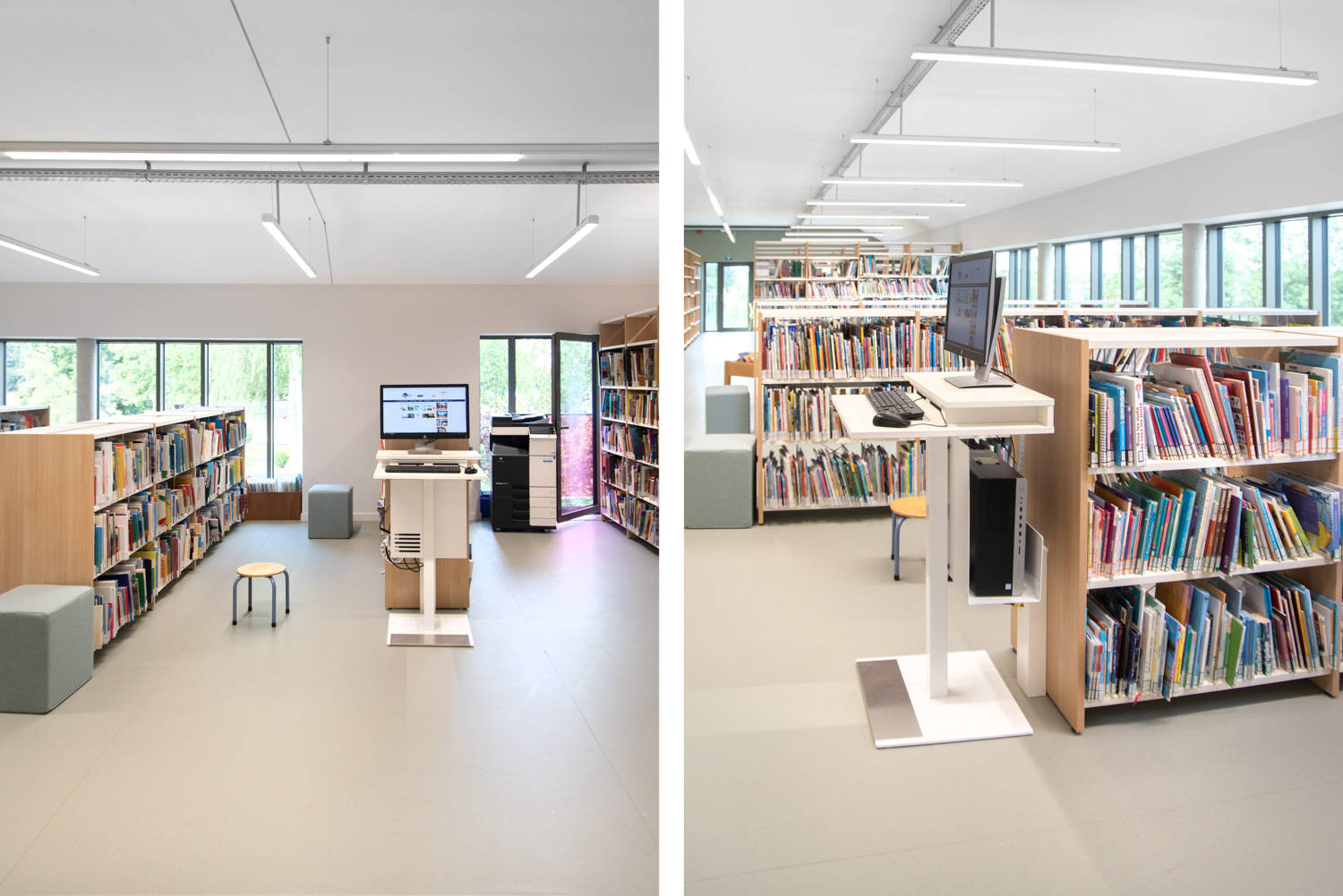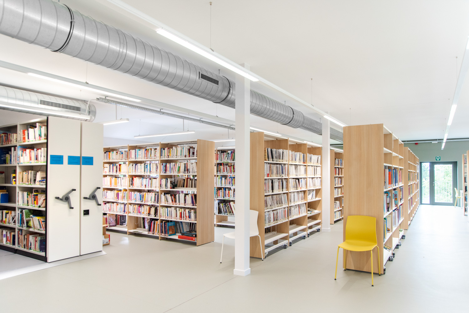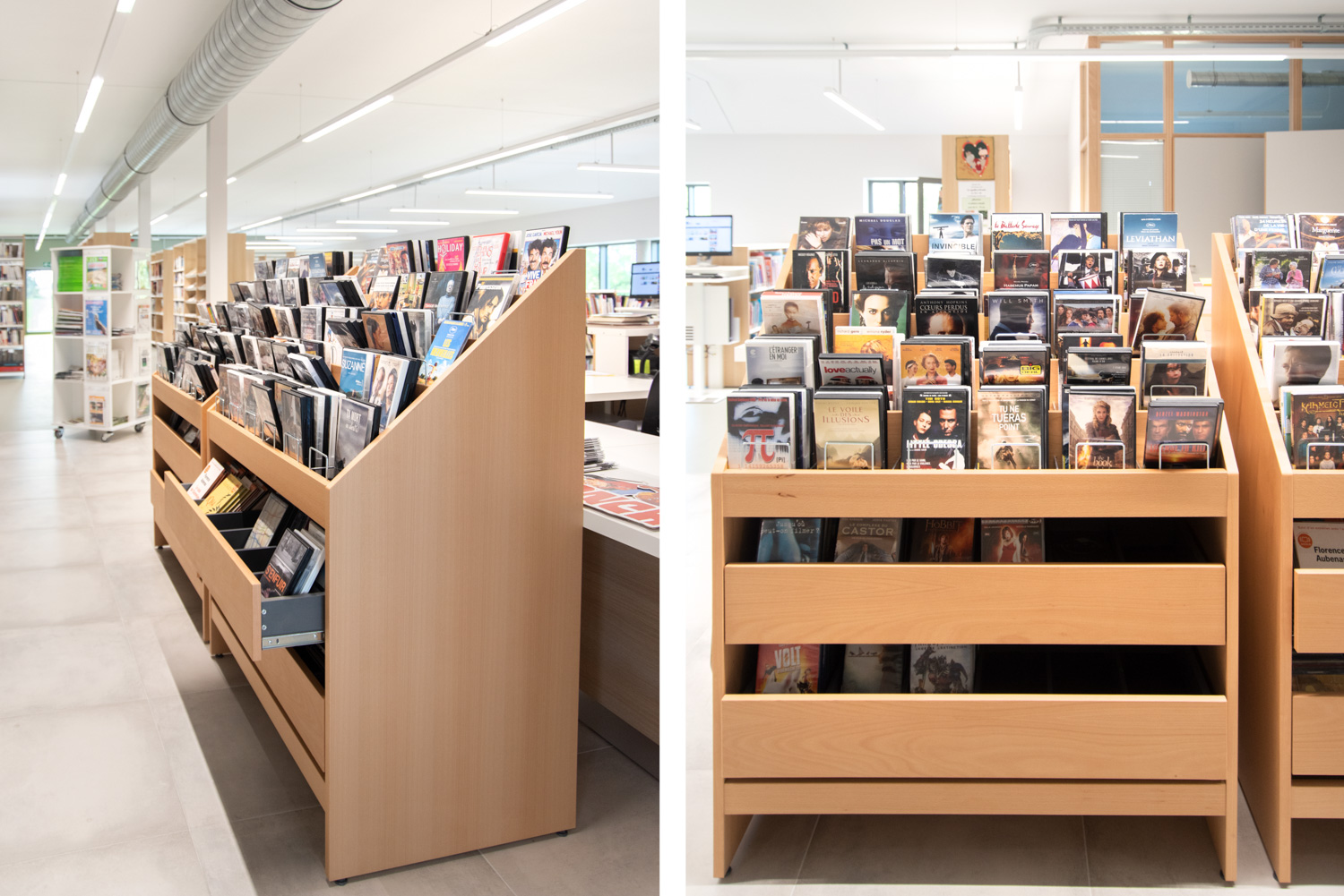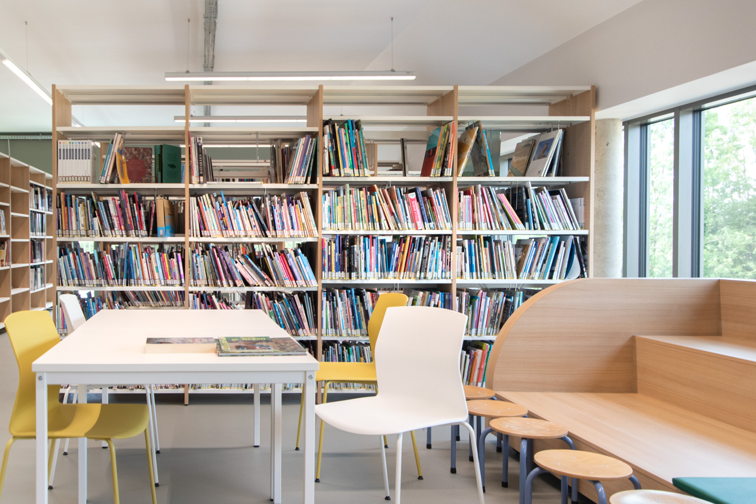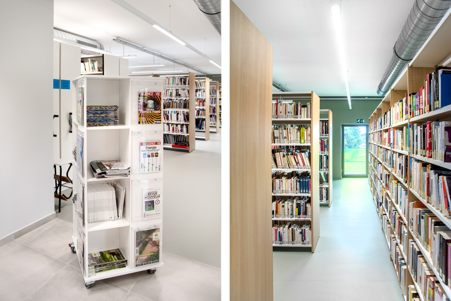 La bibliothèque publique de Florenville fait partie d'un projet municipal qui vise à réunir différents publics dans un même bâtiment. À l'entrée se trouve un large comptoir d'accueil facile d'accès pour les personnes à mobilité réduite. Les rayonnages en bois sont harmonieusement combinés avec des meubles et assises colorés.