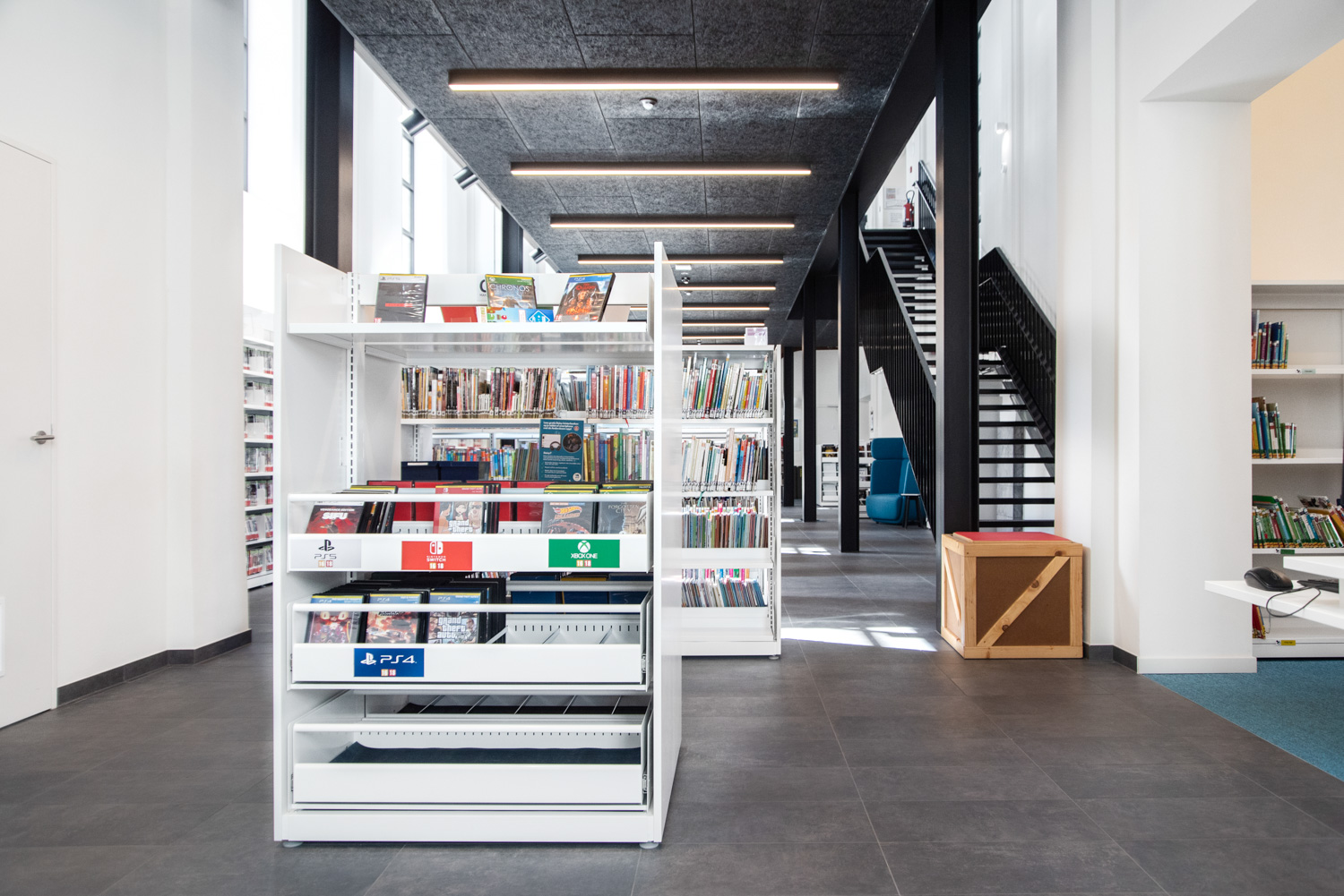 Katrien Schroyens, bibliothécaire, est fière: "Les usagers de la bibliothèque sont très enthousiastes à propos de la nouvelle bibliothèque. L'apparence et les formes des assises et autres mobiliers sont particulièrement attrayantes et élégantes. Une des remarques fréquemment entendues est que les lecteurs veulent rester plus longtemps dans la bibliothèque. Grâce à son intérieur chaleureux, la bibliothèque est devenue un véritable lieu de vie au cœur de la commune."