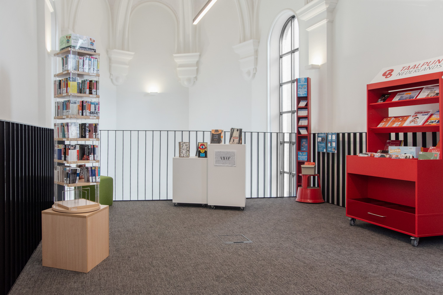 La nouvelle bibliothèque a été installée dans ce qui était l'ancien monastère et la Chapelle Winter, au centre de Hamme. Le bâtiment rénové a beaucoup de charme et la disposition des colonnes et des piliers de la chapelle a été fondamentale pour l'aménagement intérieur.