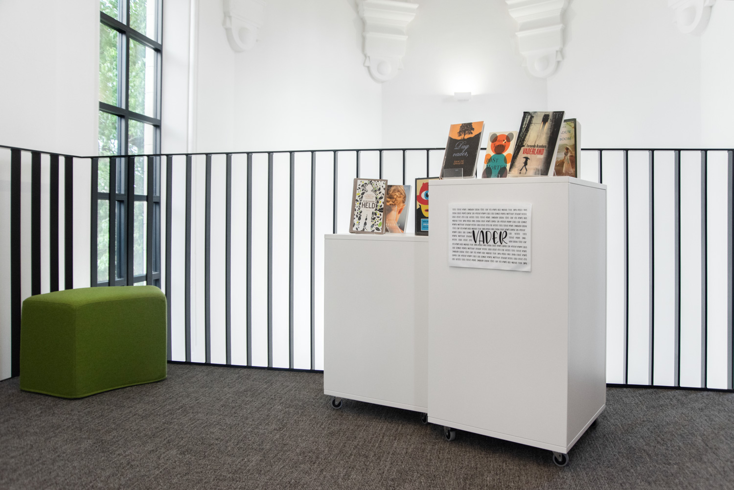Des étagères blanches ont été choisies pour mettre en relief la lumière dans la pièce. Les différentes nuances de bleu et de vert utilisées pour les nombreuses assises dans la bibliothèque sont basées sur les couleurs utilisées pour symboliser la municipalité de Hamme. Les lignes courbes des rayonnages de la section des documentaires confèrent à l'espace une atmosphère plus intime.