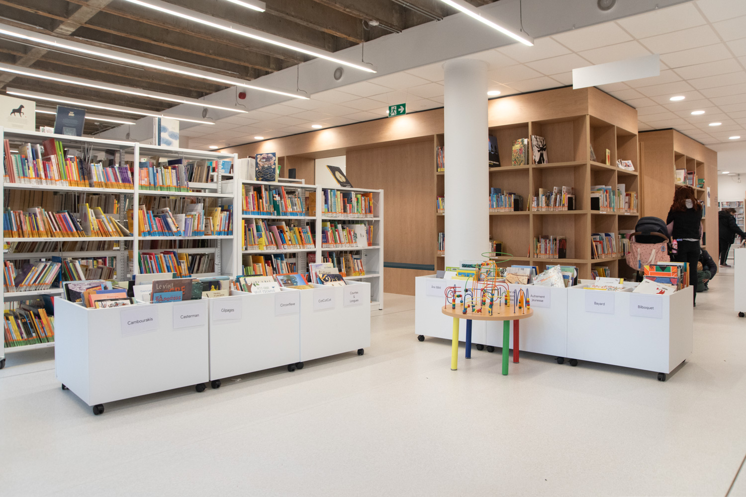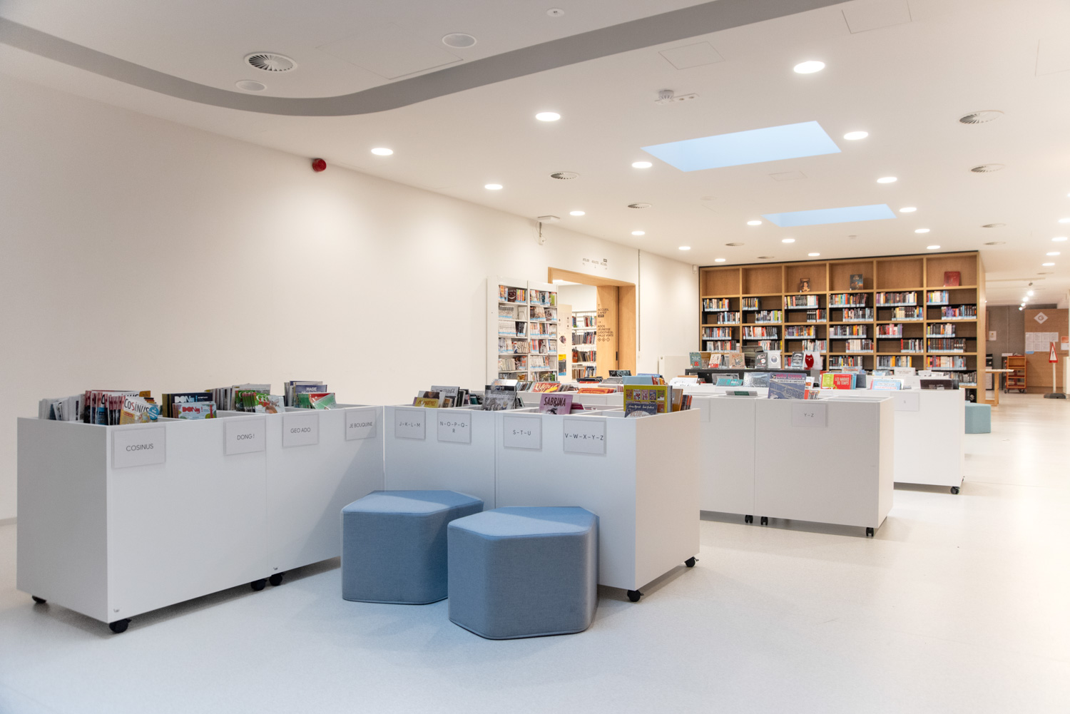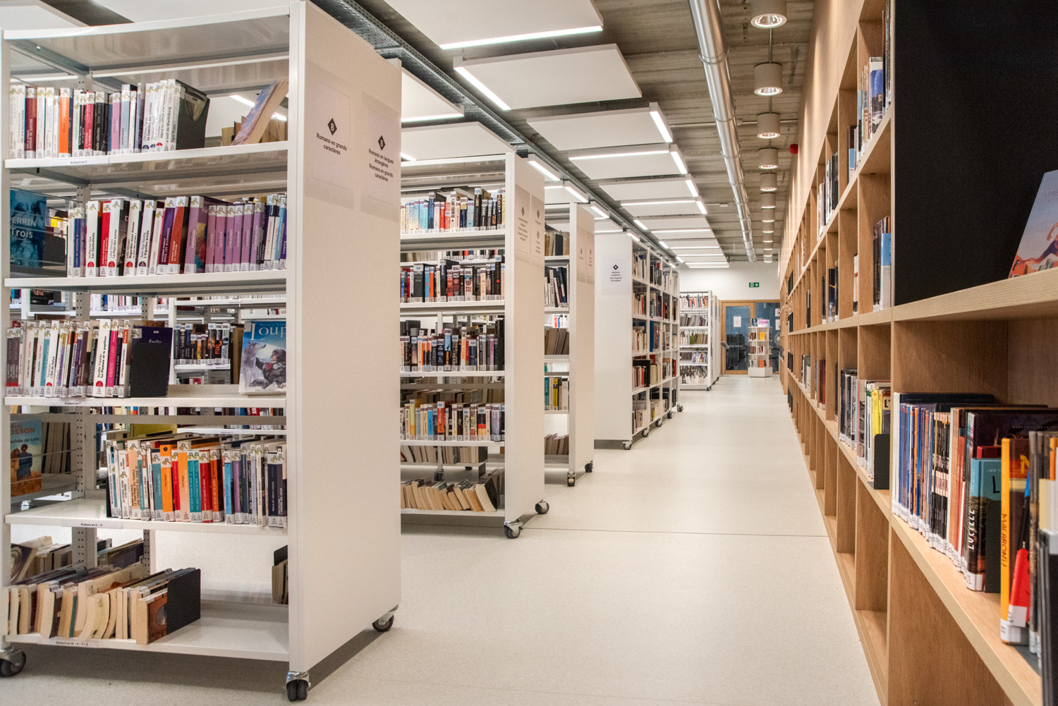Silvia Maria Rossi - agent technique en chef : « A l’ère du numérique, la bibliothèque, en tant qu’espace public, subit une vraie révolution. C’est actuellement un des lieux publics des plus évolutifs. La bibliothèque devient de plus en plus un lieu de vie social, beaucoup plus hétérogène que ce que l’on pense. Pour cette raison, les espaces sont conçus par plateaux open-space, délimités et connectés entre eux par des cloisons/étagères en bois sur mesure ou des « aquariums » vitrés. «