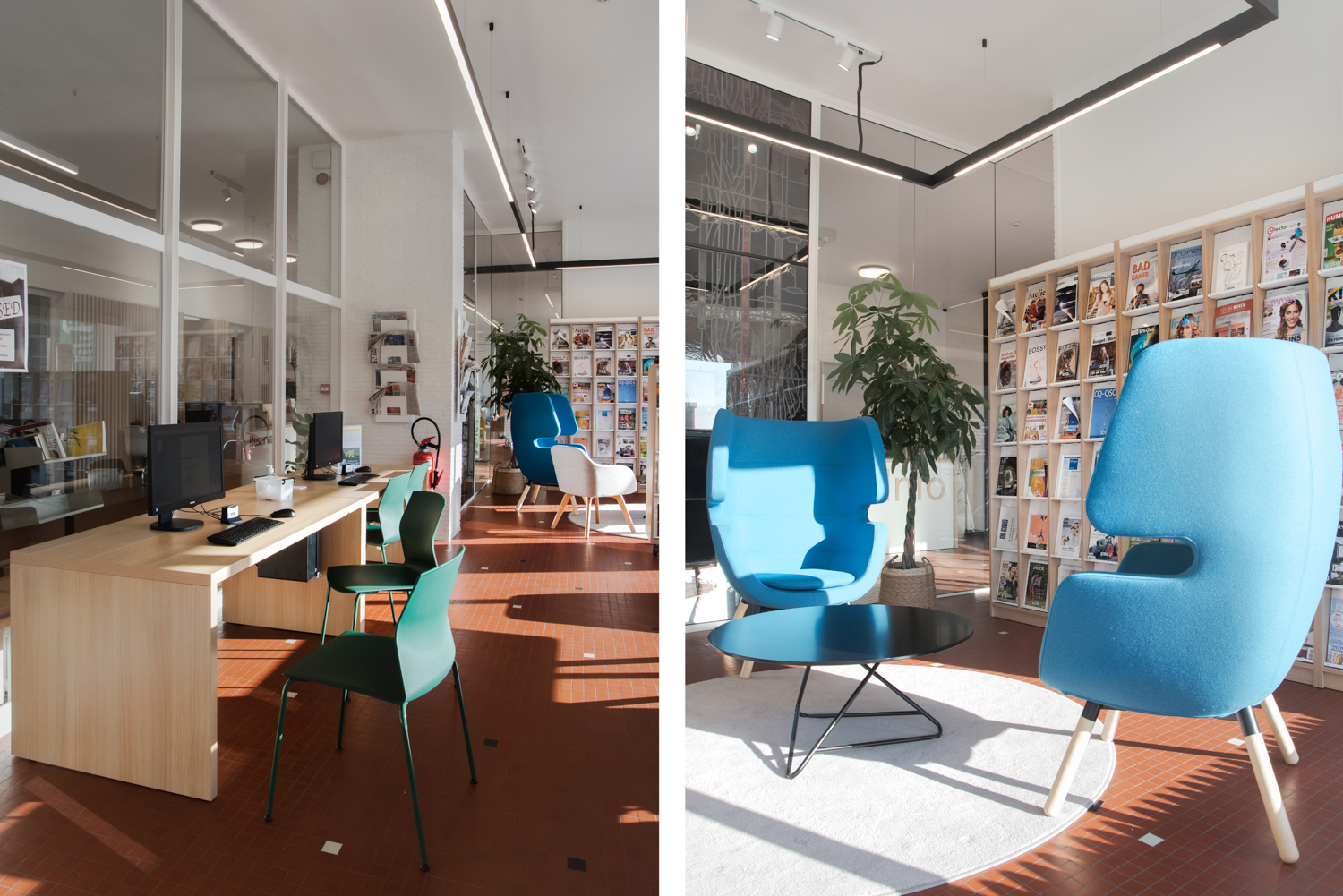 Au cours des dernières années, il était devenu de plus en plus évident que l’aménagement mobilier ainsi que l’offre des services de la bibliothèque avaient besoin d’un lifting complet. Un nouvel espace d’accueil convivial spécialement conçu et une nouvelle et large gamme de mobilier installés en 2021 ont fait de la bibliothèque un endroit agréable où le public aime fréquenter et passer du temps. Aujourd’hui, il y a des espaces pour travailler seul ou en groupe avec de nouveaux mobiliers confortables et fonctionnels. De cette façon la bibliothèque peut mieux soutenir l’apprentissage, l’éducation et la sociabilité.