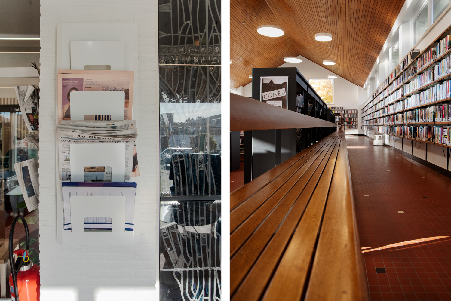 La bibliothèque, située au centre de Ronse, dans les Ardennes flamandes, a été construite en 1963 par l’architecte Dan Craet (1926-2013). Il s’est inspiré du style scandinave encore actuel, une ode à la lumière et aux matériaux naturels.