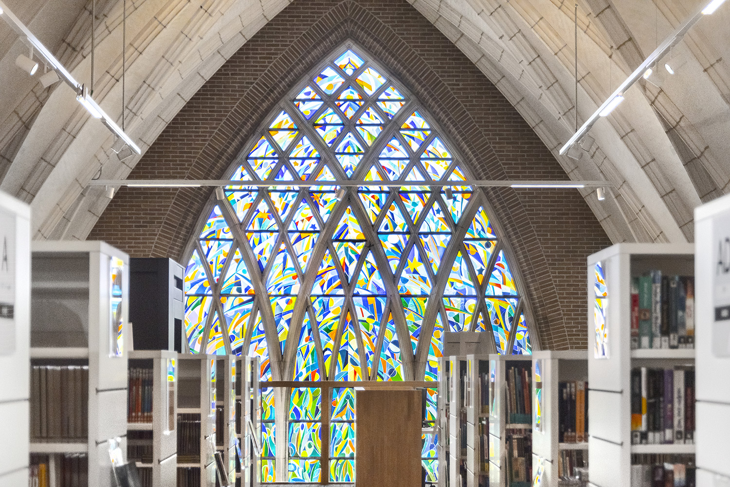 L’origine du nom Bibox ? Il s’agit de la contraction entre « bibliothèque » et « box » : la bibliothèque est en quelque sorte nichée, telle une boîte, au cœur de l’église. « Bi » évoque la fonction double du bâtiment et « ox » l’oxygène qu’offre la bibliothèque à la société. Une belle métaphore pour un véritable lieu d’exception.