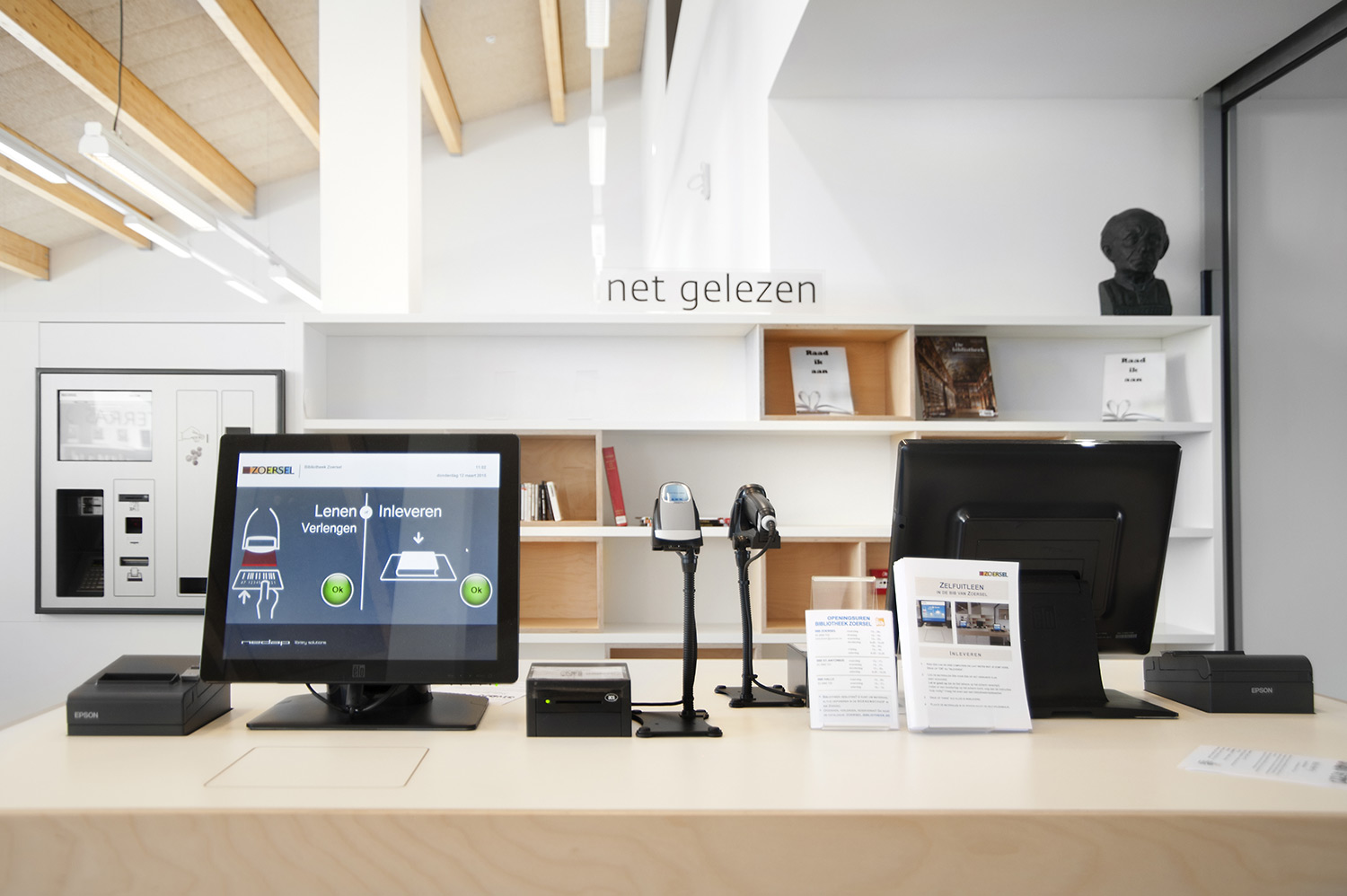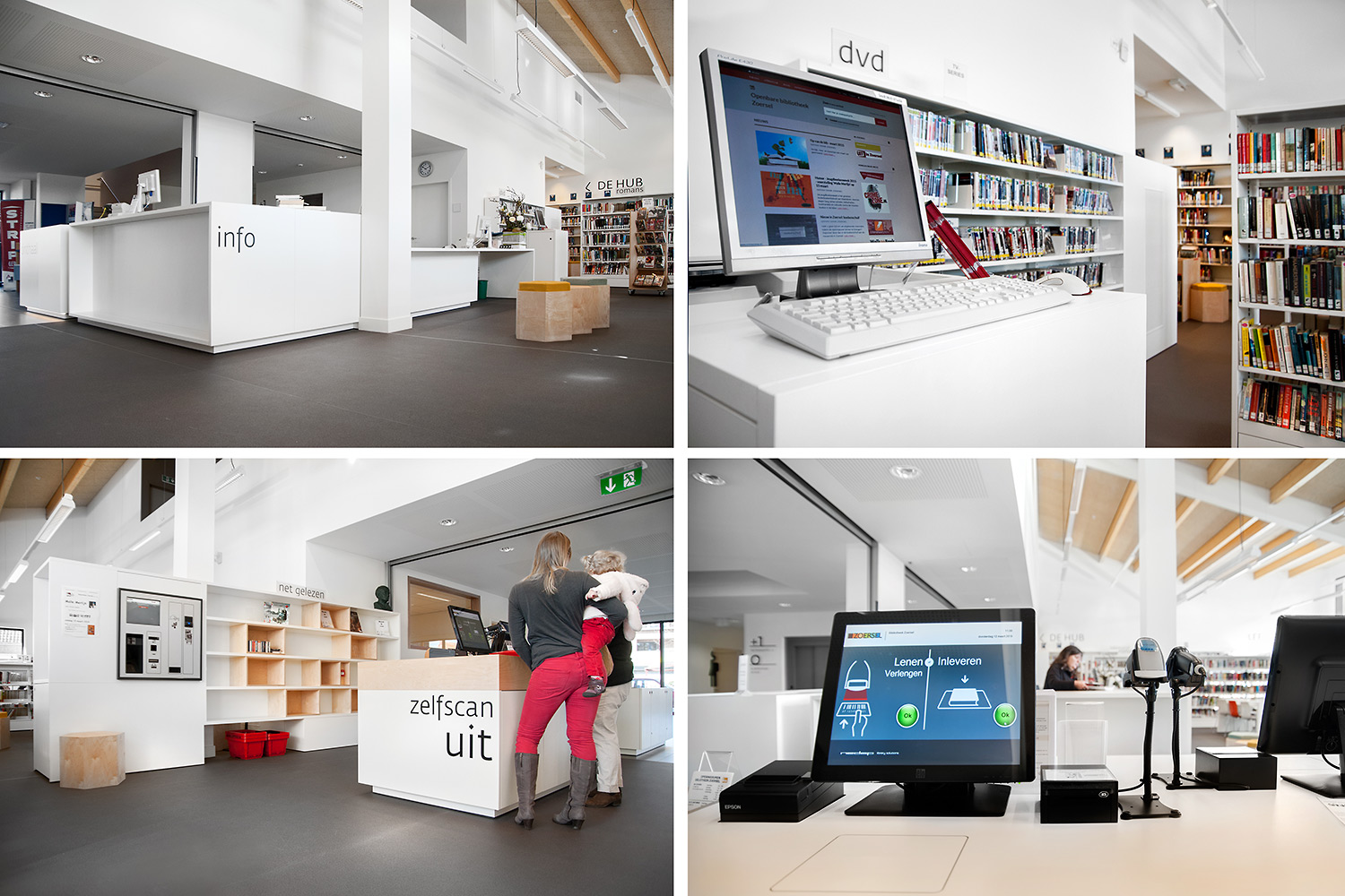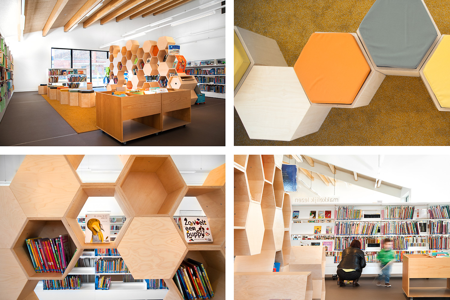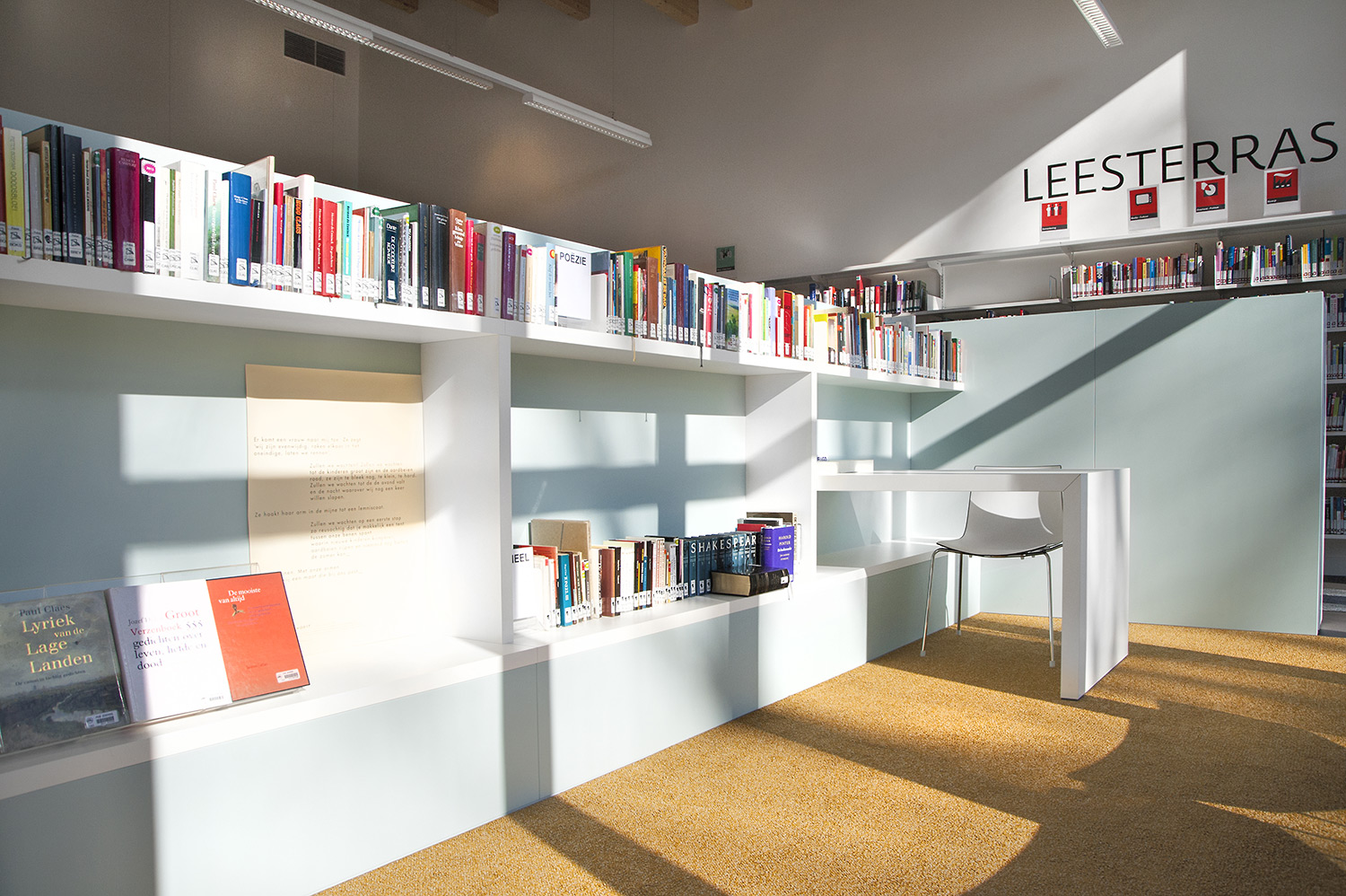 Après des années de nomadisme et un aménagement dans un bâtiment provisoire, la toute nouvelle bibliothèque publique de Zoersel a enfin ouvert ses portes le 24 janvier 2015. L’architecture unique du bâtiment et sa position centrale l’ont naturellement élue au rang de nouvelle icône urbaine. L’édifice offre des espaces de lecture confortables, il est équipé de tables destinées à l’étude et au travail informatique, et se distingue également par son mobilier personnalisé. Le contraste entre les rayonnages d’un blanc épuré et les autres modules de rangement revêtus d’une finition en bois de bouleau ainsi que l’utilisation de formes hexagonales ponctuées de notes colorées d’orange et de jaune créent une atmosphère moderne, reposante et particulièrement accueillante pour les visiteurs. Avec un local informatique séparé et différentes salles de réunion, la bibliothèque répond parfaitement aux besoins de sa communauté de lecteurs et mérite définitivement sa nouvelle place au cœur du centre-ville.