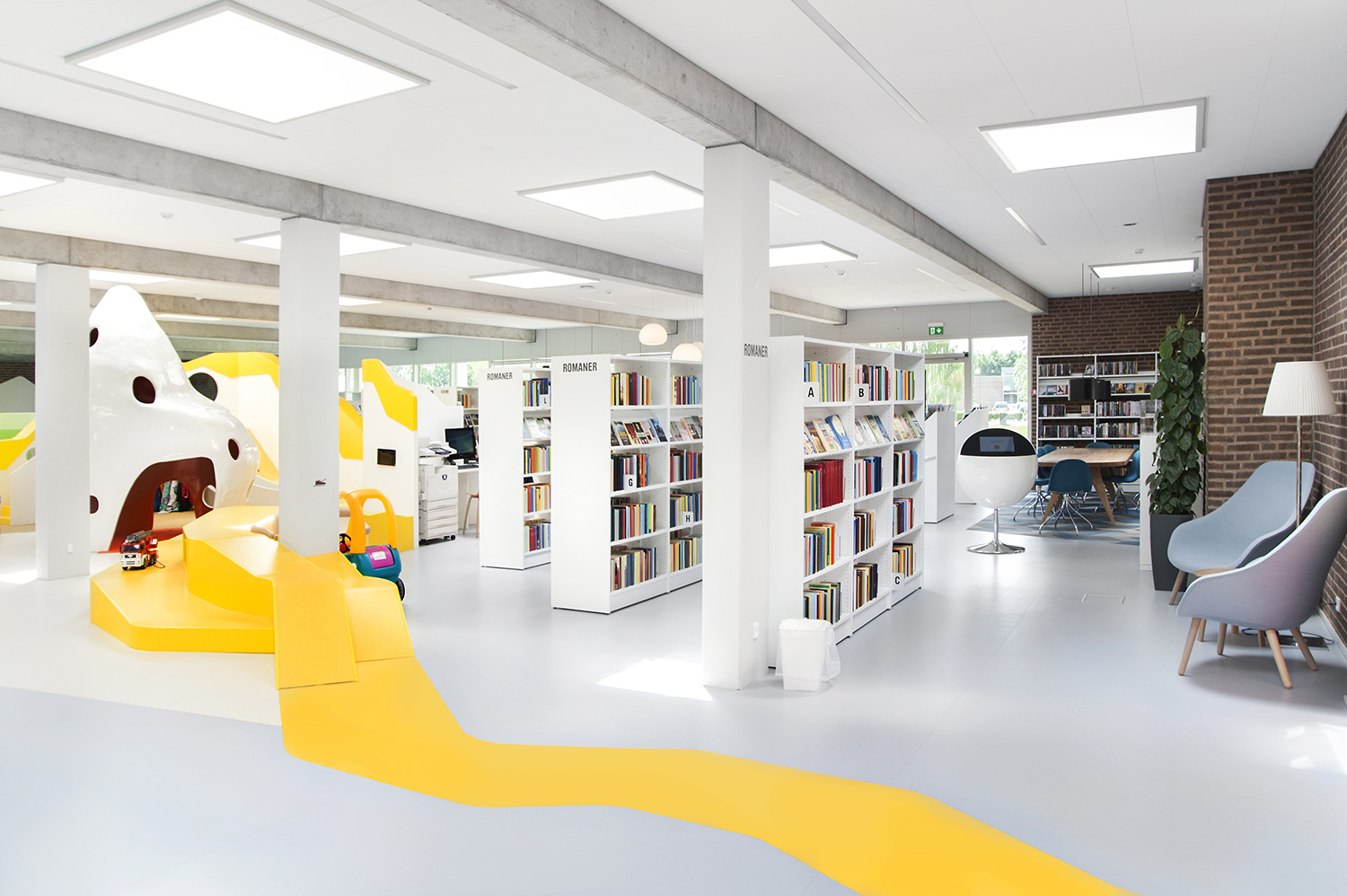 La bibliothèque de Billund a été rénovée et modernisée pour répondre à cette vision. Elle contribue en outre à créer un cadre offrant aux enfants des expériences culturelles, une production culturelle active et un apprentissage créatif.