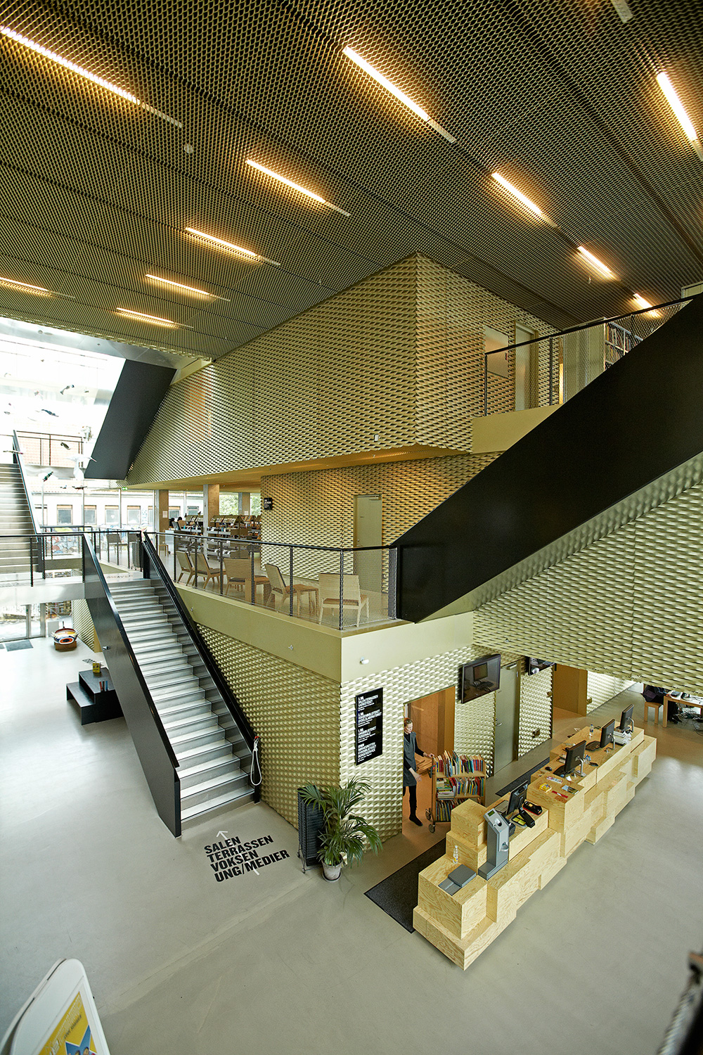 Le lieu possède avant tout une âme qui lui est propre. Les architectes et urbanistes ont réussi le pari audacieux qui consistait à en capturer l’essence tout en la modernisant. Des tôles perforées dorées ornent la façade et le bâtiment a été conçu sous la forme de quatre blocs évoquant quatre livres qui possédant chacun un contenu particulier.