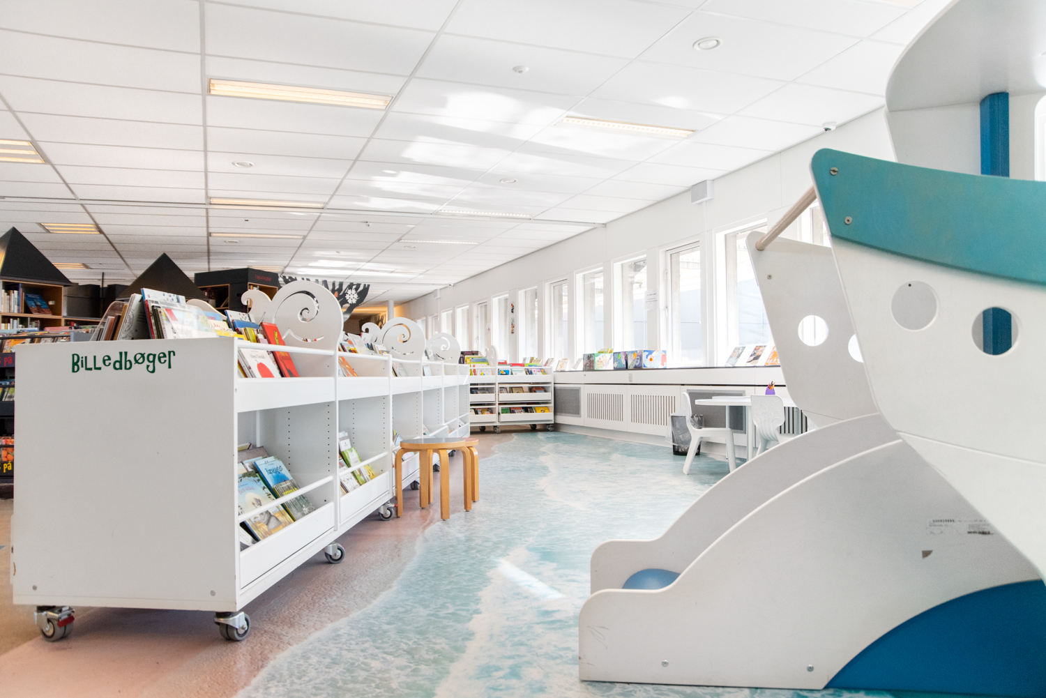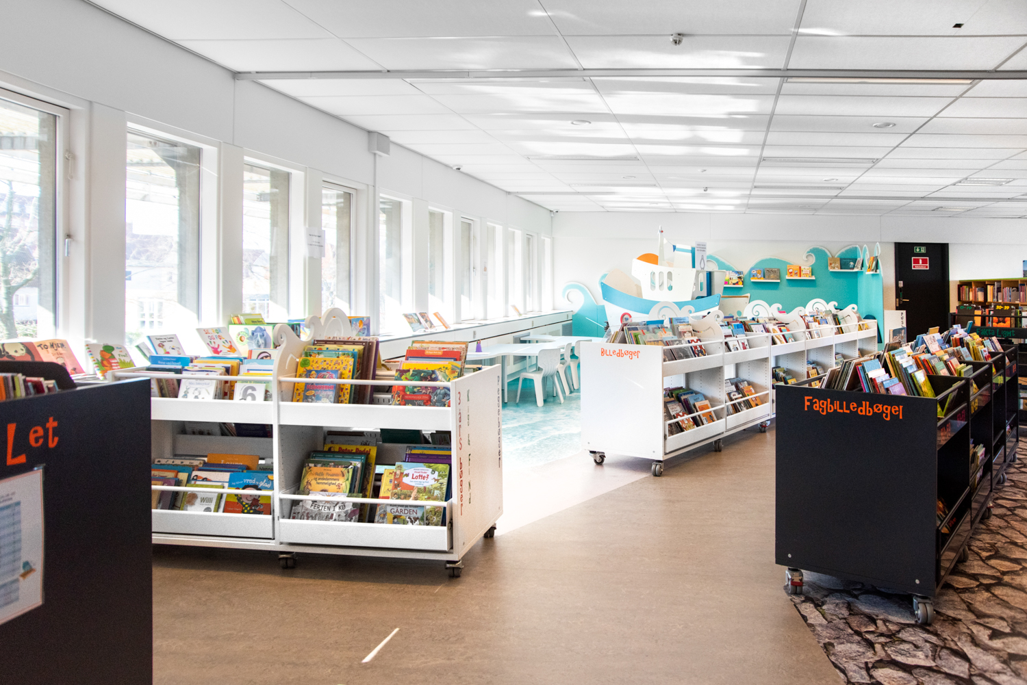 Le projet intérieur a commencé à l’automne 2017. En collaboration avec les architectes de Lammhults Biblioteksdesign A/S, le groupe de bibliothécaires du département jeunesse a commencé à décorer et à transformer l’espace en s’inspirant de l’histoire de la commune de Guldborgsund.
