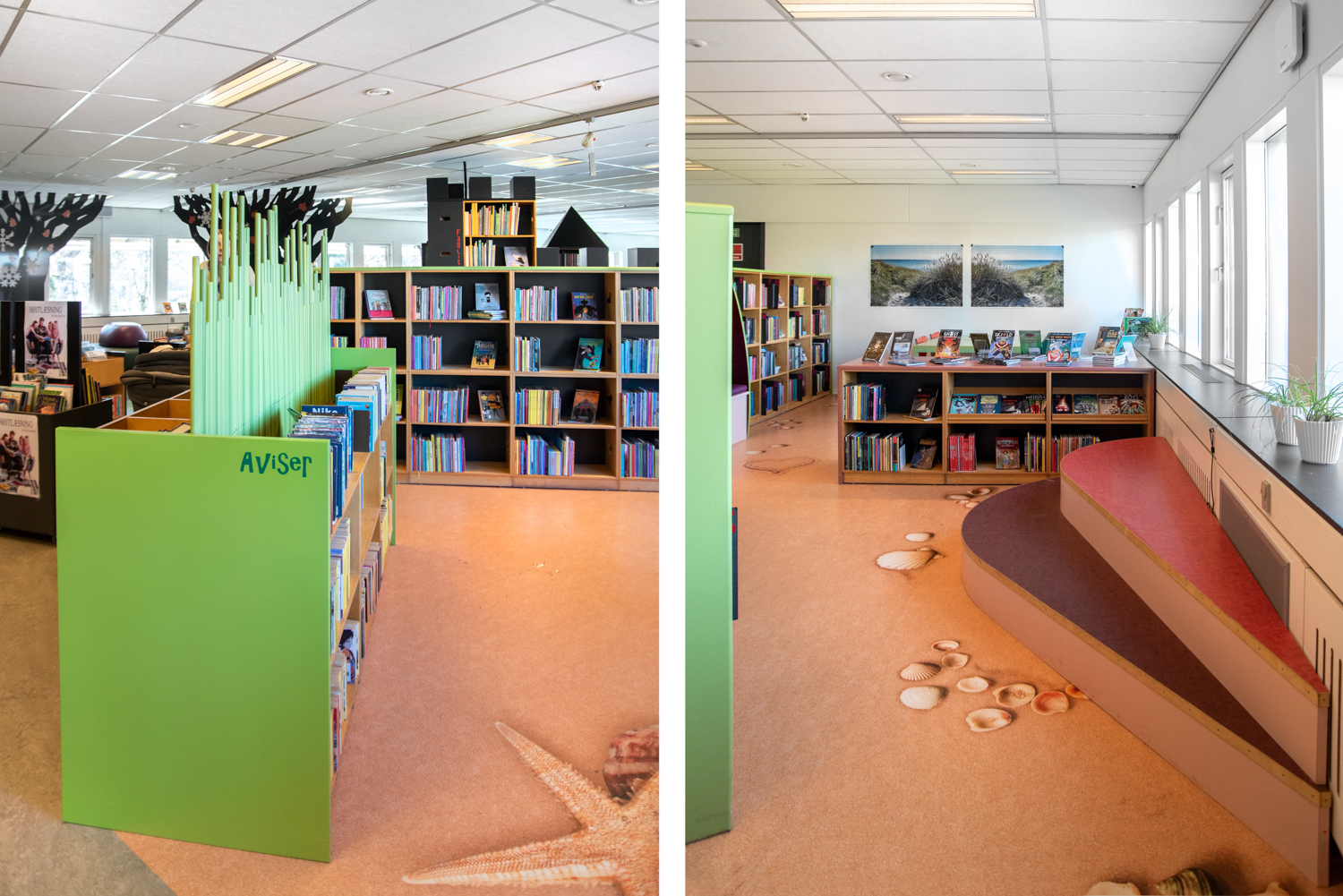 Pia Gunilla Park, communicatrice culturelle à la bibliothèque Guldborgsund, déclare : « Nous avons été très impliqués dans le processus. Nous étions super excités par la présentation que nous avons reçue d’Unni, architecte chez Lammhults Biblioteksdesign, qui a réussi à traduire parfaitement et rapidement nos attentes. Elle a proposé des mobiliers et revêtement de sol spéciaux pour raconter l’histoire basée sur nos idées et envies. Les plus petits sont particulièrement attirés par la mer et les poissons dessinés sur le sol. Les 5 à 11 ans profitent grandement de la nouvelle salle d’activité. Les ados, quant à eux, se regroupent surtout au sein du château et de l’espace jeu. Les possibilités sont aujourd’hui infinies », ajoute Pia.