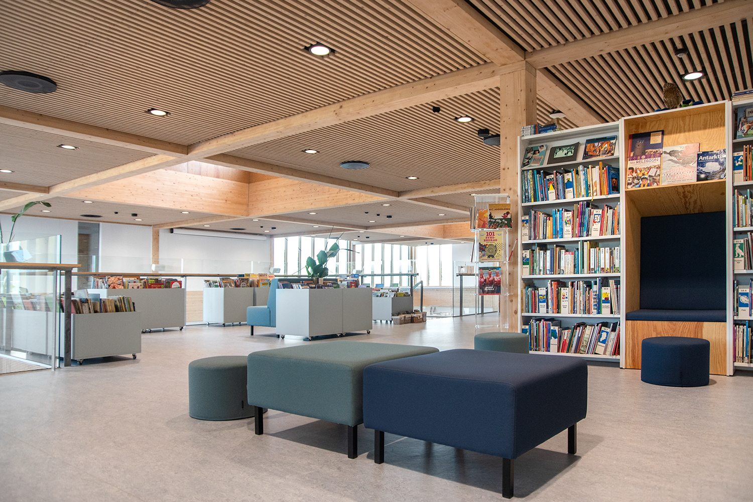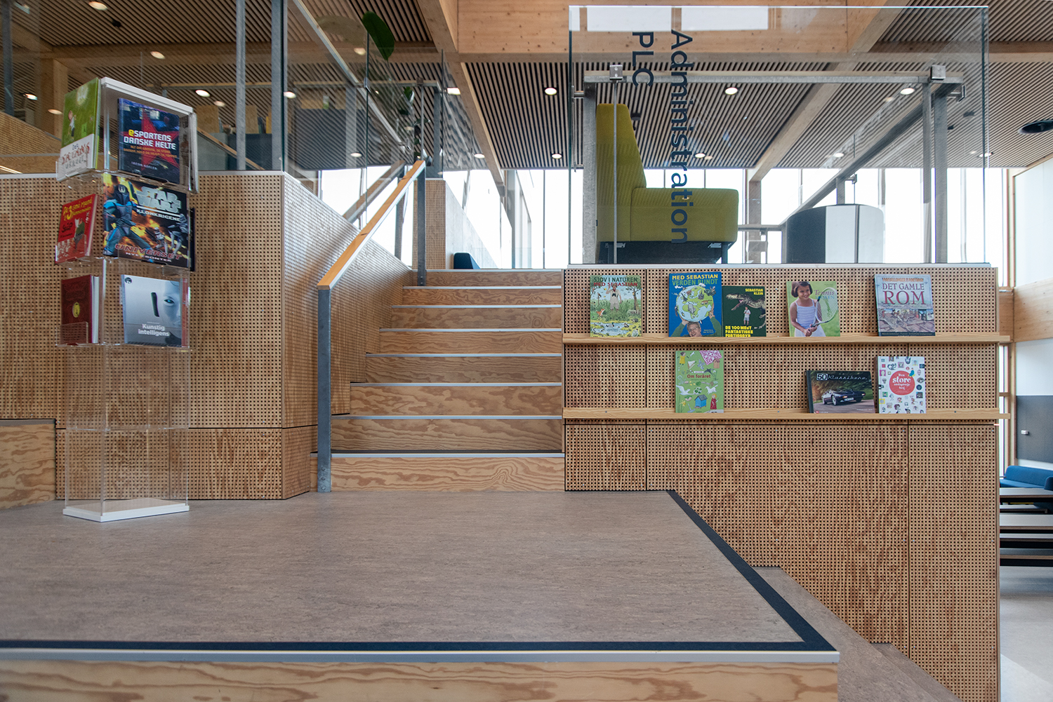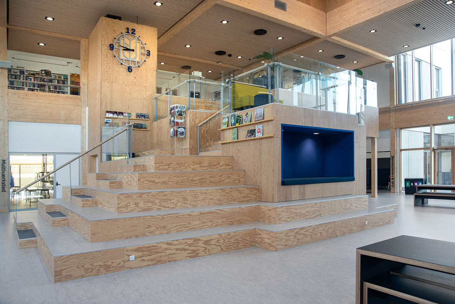 Lammhults Biblioteksdesign A/S a conçu et livré le centre d'apprentissage (bibliothèque) de l'école, qui est adapté à un avenir où les besoins des étudiants en matière de socialisation, d'espace libre et d'immersion sont la priorité absolue.