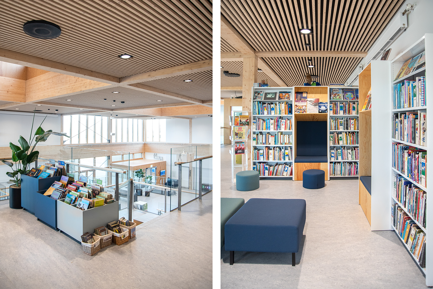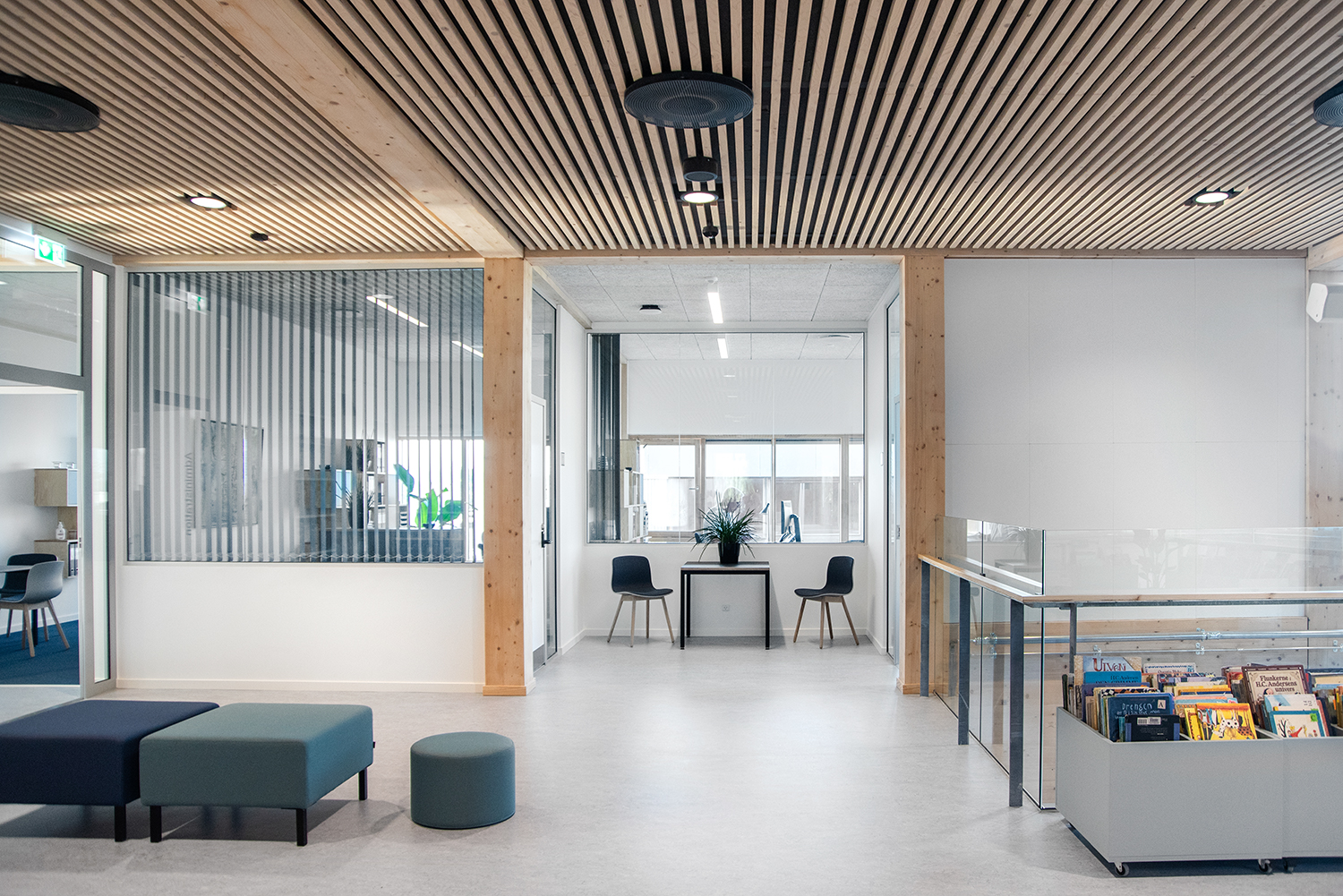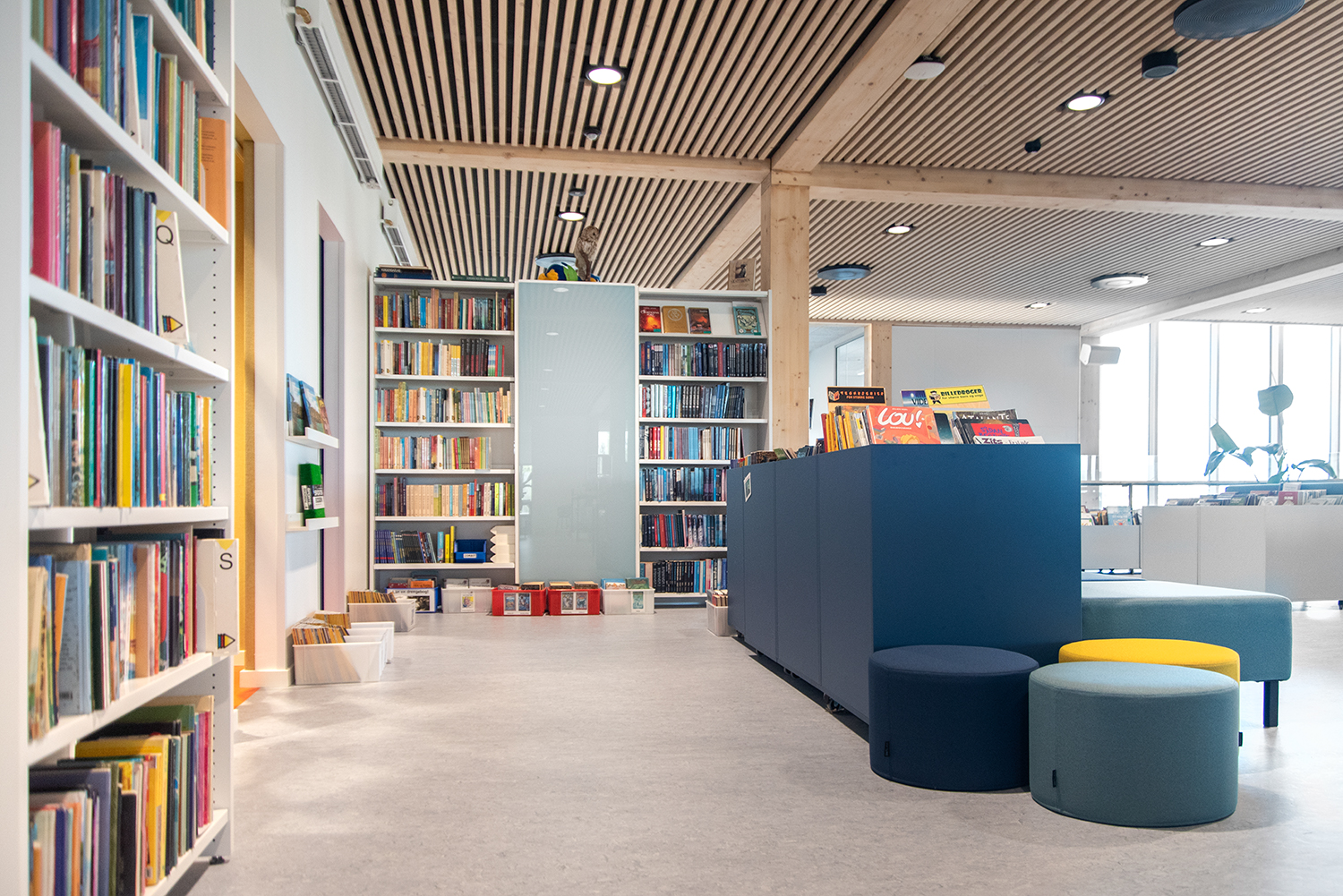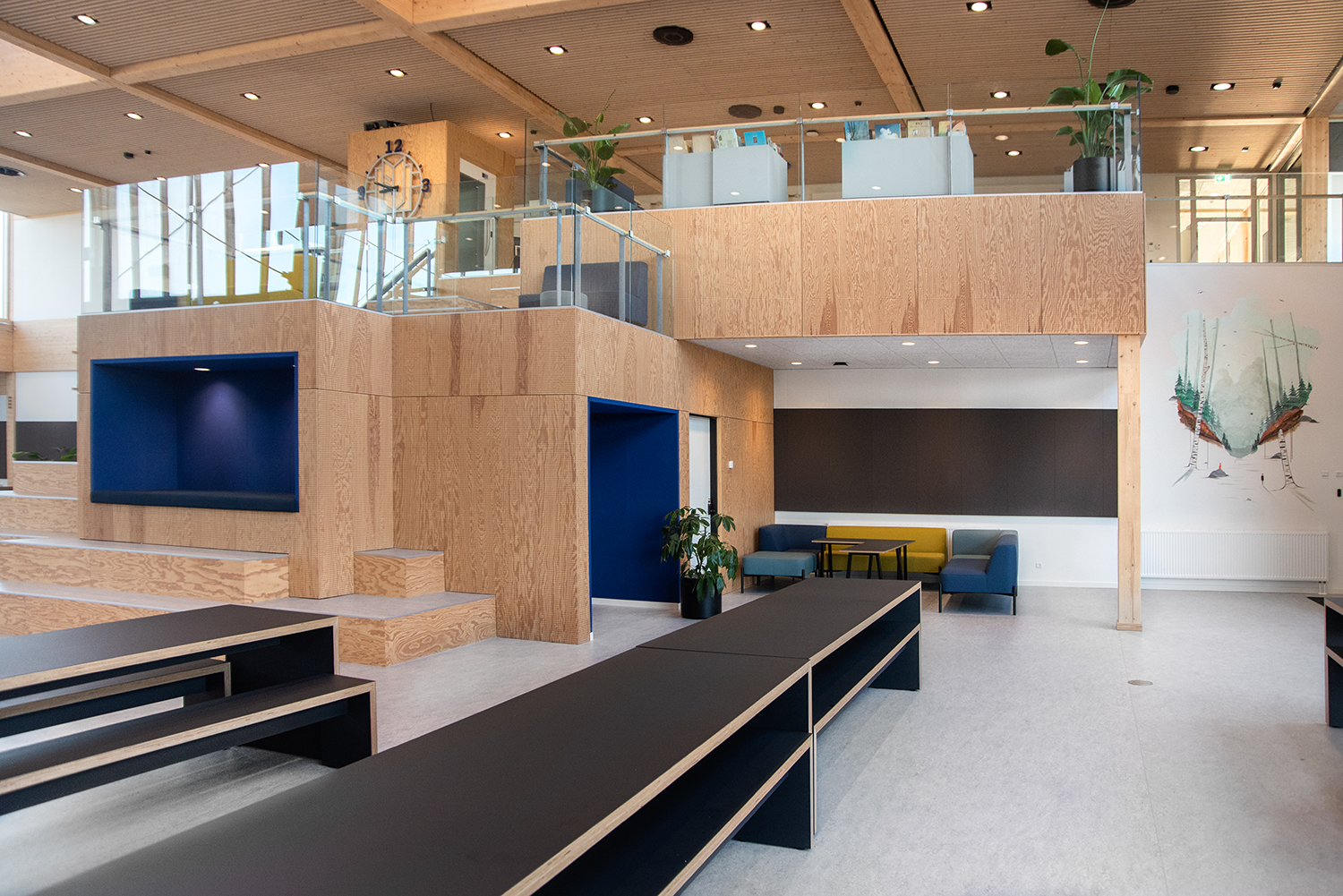 Lammhults Biblioteksdesign A/S a conçu et livré le centre d'apprentissage (bibliothèque) de l'école, qui est adapté à un avenir où les besoins des étudiants en matière de socialisation, d'espace libre et d'immersion sont la priorité absolue.