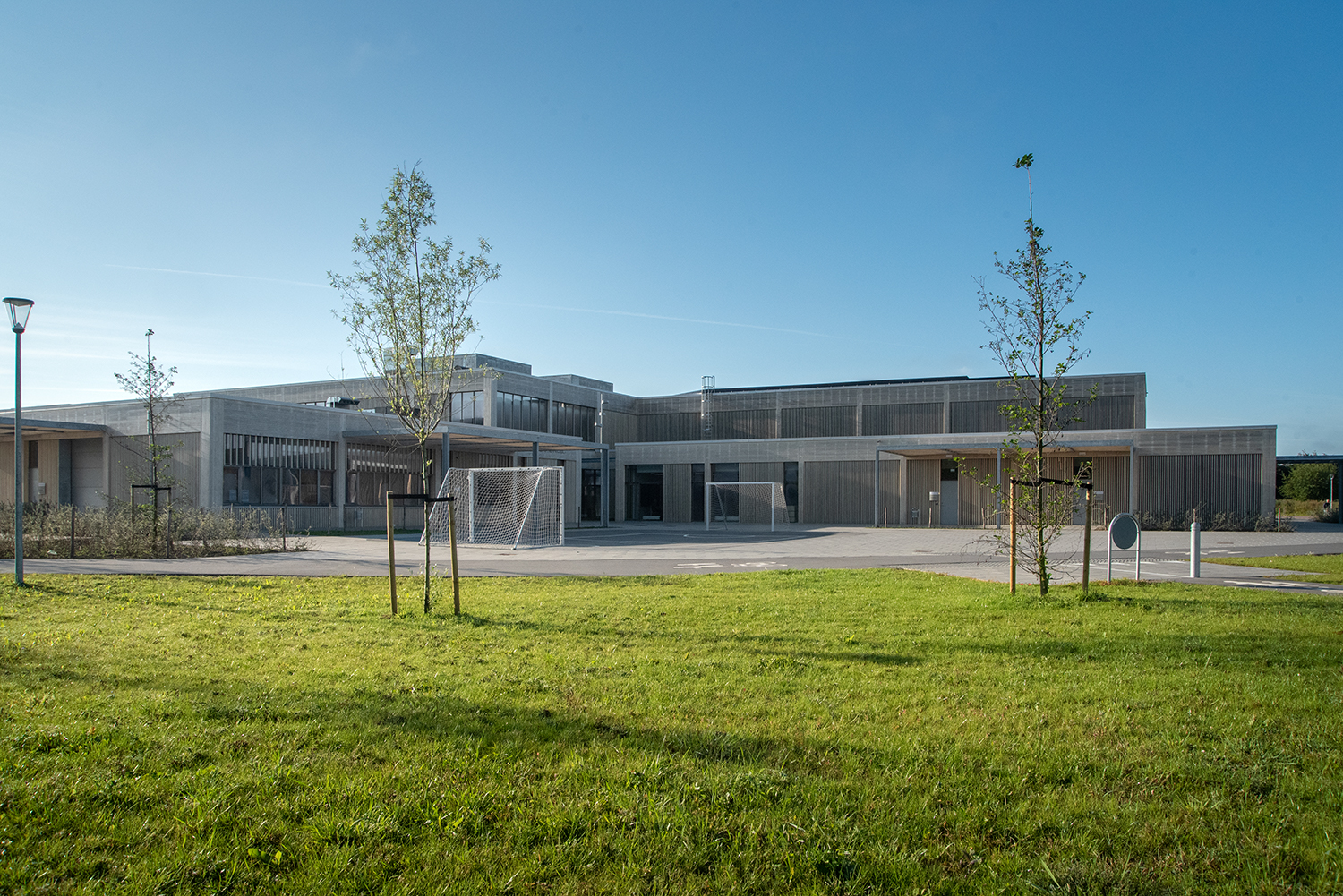 L'école d’Erlev est une école innovante avec une architecture durable fabriquée en bois. L'école a été développée comme un univers d'apprentissage avec des environnements d'éducation flexibles, fonctionnels et ouverts, qui sont équipés pour utiliser les méthodes d'enseignement du futur. L'architecture du bâtiment, la décoration intérieure et le choix des matériaux permettent le travail pédagogique et l'apprentissage par l'activité.