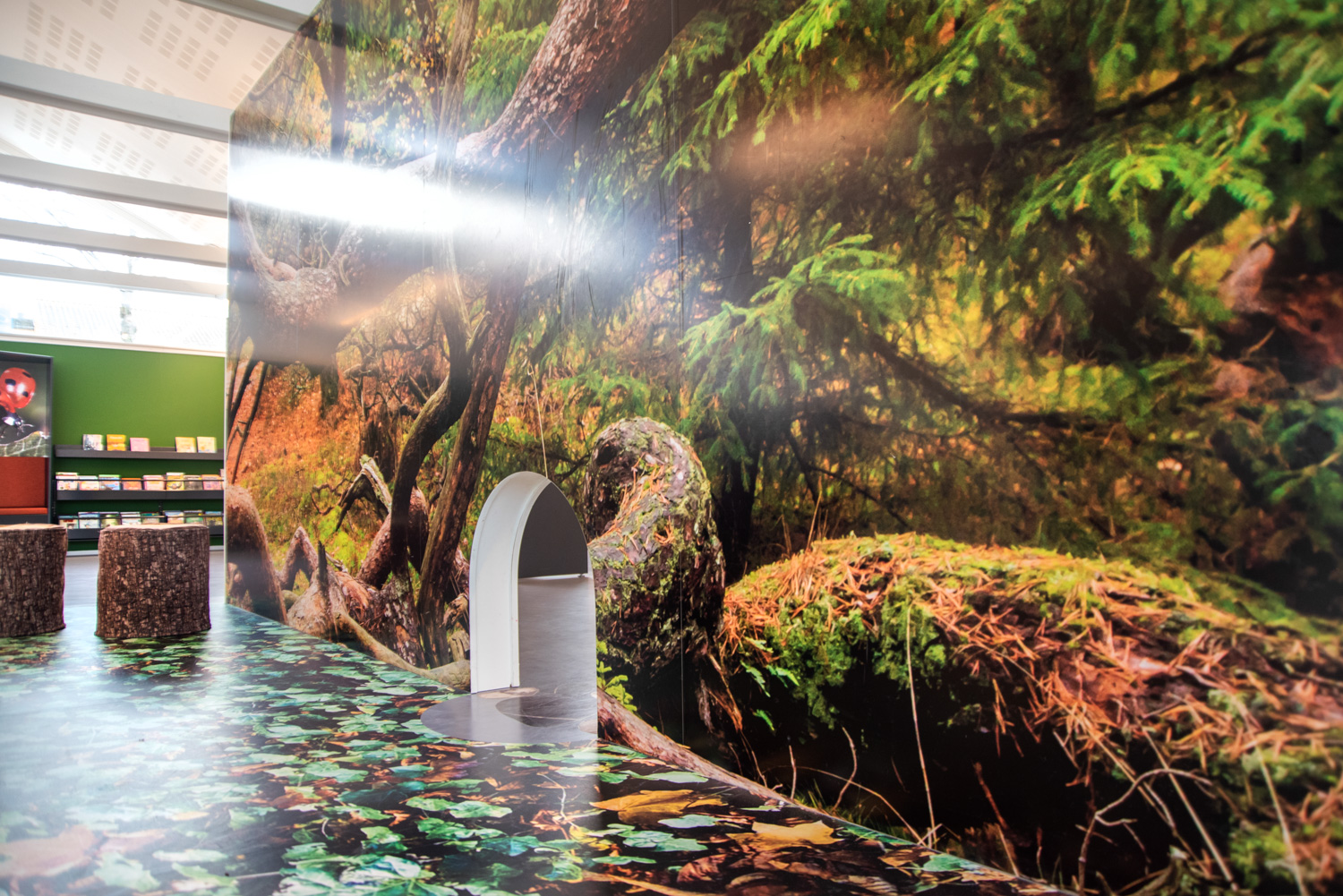 Au sein de la bibliothèque de Halsnæs, des illustrations étonnantes d'insectes et de scènes naturelles permettent aux enfants de profiter de la magie des lieux et d'en étudier les détails de très près. Vous trouverez aussi dans les décors graphiques des chansons enfantines bien connues et "les 120 mots" que les fourmis transportent avec elles. Ainsi, les éléments de la nature (conception biophilique) sont combinés au développement du langage, à l'intérêt pour la lecture, à l'immersion et à la perception.