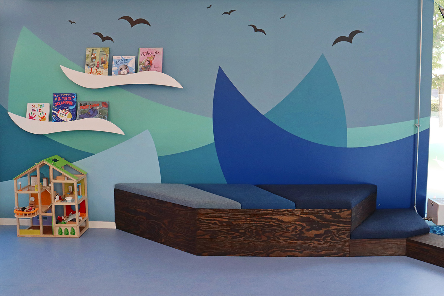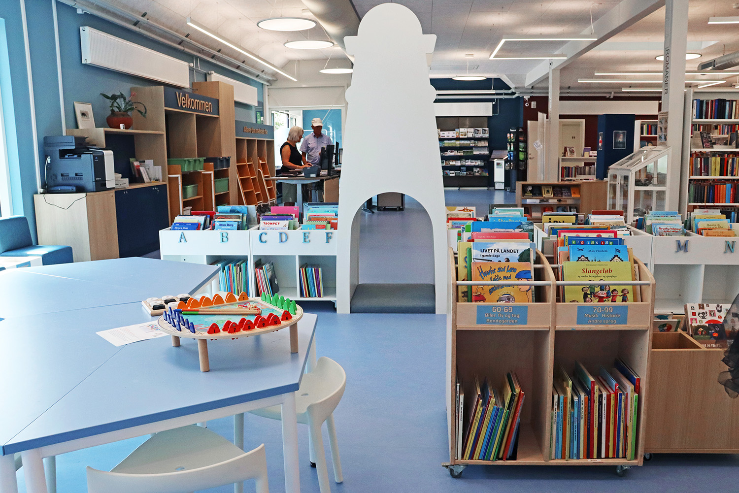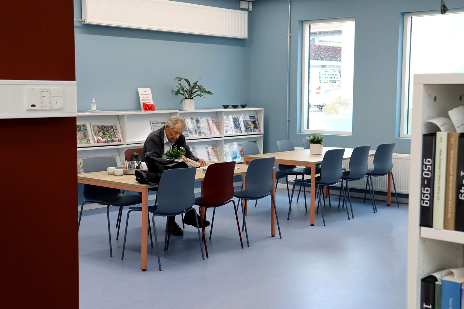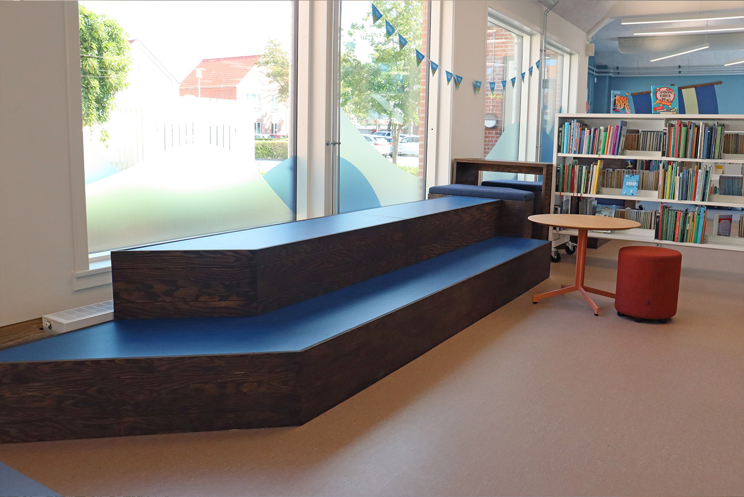 Son design sur-mesure puise son inspiration dans le patrimoine maritime de Kerteminde, avec le navire de Ladby comme point central du thème de la bibliothèque. Une palette apaisante de bleu et de blanc crée une atmosphère accueillante pour les visiteurs de tous âges. La bibliothèque est intelligemment divisée en plusieurs zones distinctes, proposant aussi bien des espaces de lecture silencieux que des espaces créatifs et dynamiques, ainsi qu’une toute nouvelle section dédiée aux enfants. Cette disposition soigneusement réfléchie garantit à chacun de trouver un lieu propice à l’apprentissage et à l’inspiration.