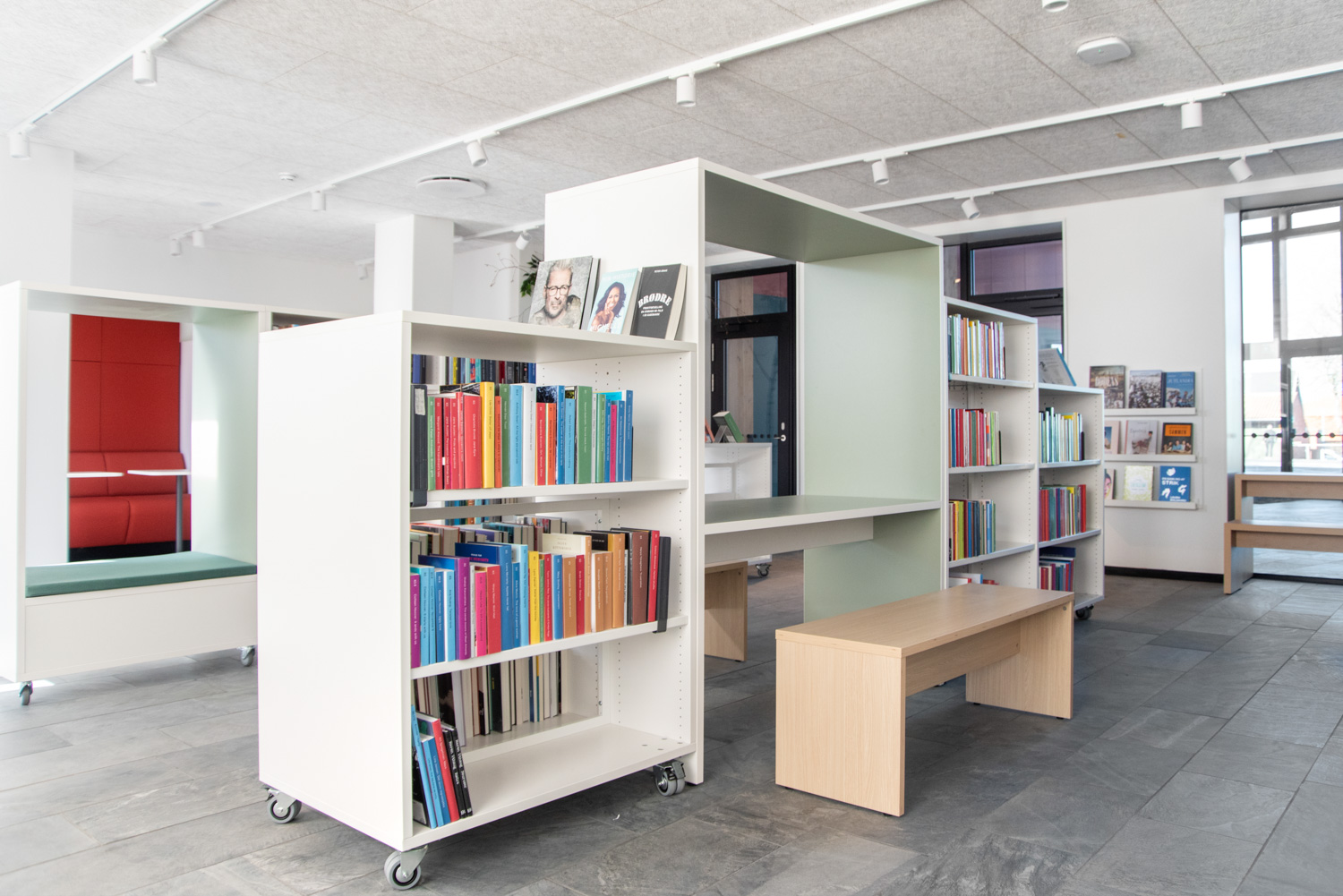 L'aménagement de l'espace et la décoration intérieure de la nouvelle bibliothèque ont été un processus très intéressant et stimulant, mené en collaboration avec le personnel de l'école de Lundtofte et celui de la bibliothèque publique de Lyngby.