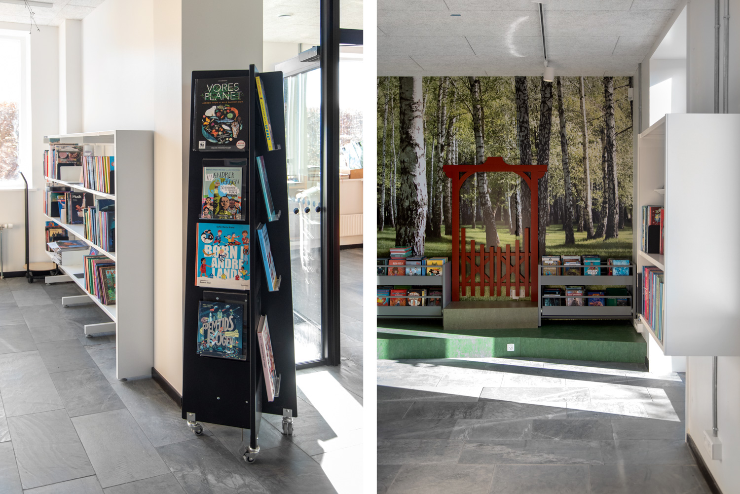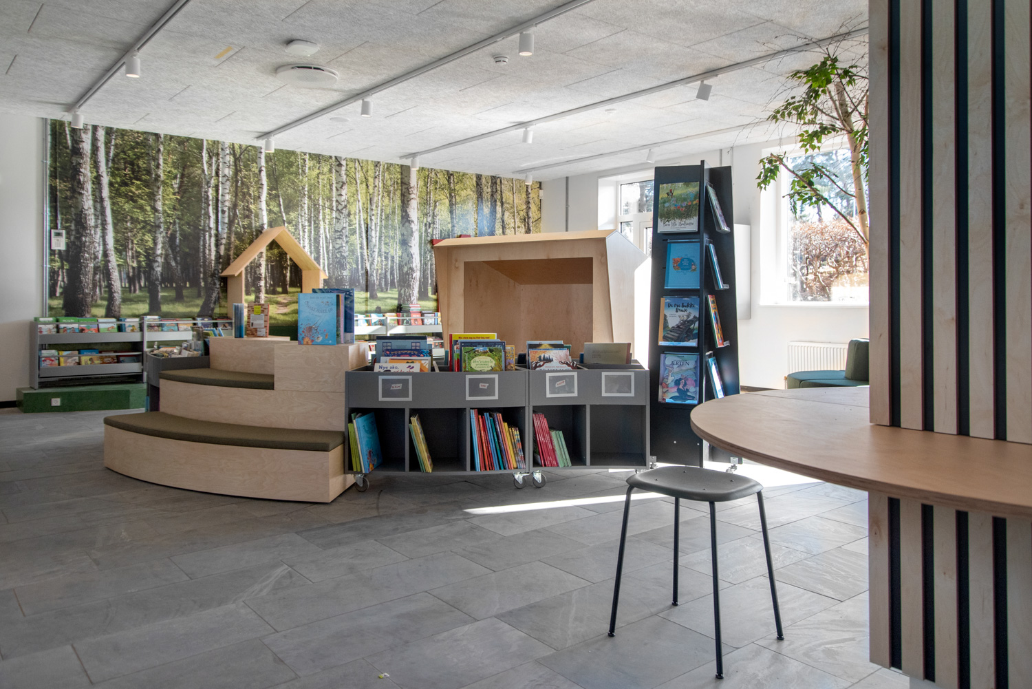 L'objectif de la bibliothèque de l'école de Lundtofte et de la bibliothèque publique de Lyngby est de recréer l'environnement local dont la bibliothèque fait partie. La Nature y joue un rôle prépondérant et est très importante surtout dans l'espace jeunesse de la bibliothèque, qui s'inspire du parc à cervidés local et de la vie en plein air. Par exemple, une "niche" de lecture personnalisée et des mobiliers bien choisis rapprochent les enfants de la nature, de même que des illustrations murales inspirées de paysages naturels, une moquette qui ressemble à de l'herbe, des plantes vertes, et d'autres matériaux, textures et accessoires qui évoquent la nature.