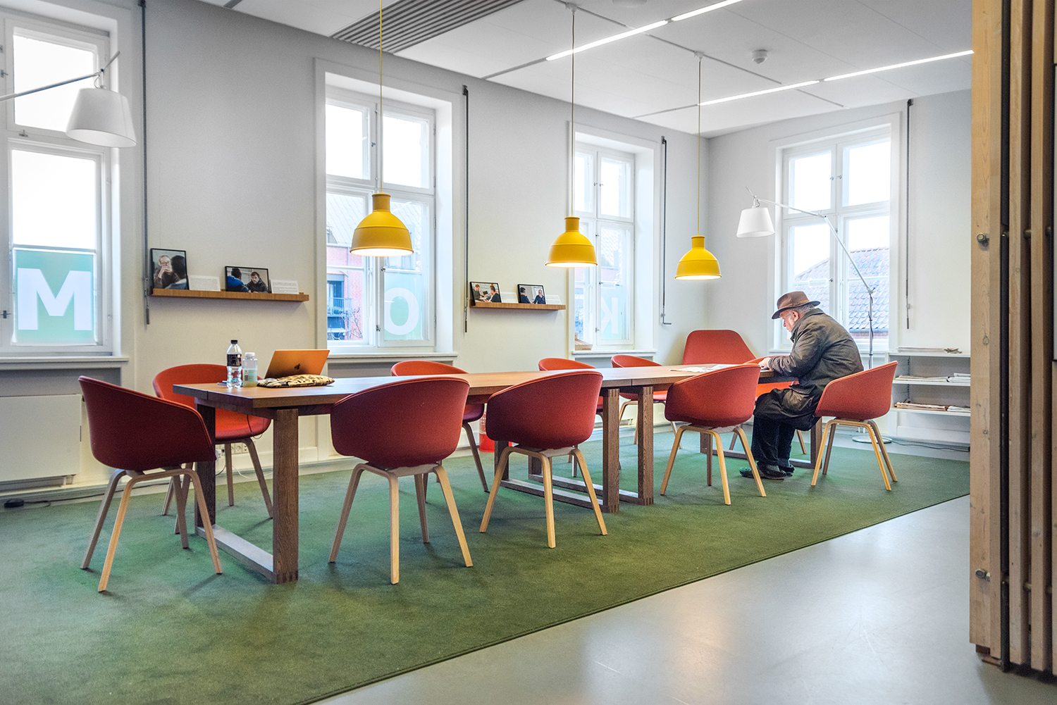 La nouvelle bibliothèque publique de Taastrup, près de Copenhague, est la symbiose de 3 anciennes bibliothèques devenues une seule (Blakilde, Ronnevang et Taastrup). Le vieux bâtiment a été totalement repensé en un lieu de culture faisant place à toutes les fonctionnalités d’une bibliothèque moderne.