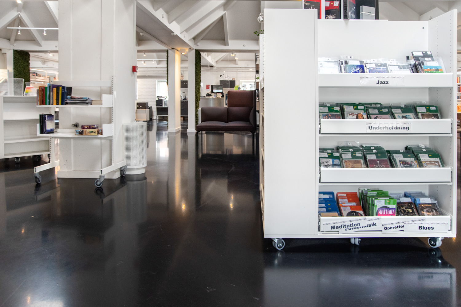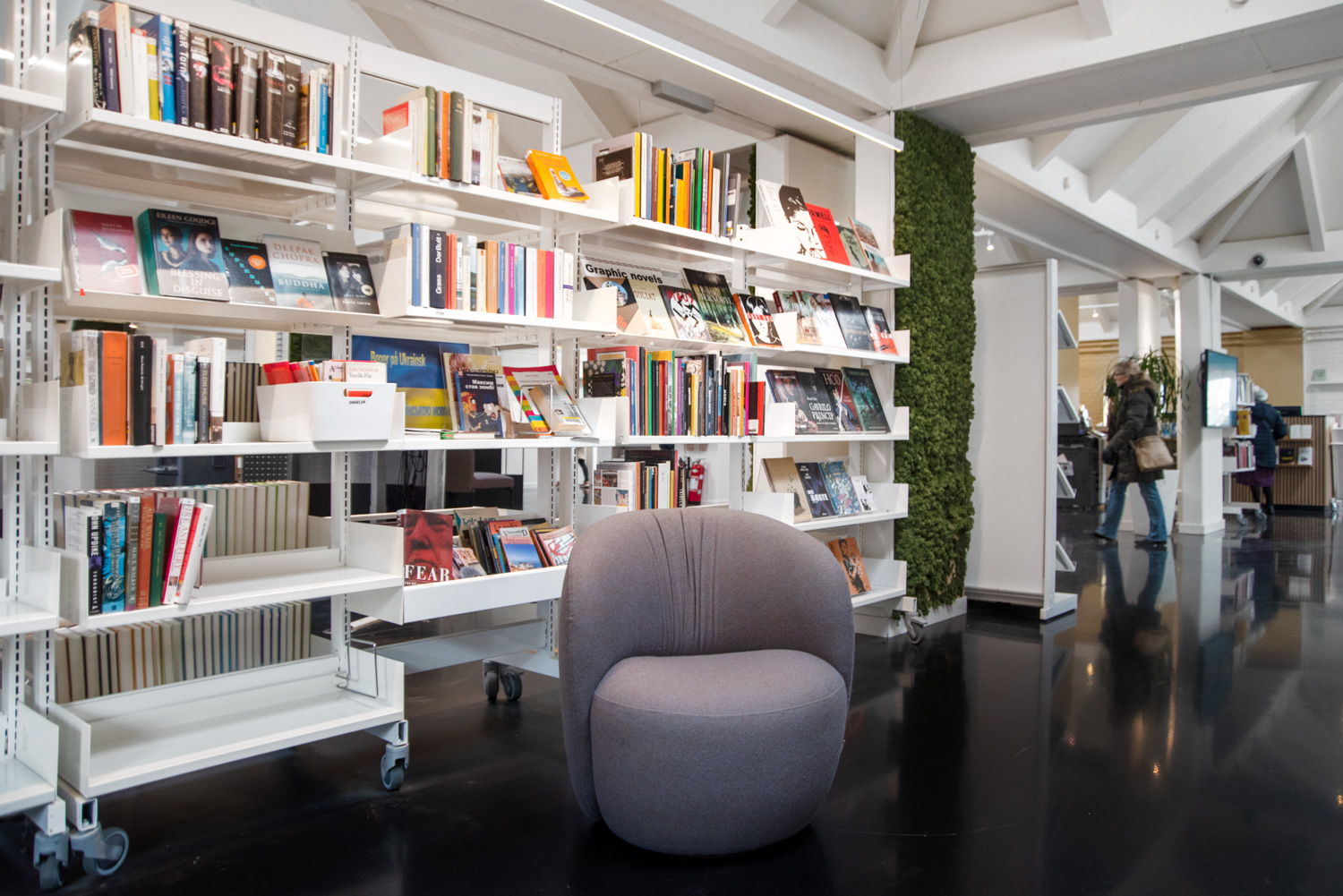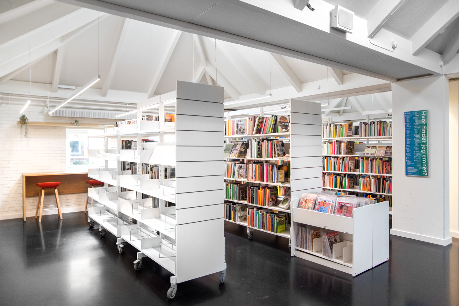 La bibliothèque de Vallensbæk a été rénovée en 2022, ce qui a permis une meilleure utilisation de l'espace et une bibliothèque plus conviviale et spacieuse.