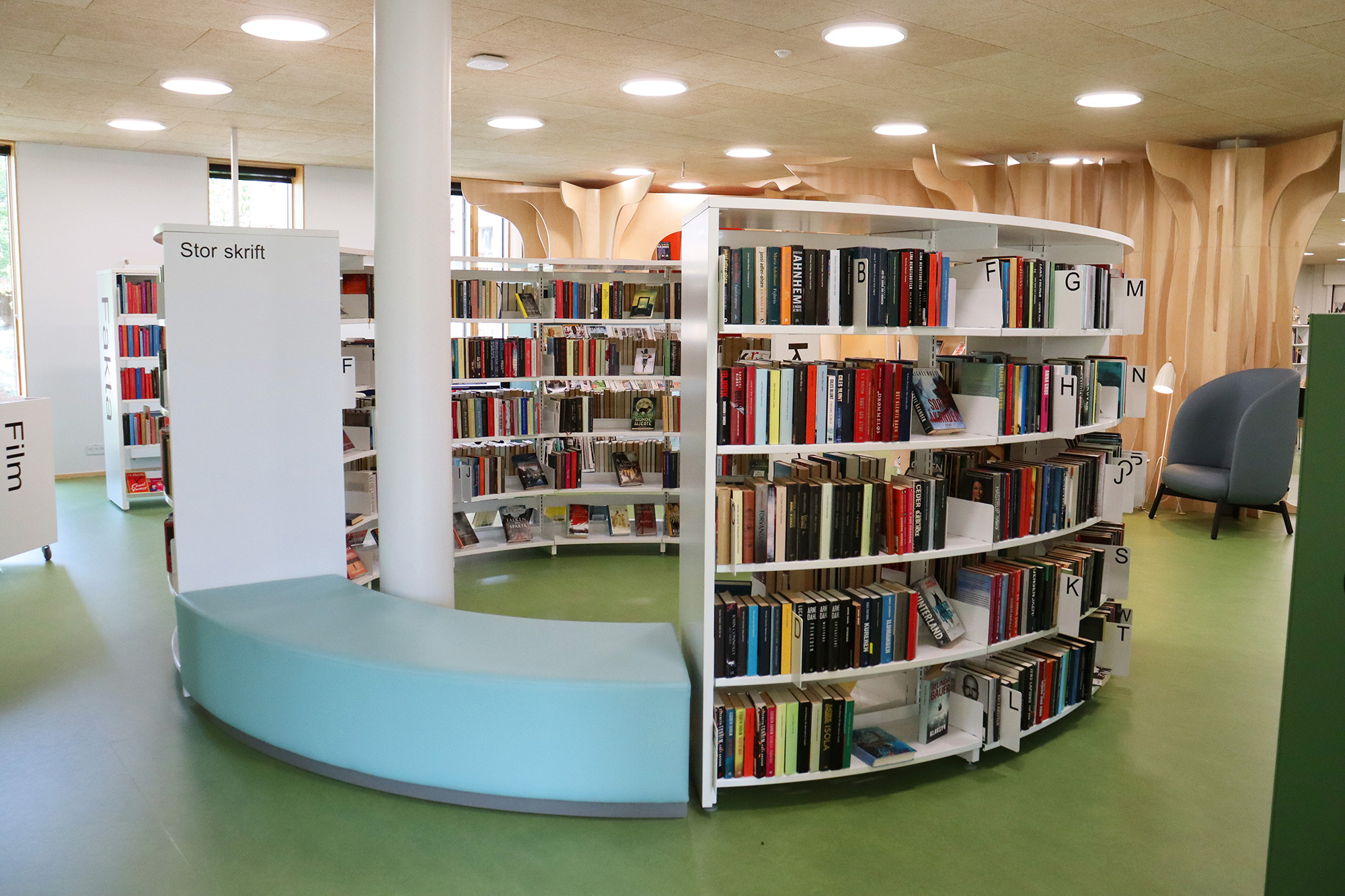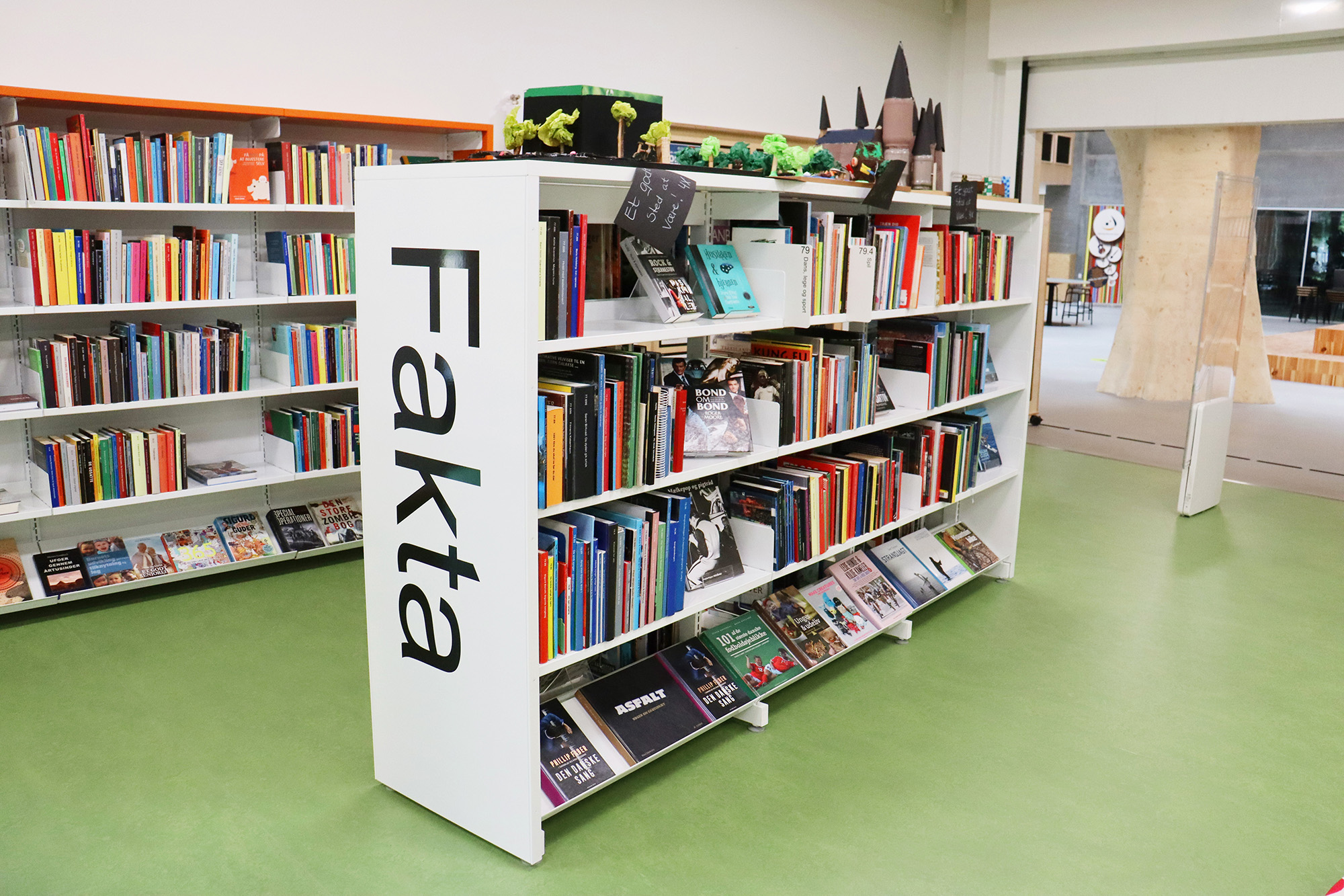 La bibliothèque de Vrå fait partie de la nouvelle maison des jeunes et de la culture, qui a ouvert ses portes au public en novembre 2021.
