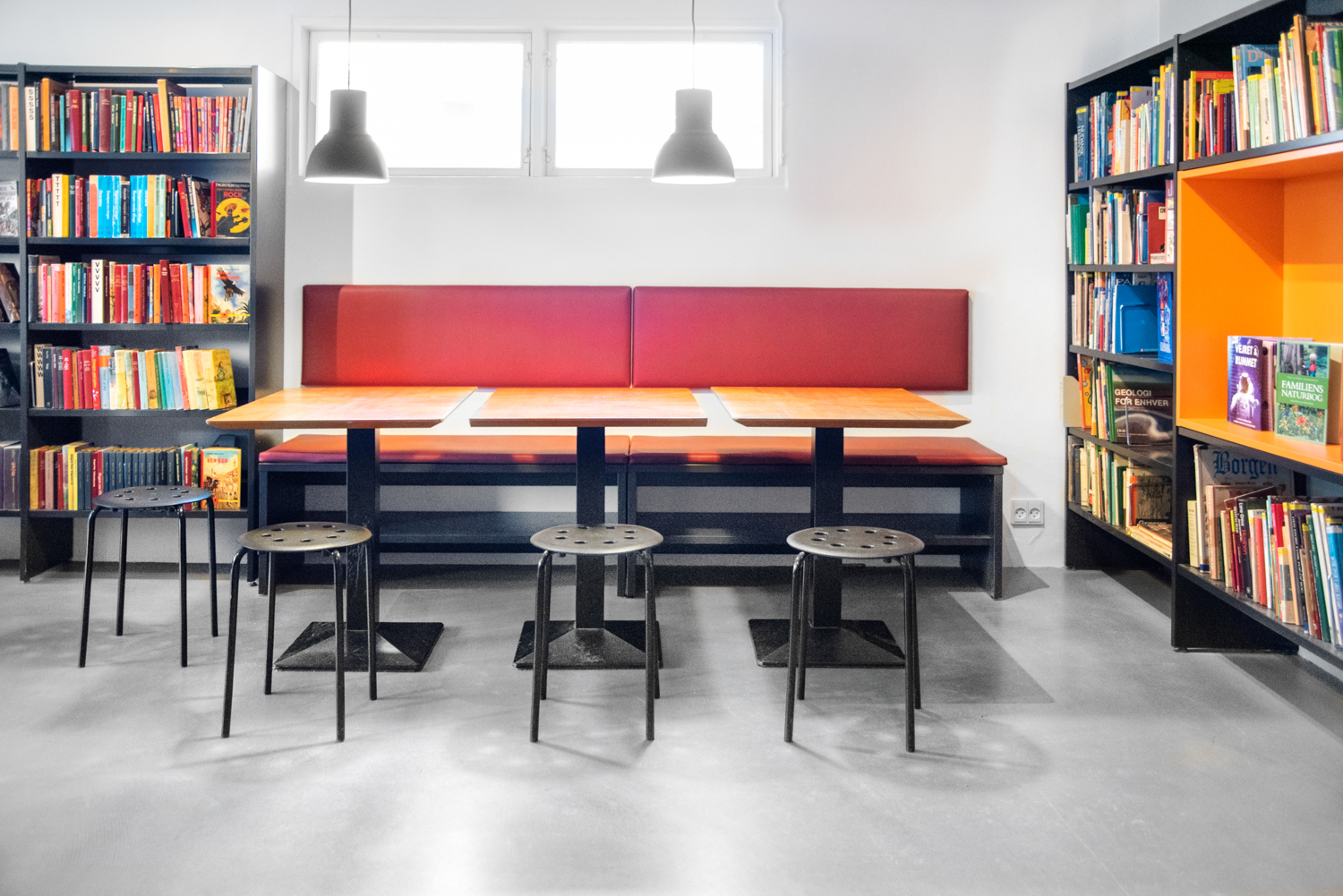 Cette petite bibliothèque de 60 m2 est située au sous-sol de l’école Sankt Knud Lavard à Lyngby. Près de 200 élèves fréquentent l’école, et la bibliothèque joue un rôle central dans la création d’un lieu de rassemblement social et peut être utilisée pour de nombreuses activités.