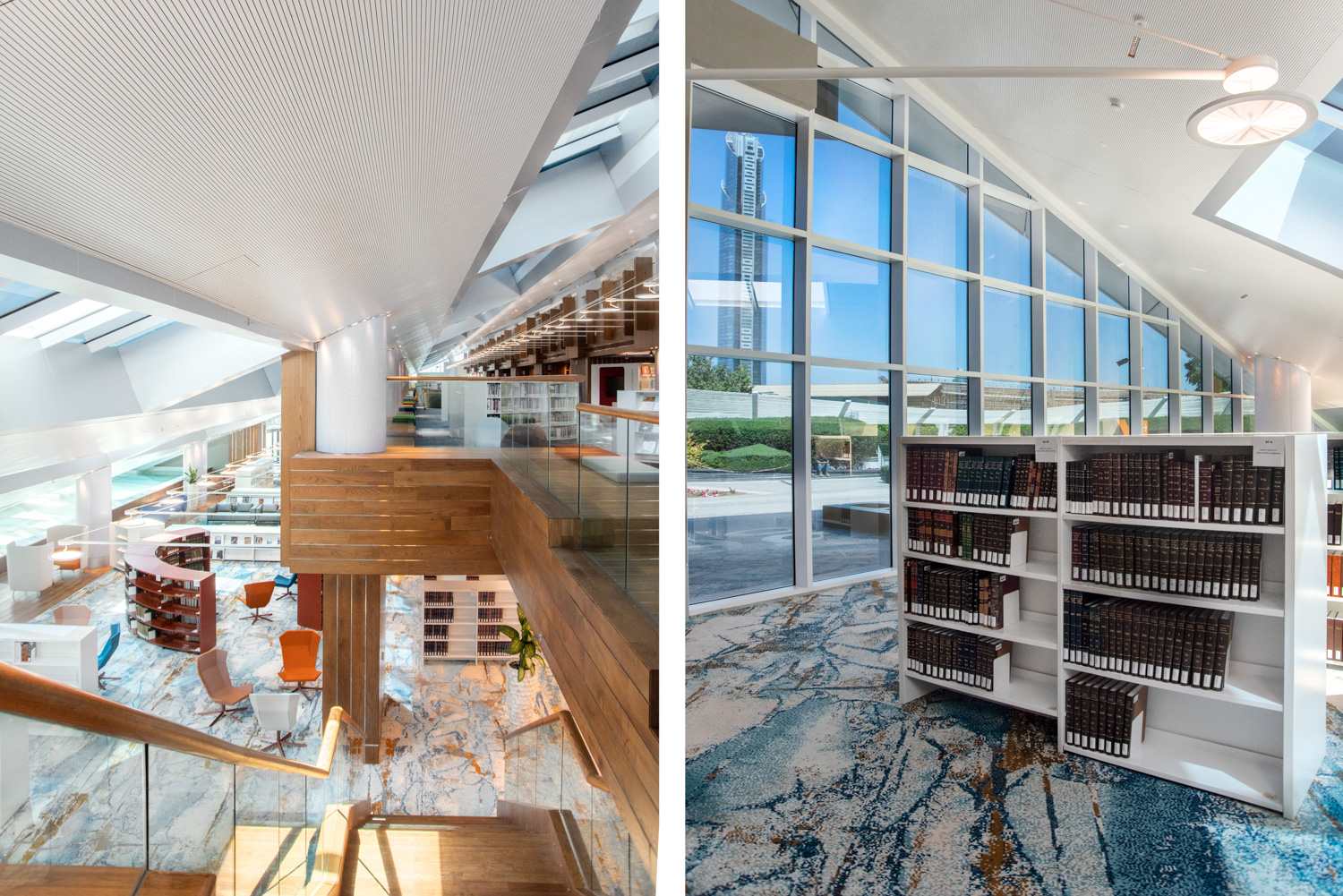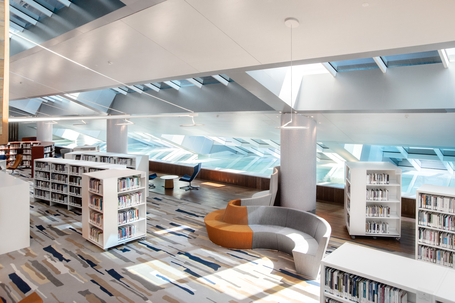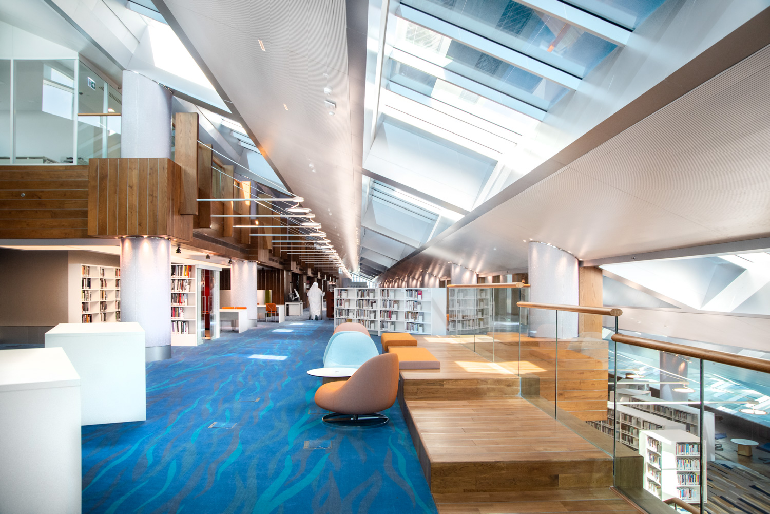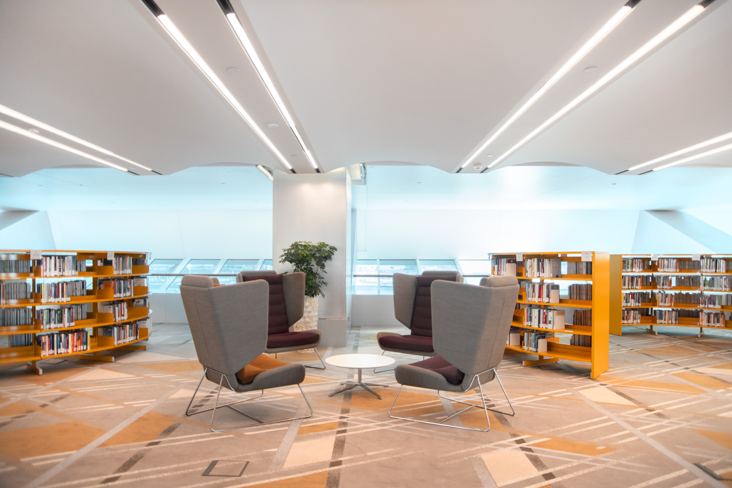 Le design de cette nouvelle réalisation permet l’intégration des différentes fonctionnalités que l’on retrouve dans les bibliothèques modernes. Elle comporte différents espaces dédiés au public destinataire de cet équipement. Elle comporte également en son sein un espace VIP, une espace coloré pour les enfants, un centre de recherches mais également un espace de relaxation.