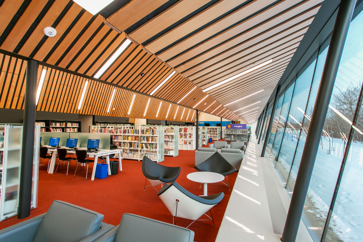 L’annexe de la bibliothèque municipale d’Edmonton à Capilano a ouvert ses portes dans un tout nouveau bâtiment et un tout nouvel emplacement, qui offre une vue pleine de sérénité et beaucoup de lumière naturelle. L’emplacement est à la fois accessible et en adéquation avec la nature. La bibliothèque dispose d’un accès au rez-de-chaussée qui aide à résoudre les problèmes d’accessibilité rencontrés dans l’ancien édifice au deuxième étage du centre commercial de Capilano.