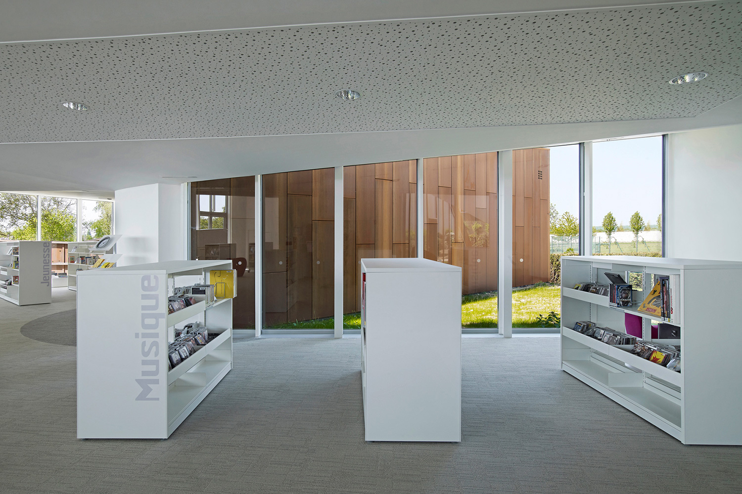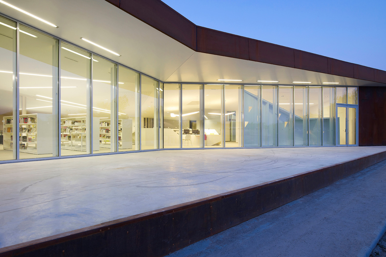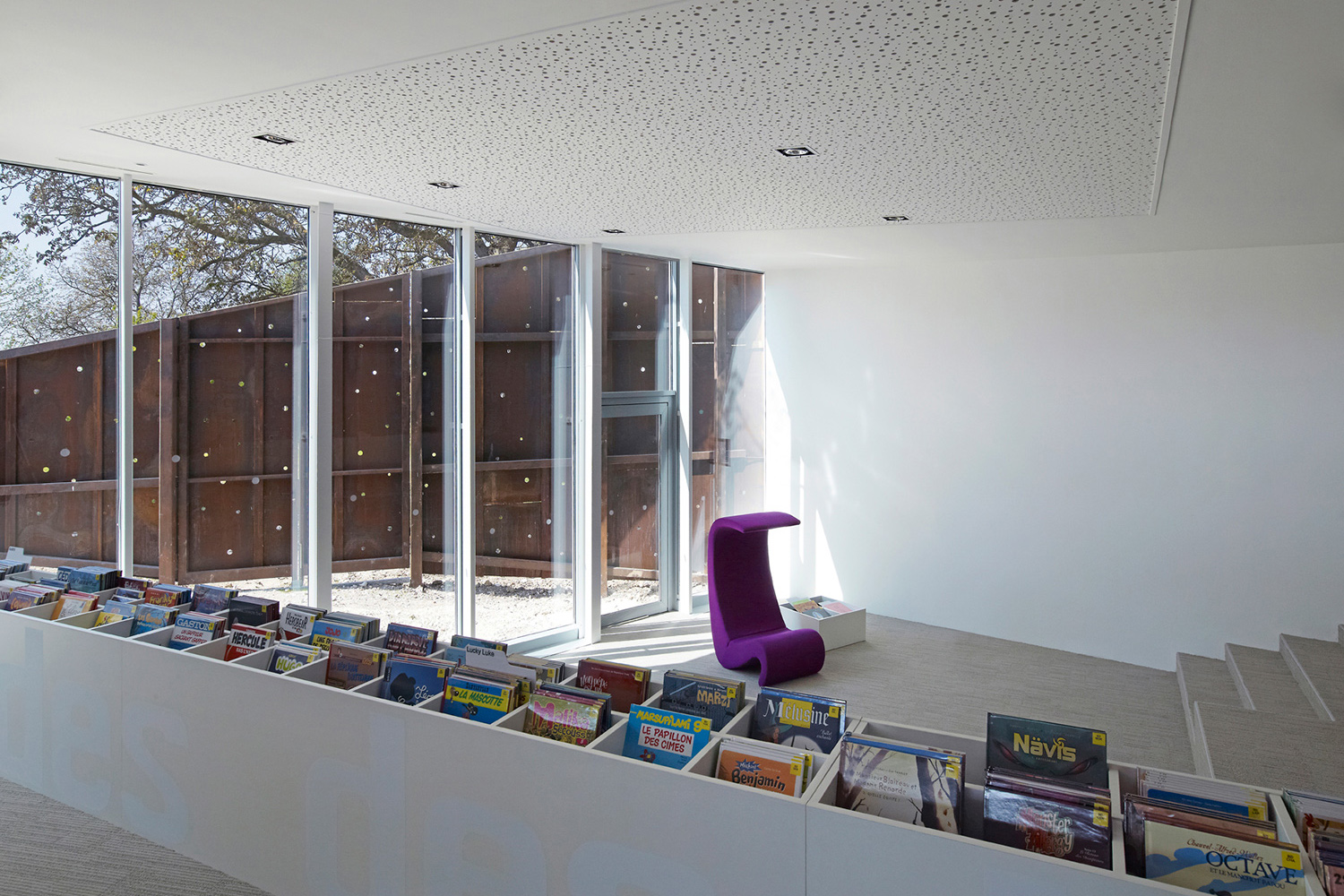 L’enceinte de l’abbaye de Corbie est délimitée par un long mur de pierre datant du 18e siècle. Nichée aux abords d’un promontoire à l’intérieur de cette enceinte, la nouvelle bibliothèque multimédias surplombe la ville magnifique et l’imposante abbaye de style gothique. Un bâtiment, une sculpture ou un reflet du paysage environnant : la bibliothèque multimédias de la Communauté du Val de Somme se veut tout à la fois.