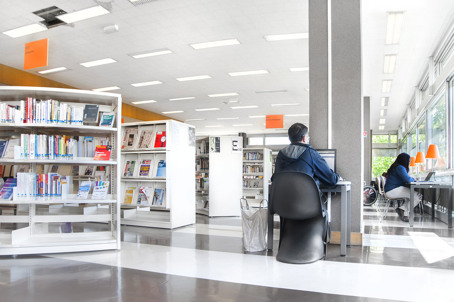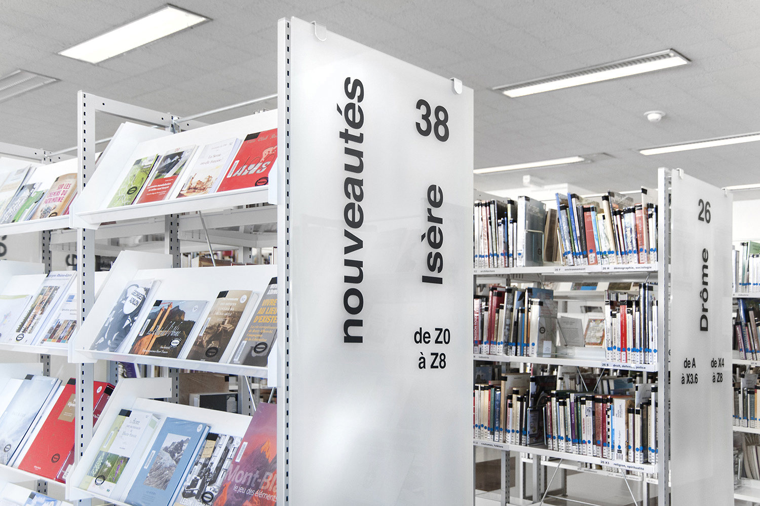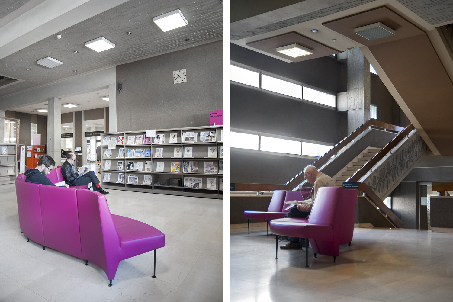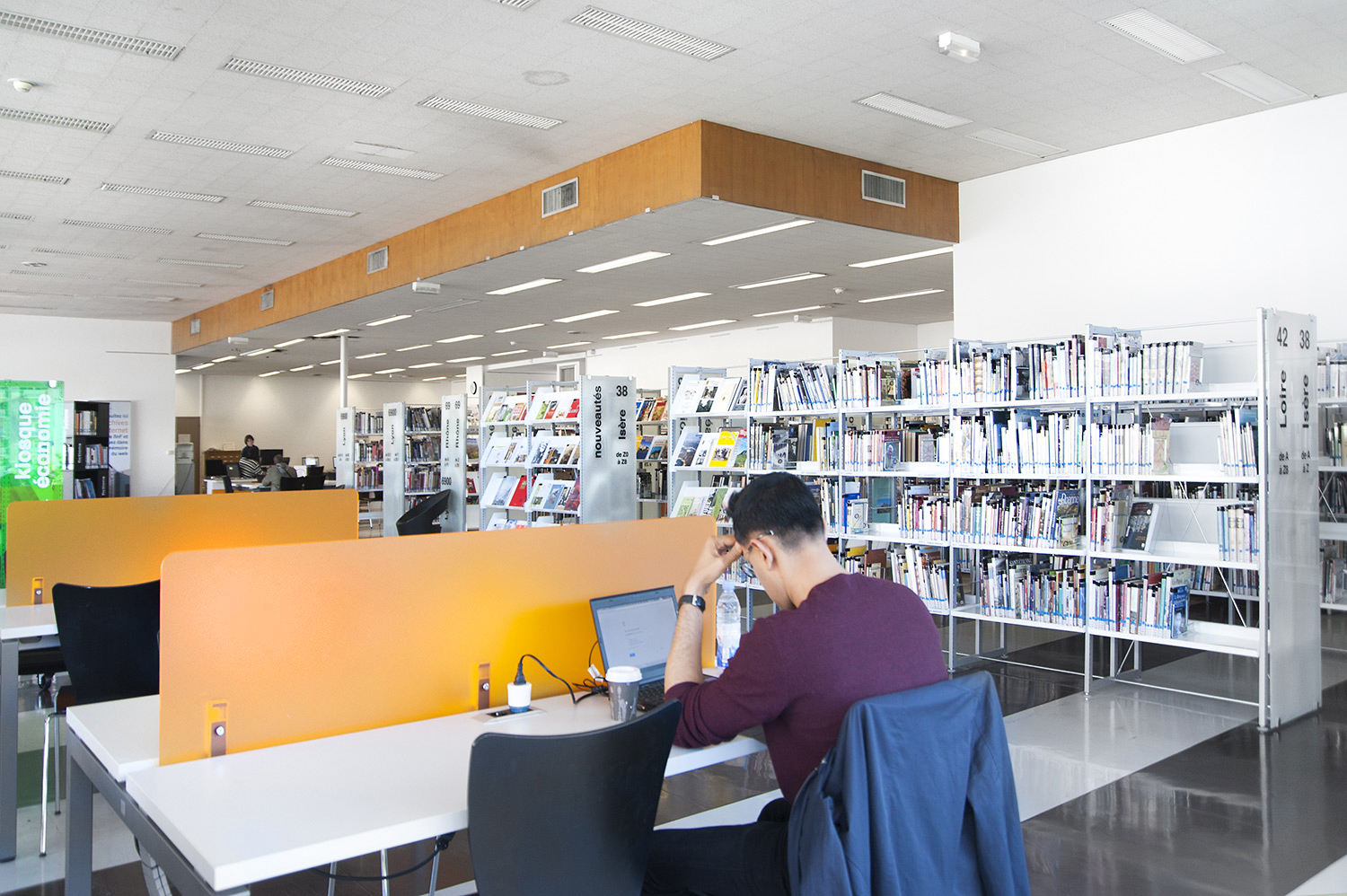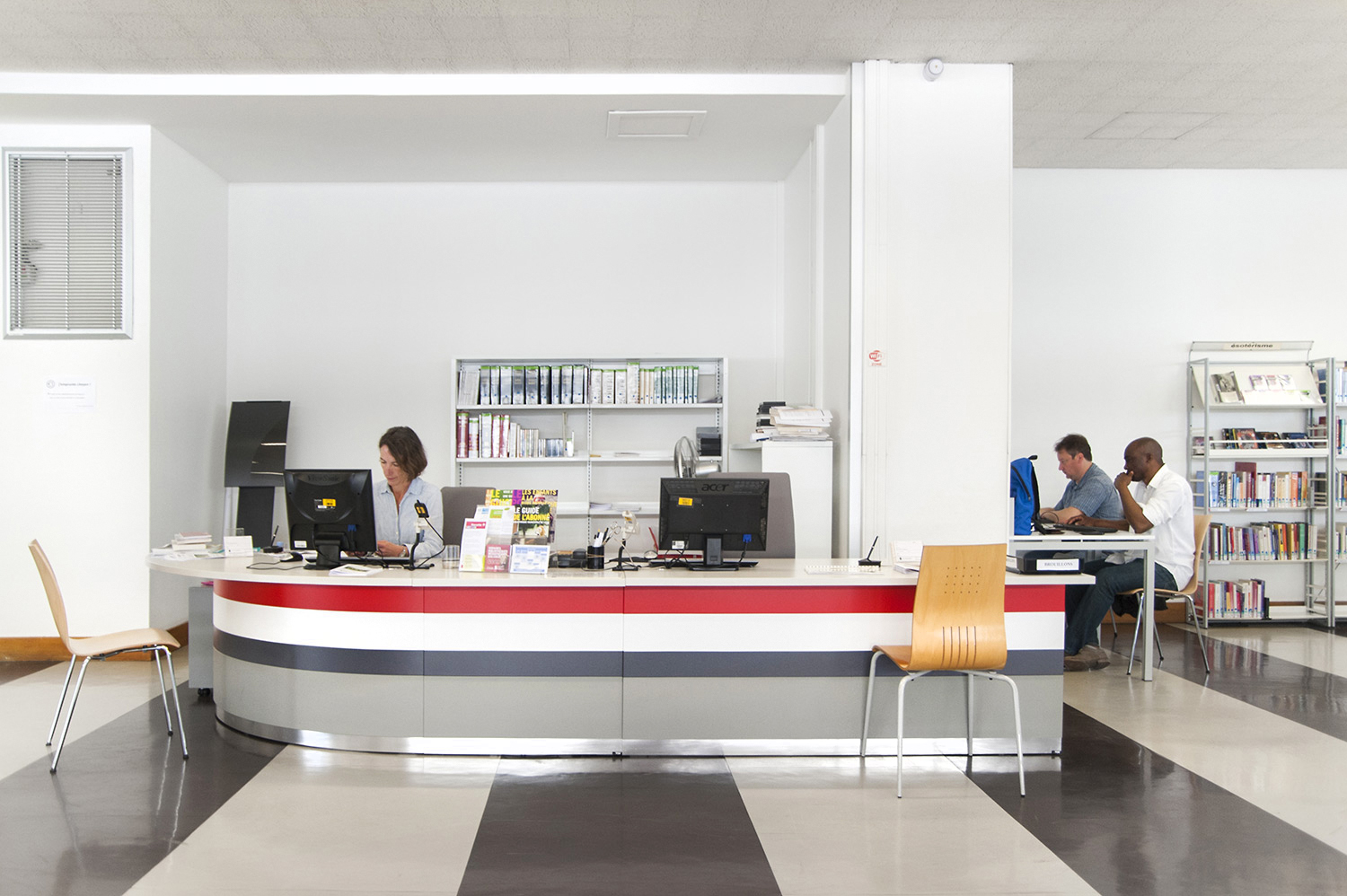 Le mobilier installé inclut notamment la gamme de rayonnages Classic London, droit et courbe, la gamme Opal verre, les banques d’accueil, des postes de travail, du mobilier de présentation et du mobilier de confort. Fonctionnel et esthétique le mobilier joue son rôle dans l’amélioration du confort général, des utilisateurs comme du personnel.