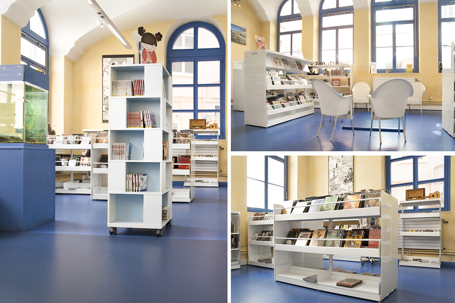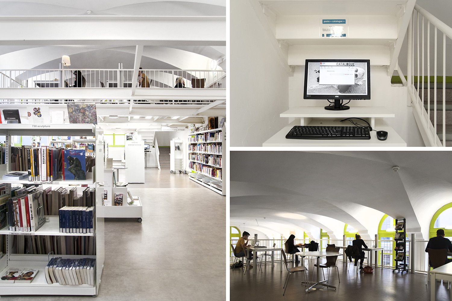 Au regard de son implantation dans un quartier politique de la ville, la direction fait également le pari de collections décloisonnées, de la suppression de la banque de prêt et d’un mobilier plus bas.