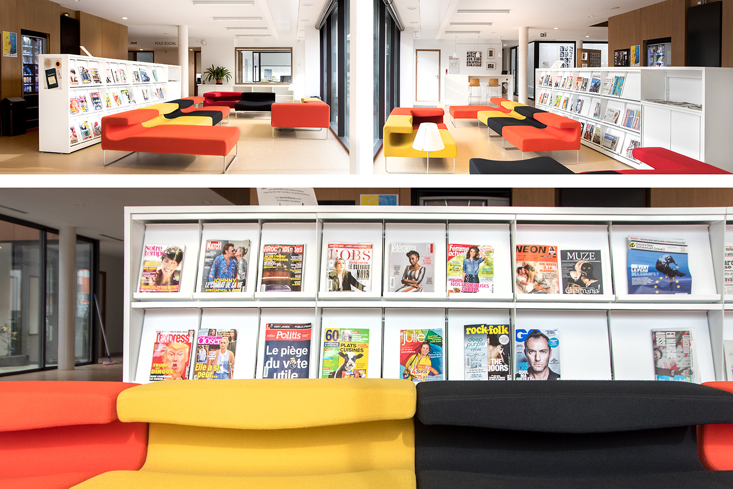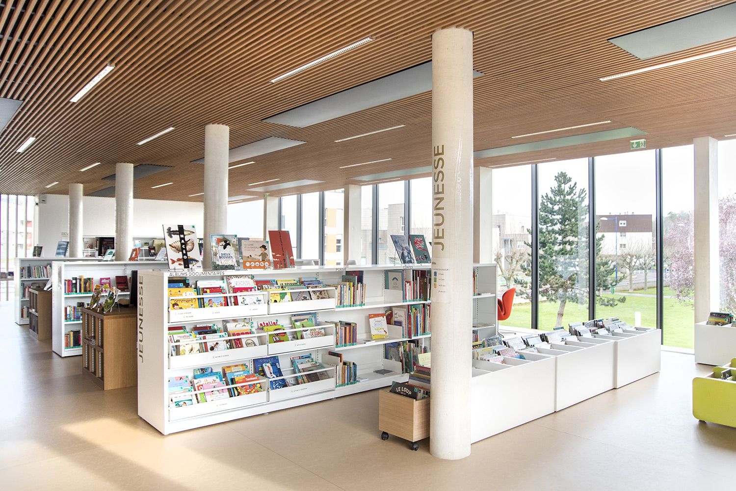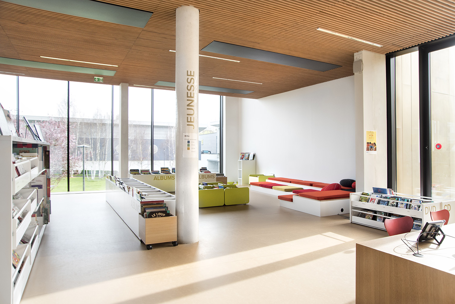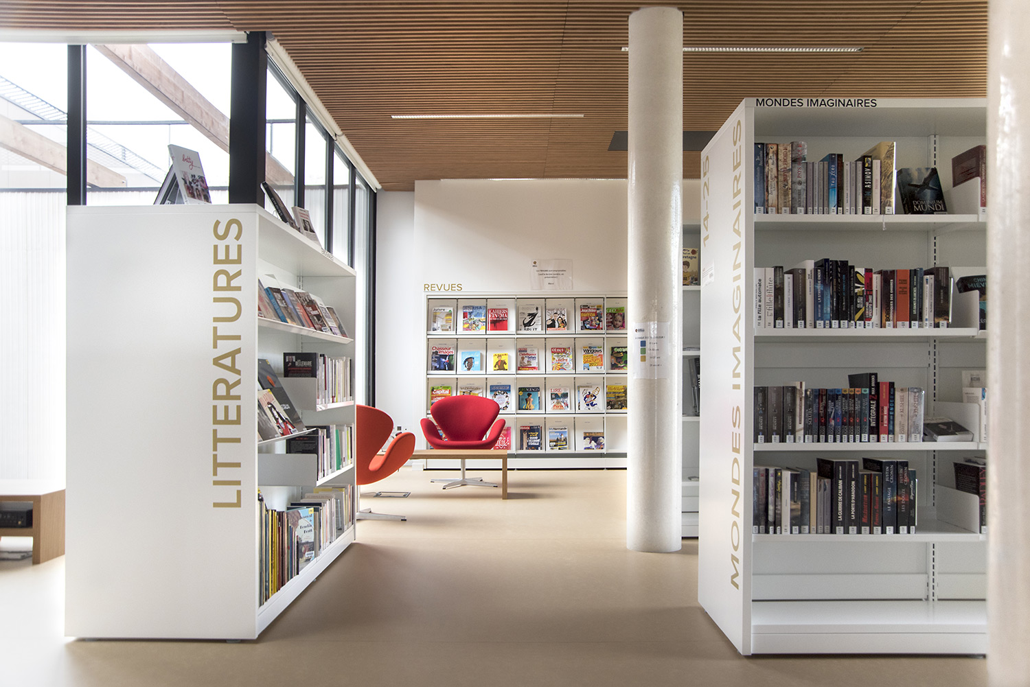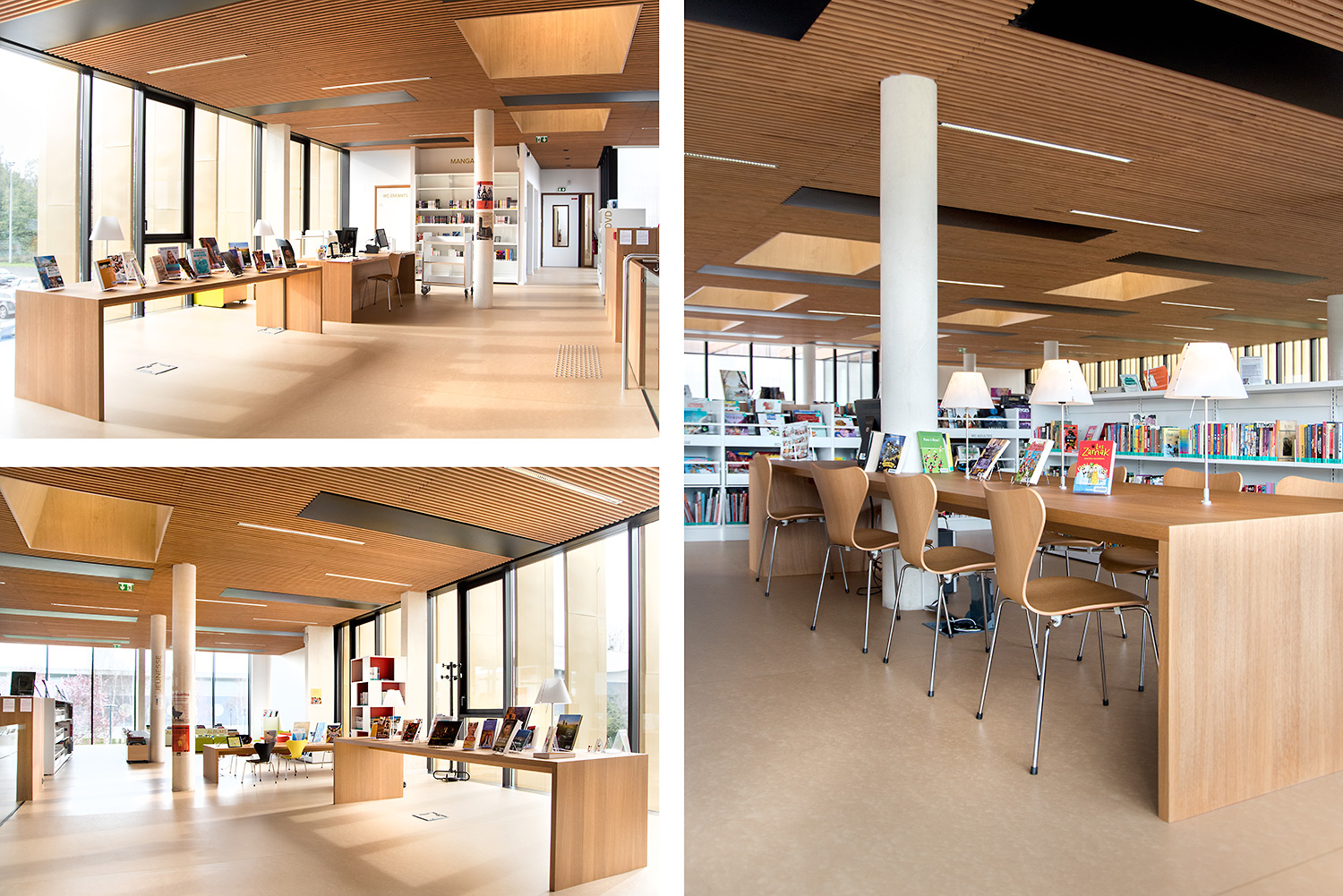 Produits utilisés à la Médiathèque Quai des Mondes, Mondeville, France