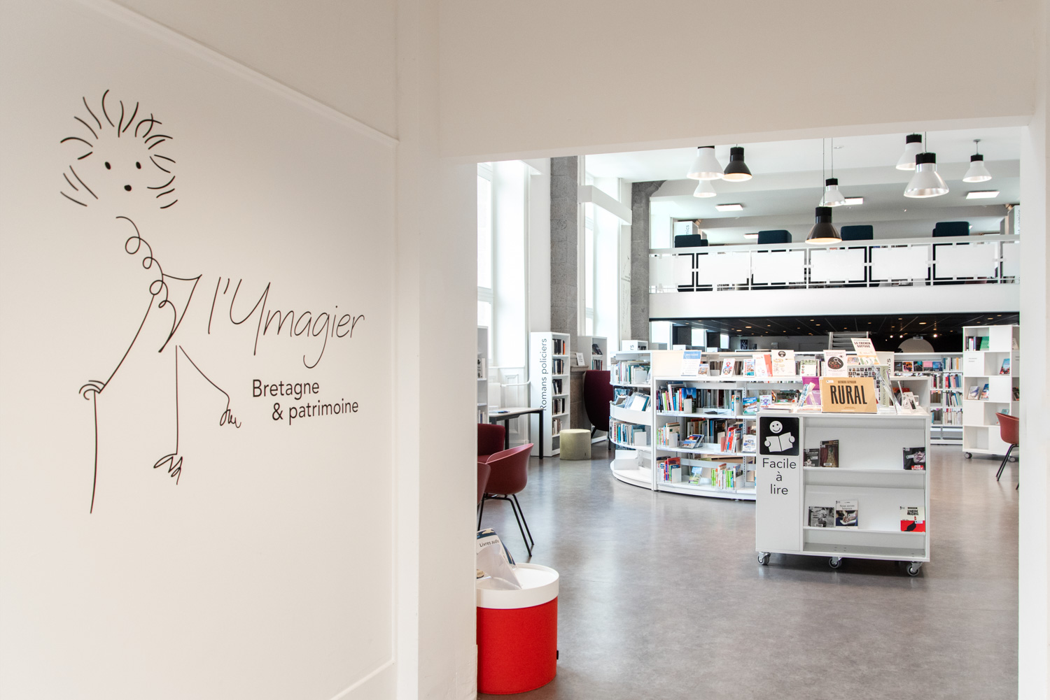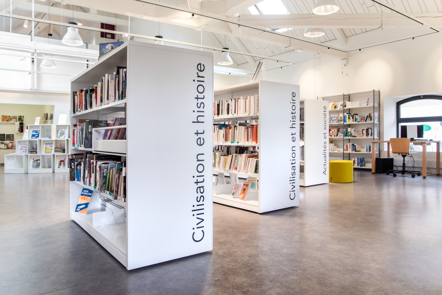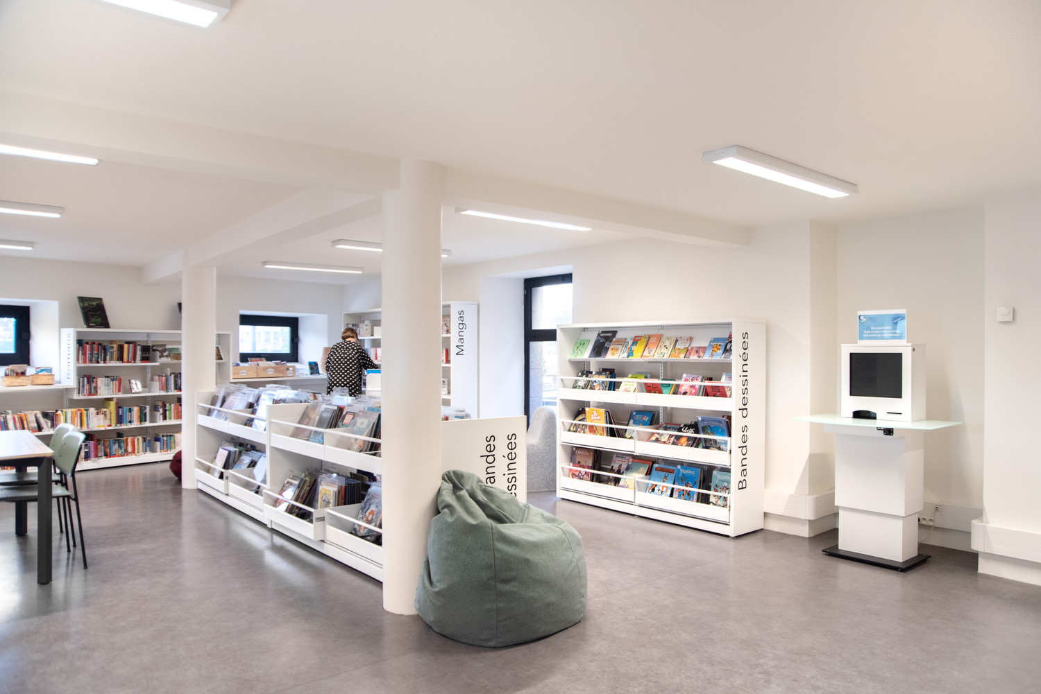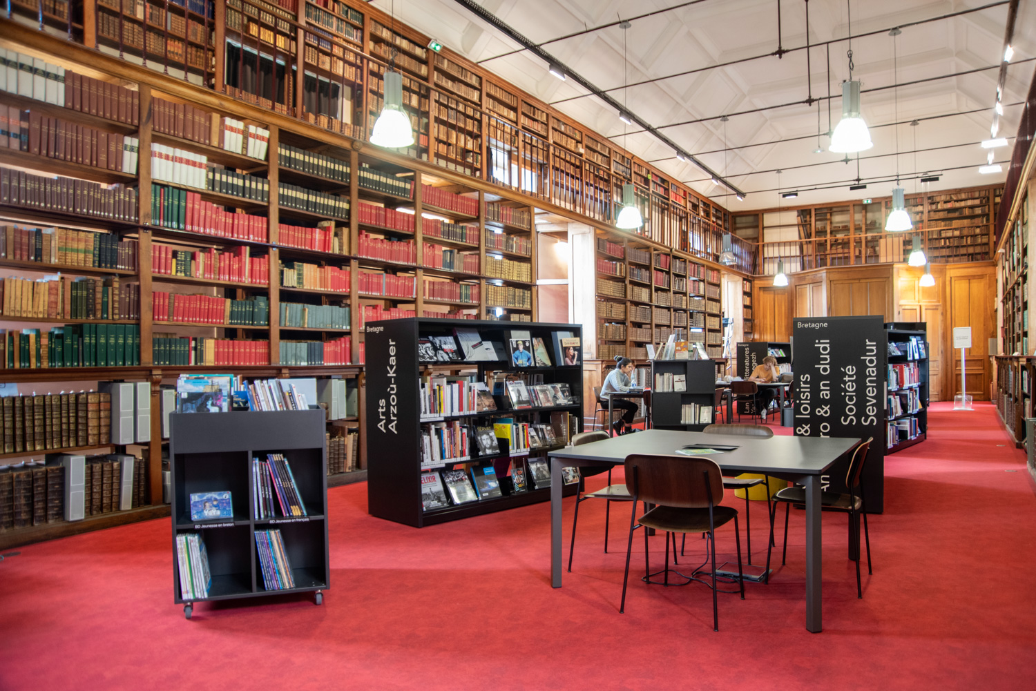 Après 18 mois de travaux, la Médiathèque André Malraux de Saint Brieuc a réouvert en décembre 2019. Avec 55 000 ouvrages en accès libres (sur 3 niveaux plus d’espace de circulation et de convivialité dans les nouveaux espaces. Le mobilier de la gamme London est décliné sur l’ensemble du bâtiment avec un module cintré au rez-de-chaussée. A faire, la visite de la salle patrimoniale du 2eme étage : rayonnage noir sol rouge et ancien rayonnage en chêne toute hauteur (magnifique).