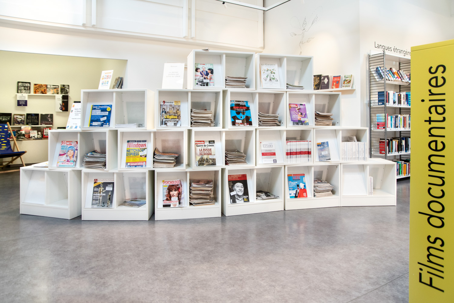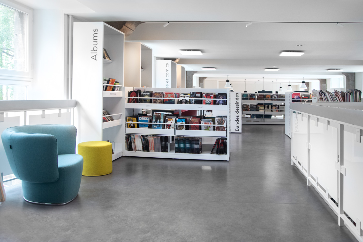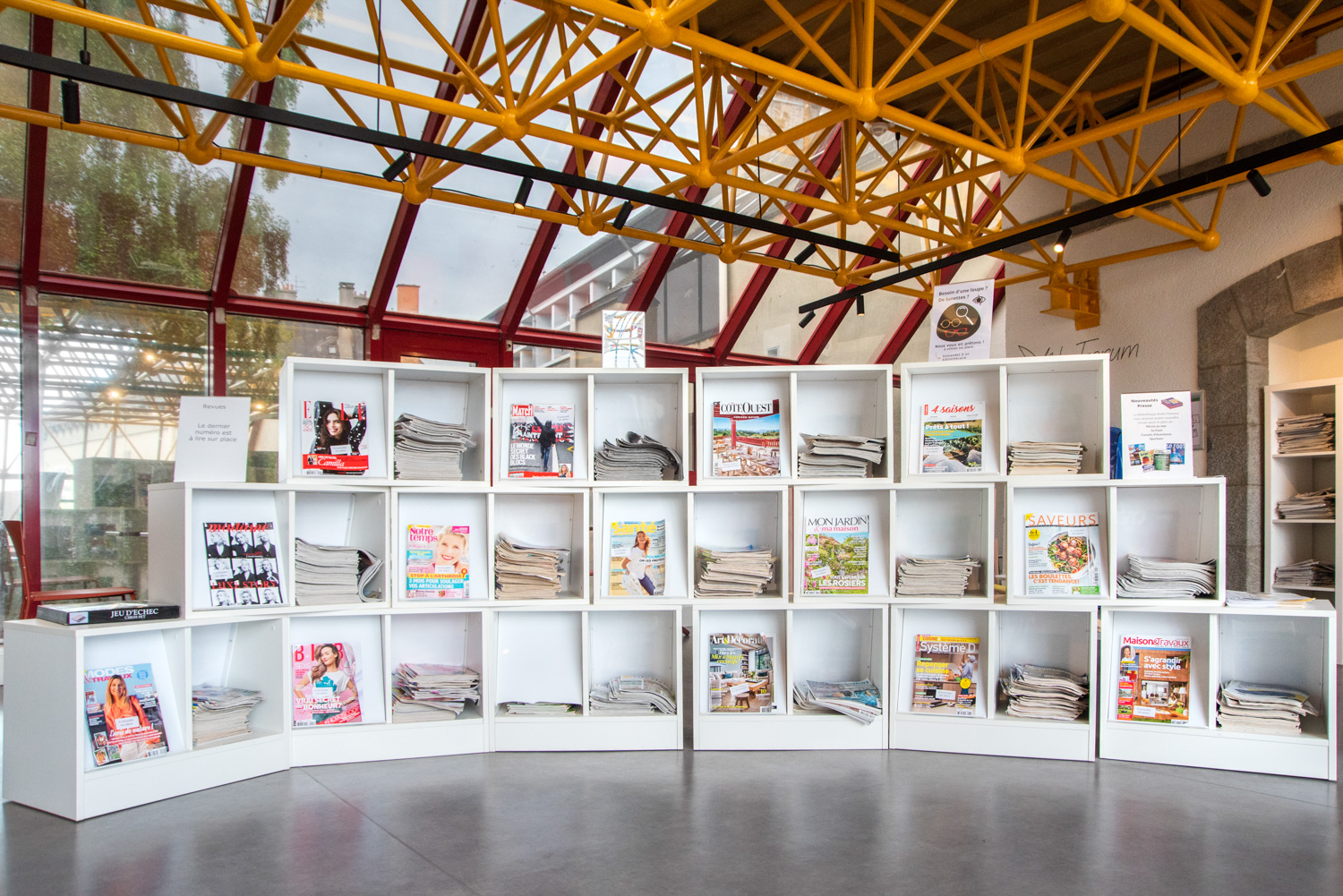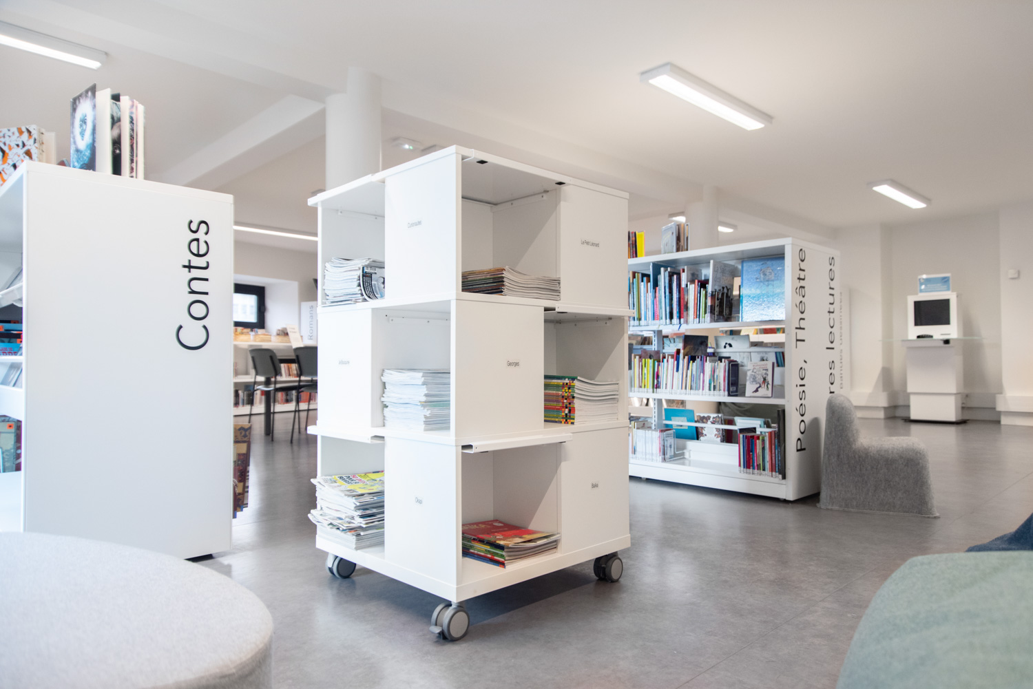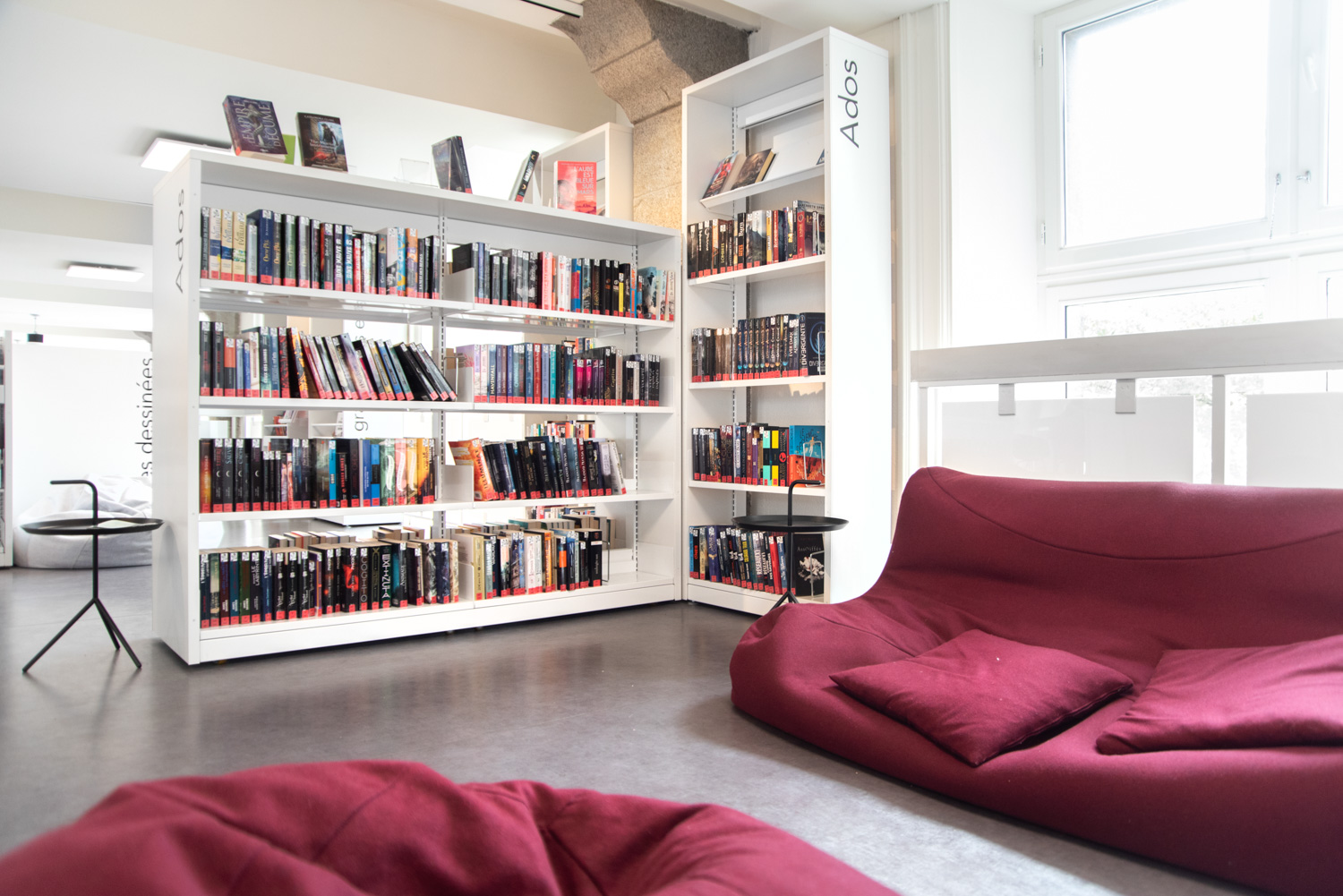 Après 18 mois de travaux, la Médiathèque André Malraux de Saint Brieuc a réouvert en décembre 2019. Avec 55 000 ouvrages en accès libres (sur 3 niveaux plus d’espace de circulation et de convivialité dans les nouveaux espaces. Le mobilier de la gamme London est décliné sur l’ensemble du bâtiment avec un module cintré au rez-de-chaussée. A faire, la visite de la salle patrimoniale du 2eme étage : rayonnage noir sol rouge et ancien rayonnage en chêne toute hauteur (magnifique).