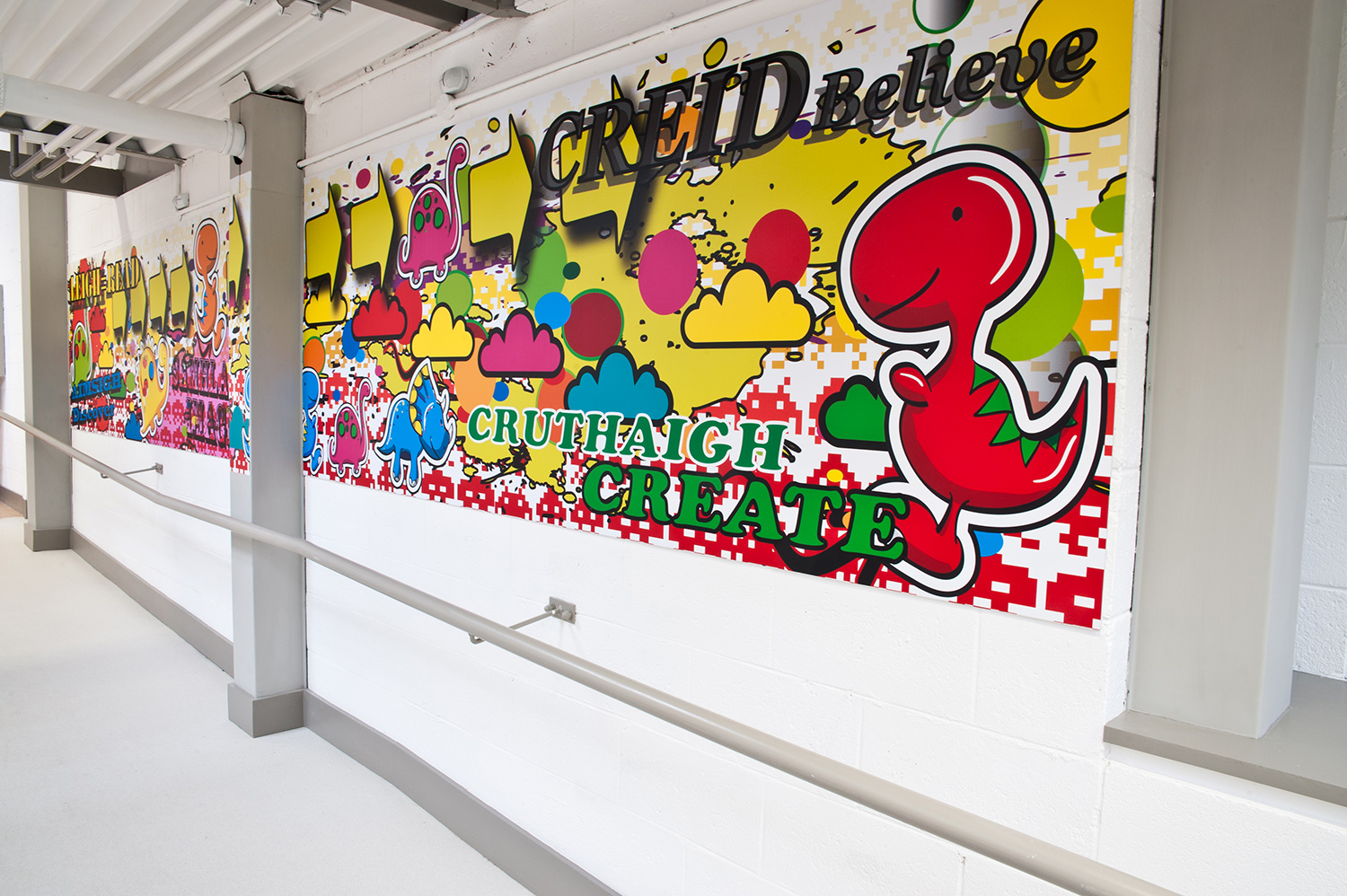 Des éléments graphiques de grand format sont utilisés pour ajouter un intérêt local et un supplement d’attrait.