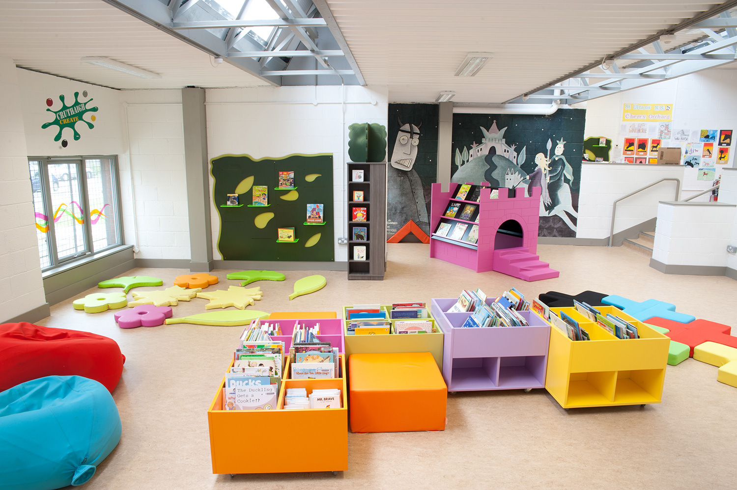Parents et enfants constituent un groupe d’utilisateurs particulièrement important à la bibliothèque et l’objectif était d’en faire un espace accueillant et spécial pour eux. Il doit y avoir un équilibre entre l’indépendance, le jeu et l’exploration des enfants, et les impératifs de la sécurité et de surveillance. La sélection de meubles est dynamique, interactive et novatrice, afin de faire participer les enfants et leur offrir une experience qui dépasse toutes les attentes. Il est crucial que la section enfants de la bibliothèque réponde véritablement à leurs besoins, plutôt que d’être simplement une version réduite de l’espace adulte.