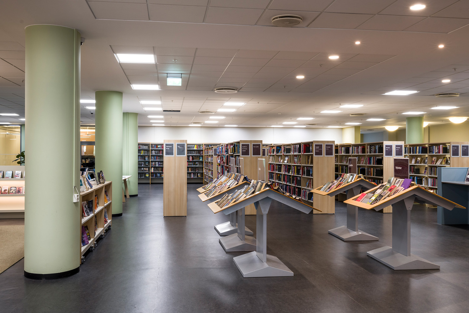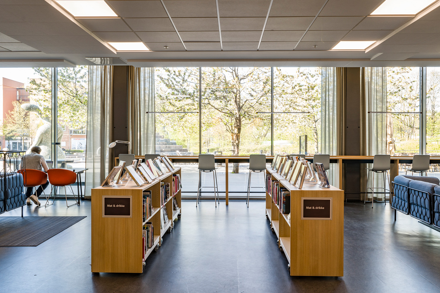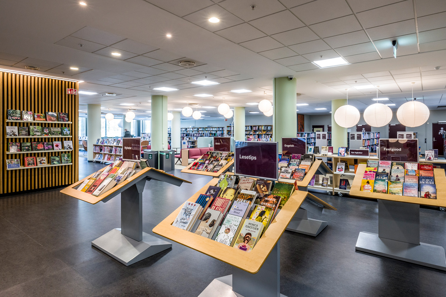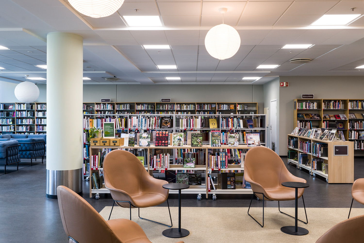 La Bibliothèque d’Asker est un lieu emblématique de la ville et un centre dynamique dédié à l’apprentissage, à l’inspiration et aux échanges. Grâce à sa position centrale et à ses vastes façades vitrées, la bibliothèque attire naturellement les visiteurs, devenant ainsi un point de rencontre incontournable. À la suite d’une rénovation complète des locaux, avec un nouvel agencement, de nouvelles couleurs et le remplacement de la majorité des rayonnages, l’espace offre désormais une atmosphère contemporaine et accueillante. Ces transformations contribuent à séduire un public toujours plus large, attiré par l’ambiance conviviale du lieu.