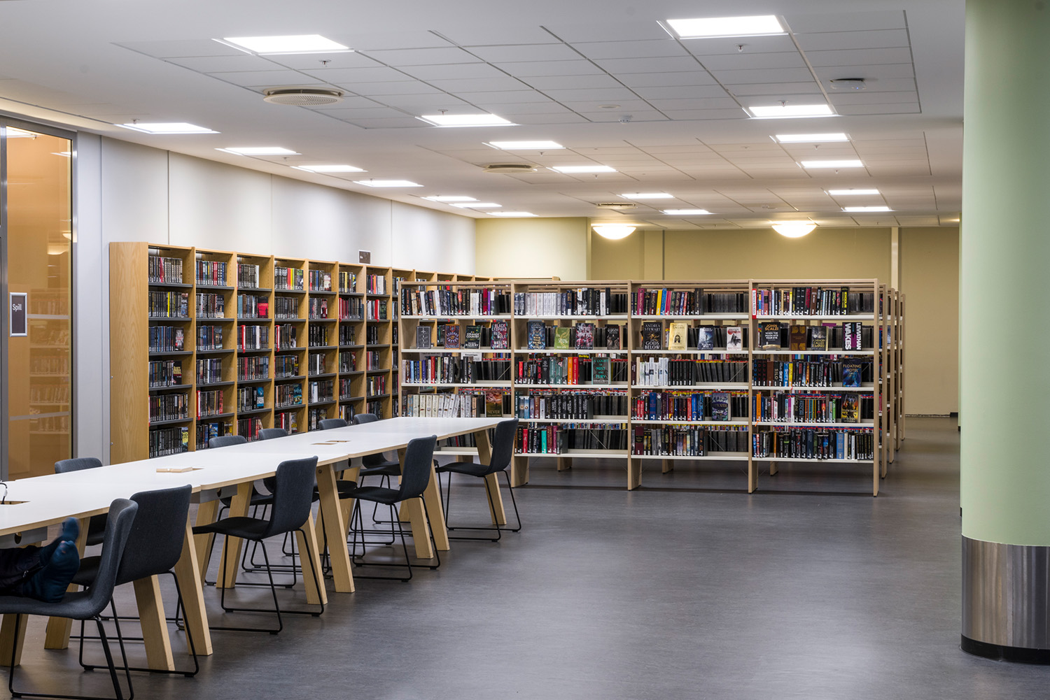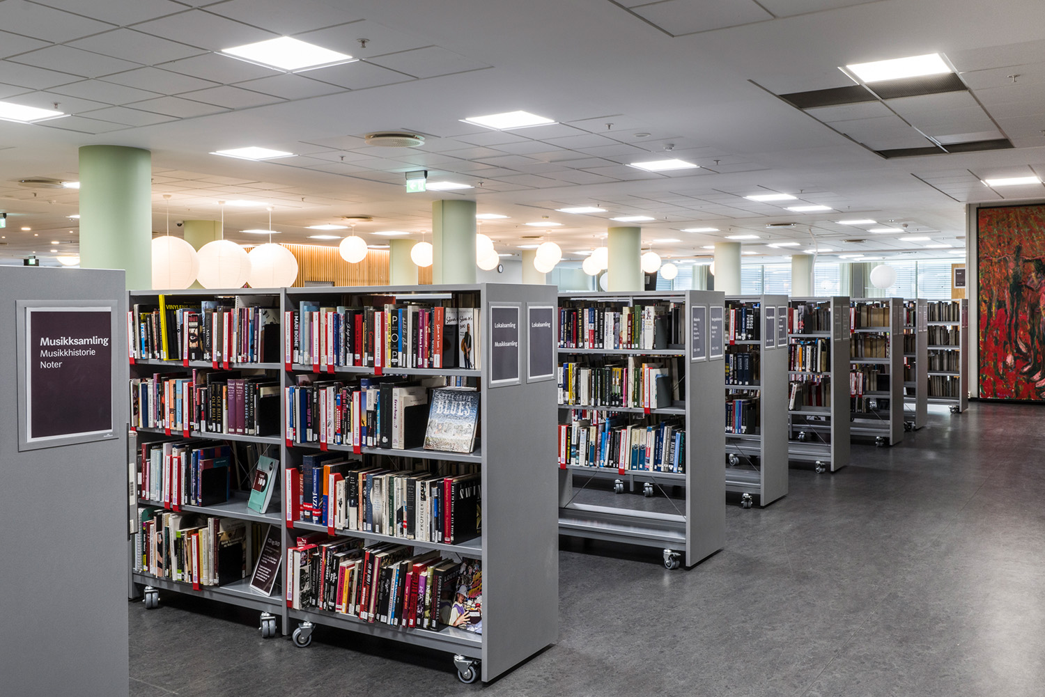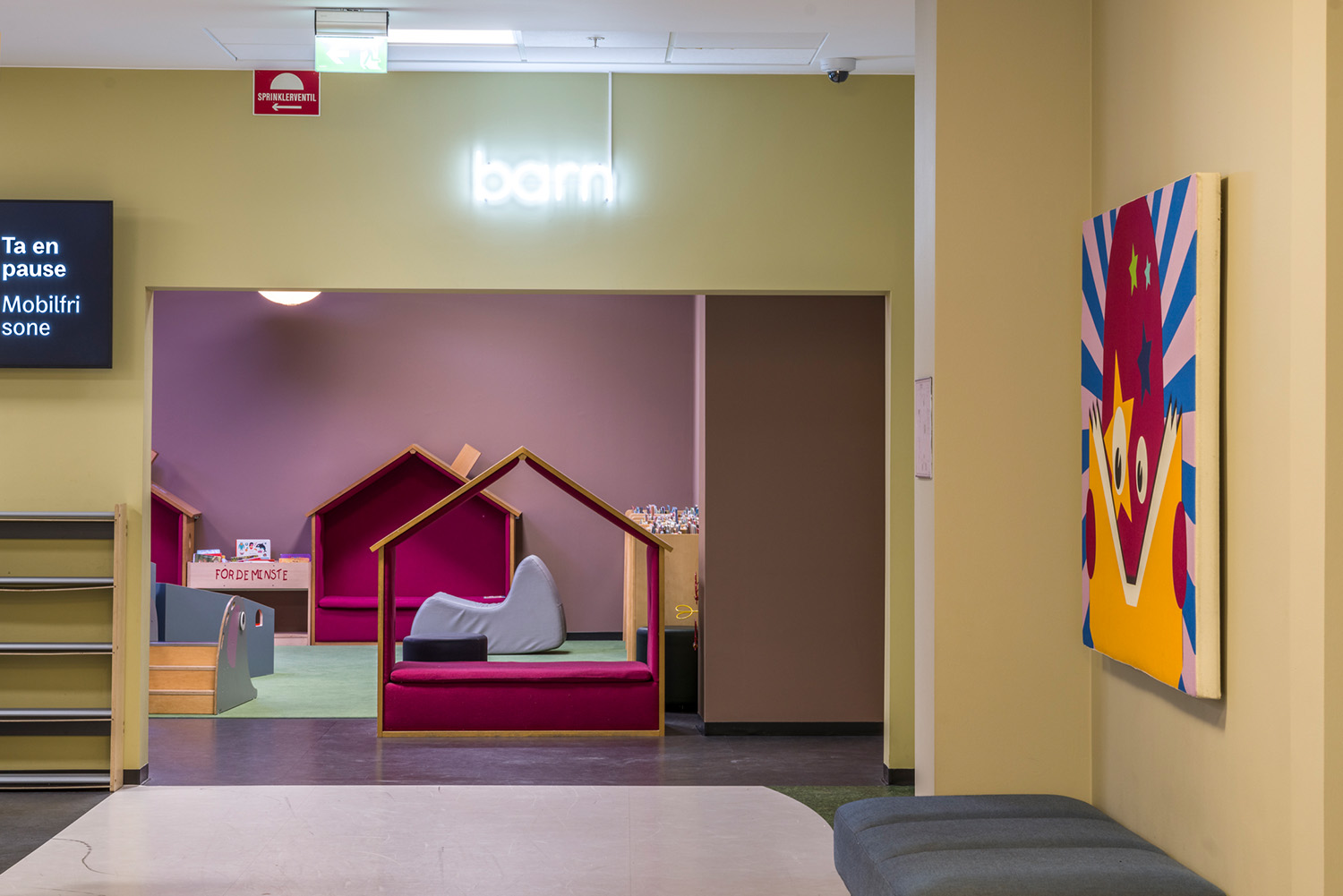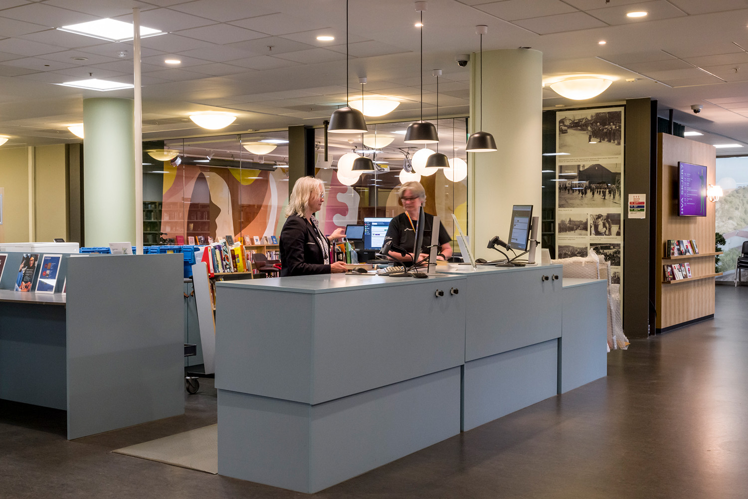 La Bibliothèque d’Asker est un lieu emblématique de la ville et un centre dynamique dédié à l’apprentissage, à l’inspiration et aux échanges. Grâce à sa position centrale et à ses vastes façades vitrées, la bibliothèque attire naturellement les visiteurs, devenant ainsi un point de rencontre incontournable. À la suite d’une rénovation complète des locaux, avec un nouvel agencement, de nouvelles couleurs et le remplacement de la majorité des rayonnages, l’espace offre désormais une atmosphère contemporaine et accueillante. Ces transformations contribuent à séduire un public toujours plus large, attiré par l’ambiance conviviale du lieu.