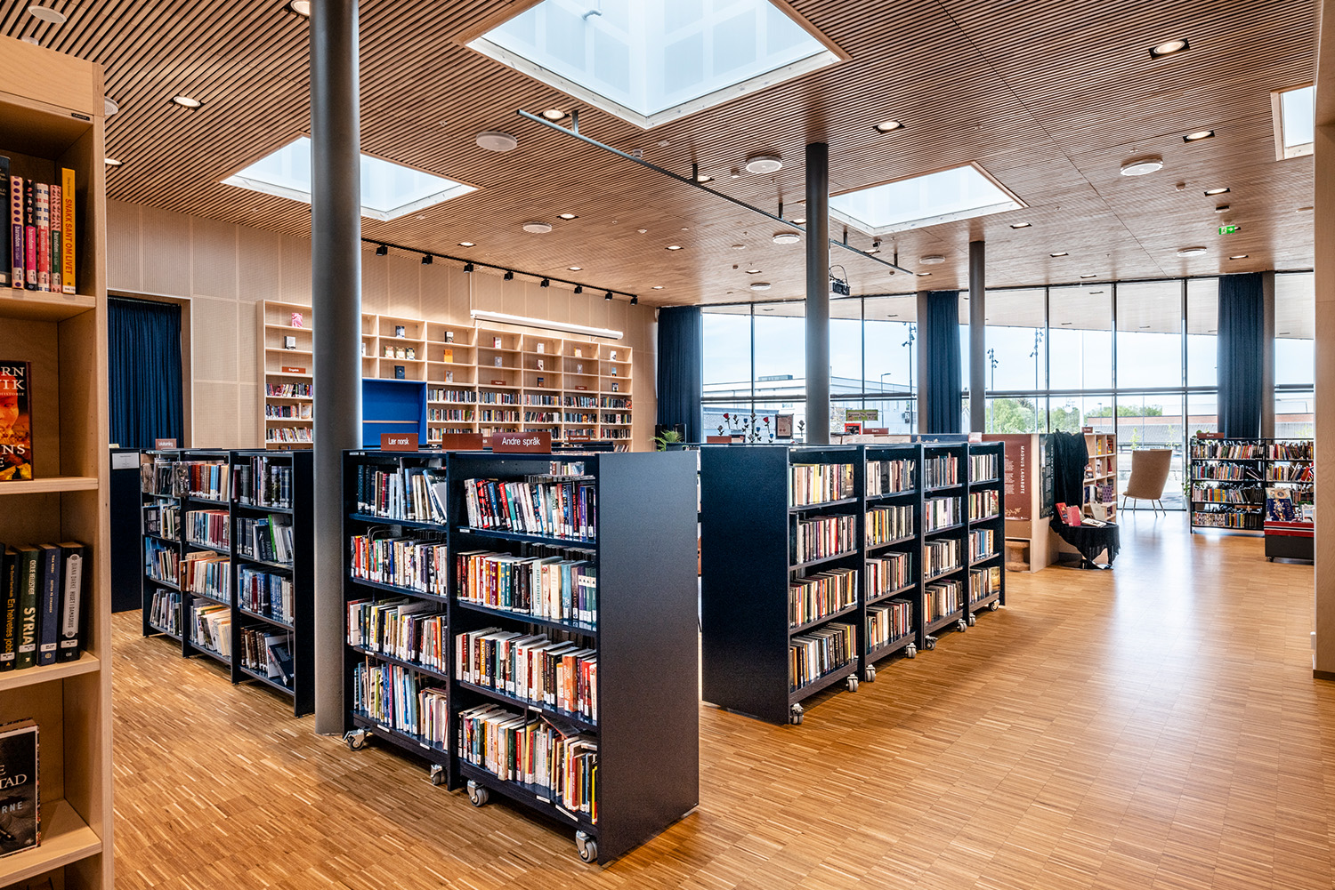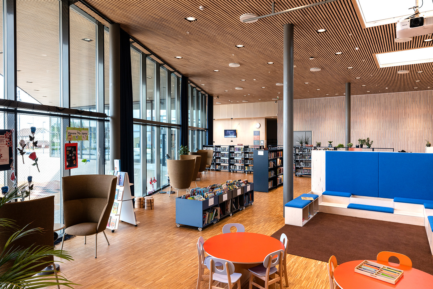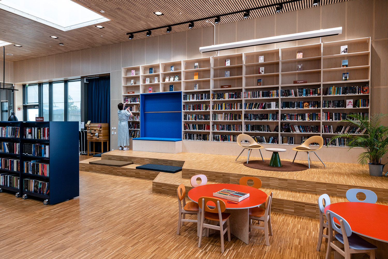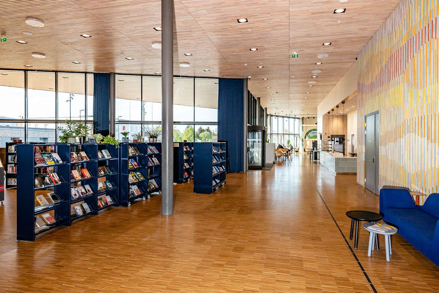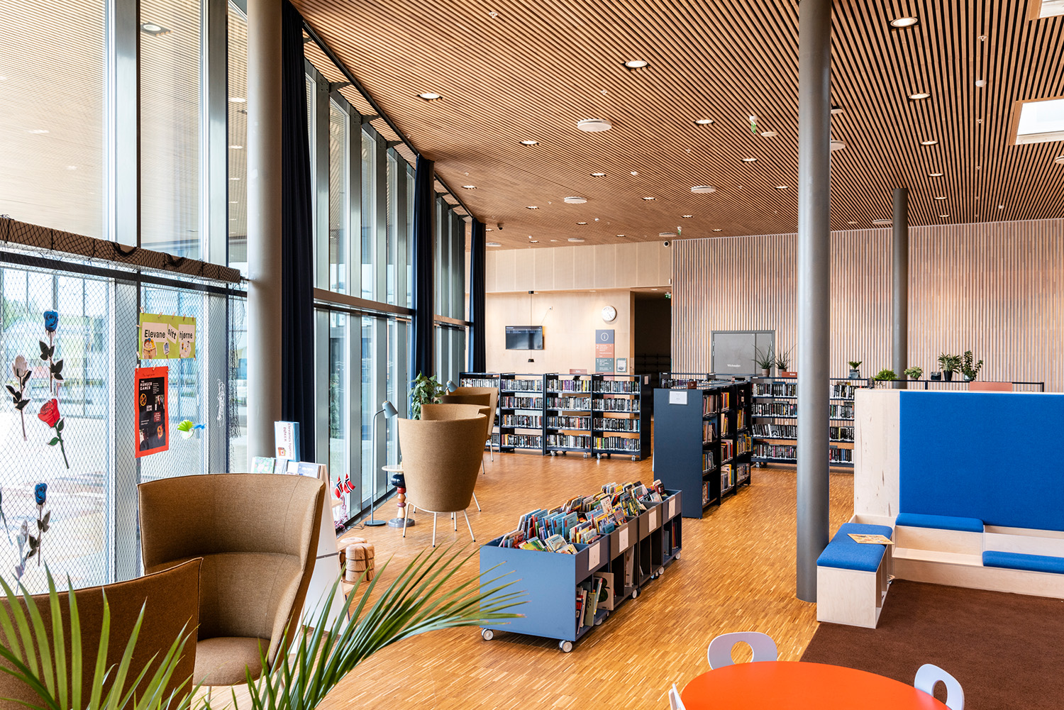 La bibliothèque est stratégiquement bien située au niveau inférieur du centre culturel, avec de hauts plafonds et d'immenses fenêtres allant du sol au plafond. Le centre abrite également une piscine couverte, un café, une école culturelle et un grand auditorium de 220 places destiné aux projections de films, aux concerts et aux représentations théâtrales, ainsi qu’ un club de jeunes et des espaces de bureaux.