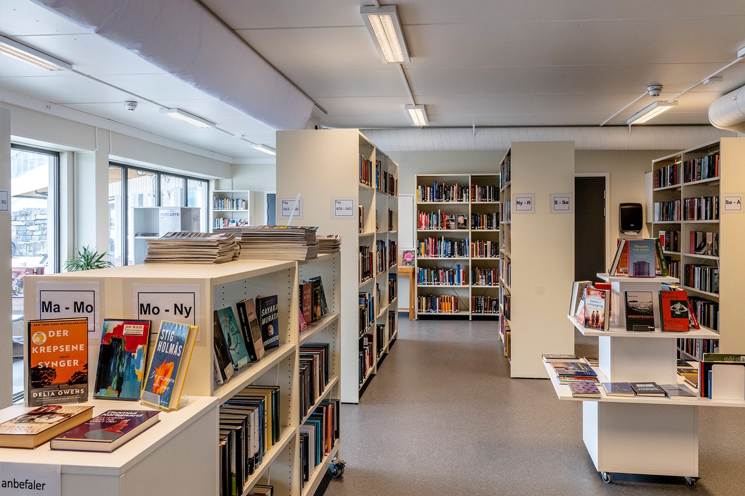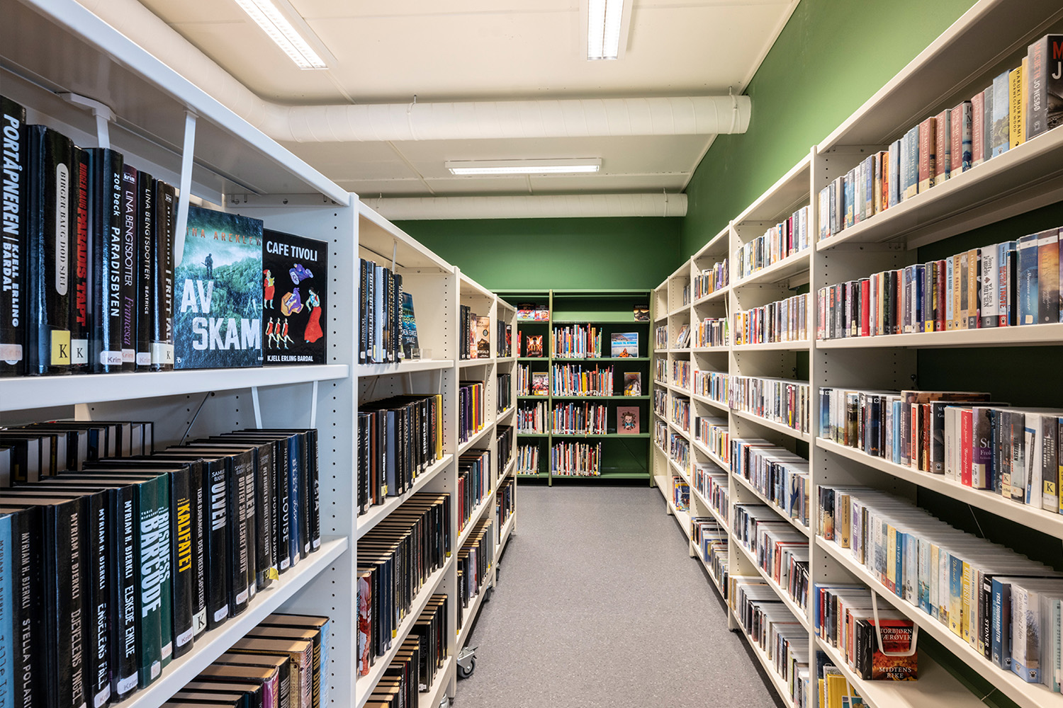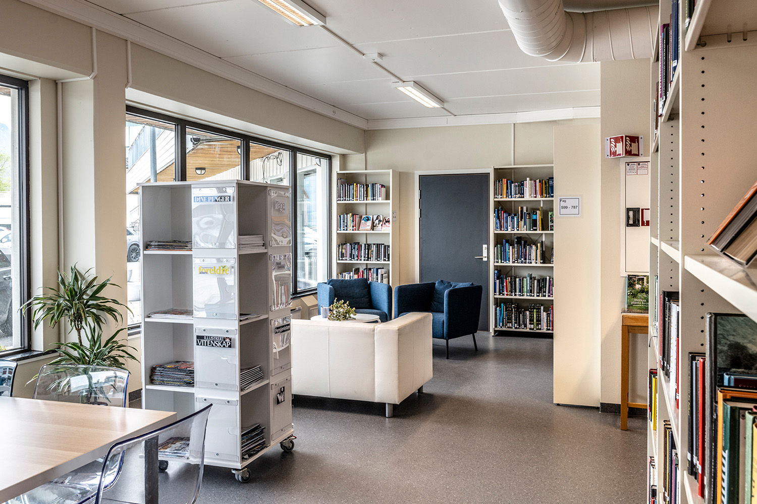 La bibliothèque visait une combinaison harmonieuse de nouvelles étagères fonctionnelles et de comptoirs, agrémentée par la réutilisation de meubles et de présentoirs à livres existants. Notre équipe de design norvégienne, BS Eurobib, a pris en charge l'agencement et les schémas de couleurs, en collaboration avec un distributeur local pour fournir des systèmes d'étagères, des comptoirs, des tours d'exposition, des chariots à livres et bien plus encore.