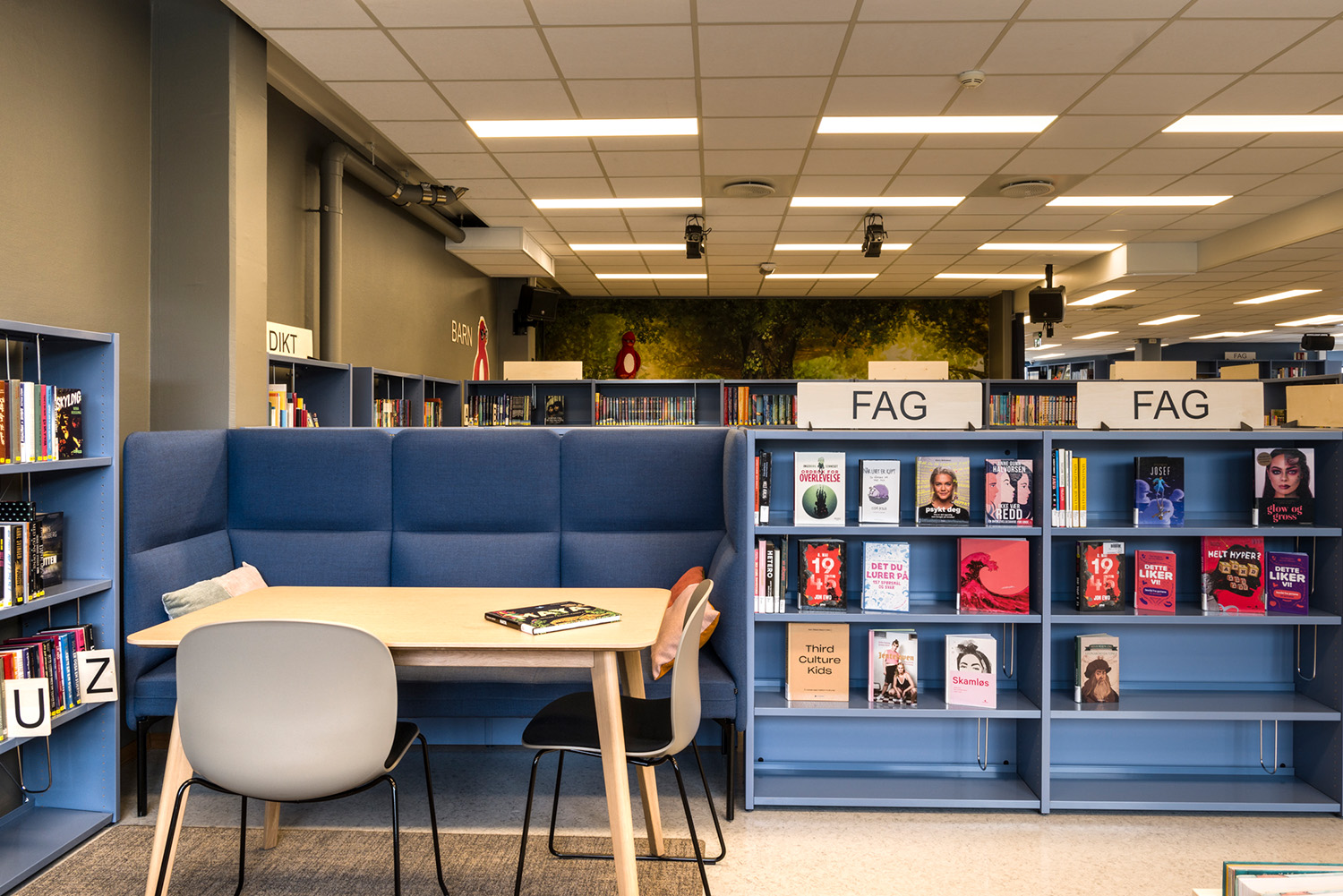 En décembre 2024, après deux mois de travaux, la bibliothèque de Jevnaker a de nouveau rouvert ses portes au public. Bien que les locaux conservent leur surface de 308 mètres carré, ils offrent désormais une atmosphère chaleureuse et accueillante. De nouvelles couleurs, un mobilier moderne et un éclairage revisité apportent un vent de fraîcheur au lieu. Les sols ont été rénovés, l’agencement des espaces repensé, et plusieurs zones distinctes ont été aménagées pour la lecture, l’apprentissage et les activités culturelles.