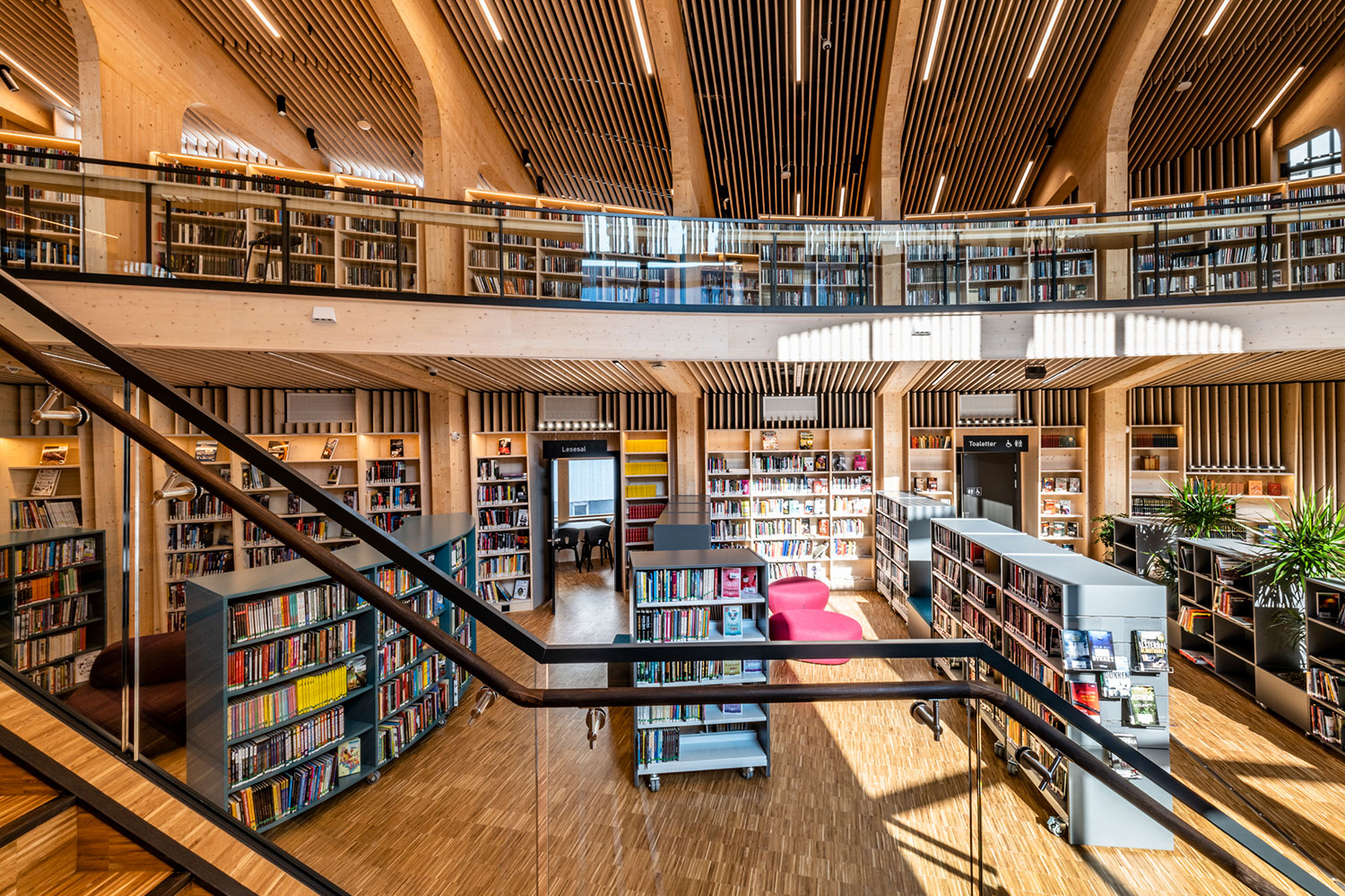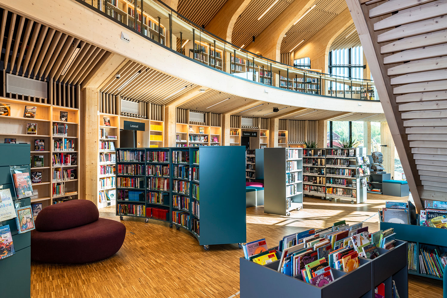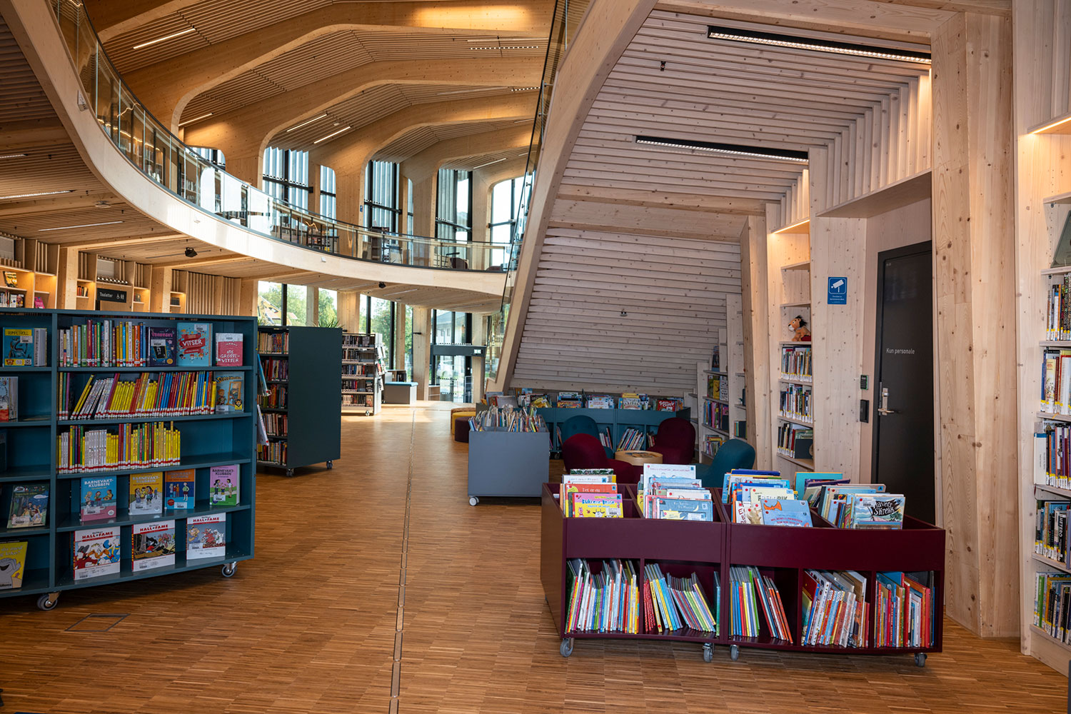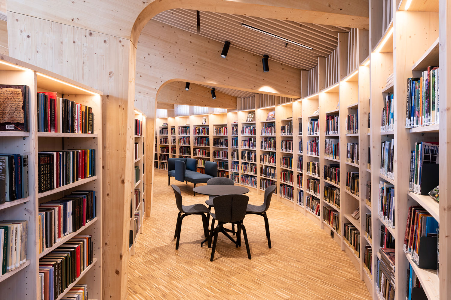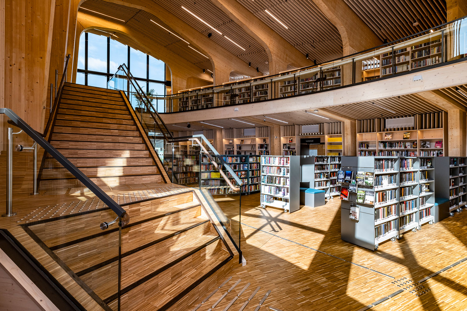 Le bâtiment spectaculaire, de forme organique, est devenu un aimant pour les amateurs de littérature et d’architecture. La structure de l’édifice est en bois massif avec un atrium ouvert au centre.