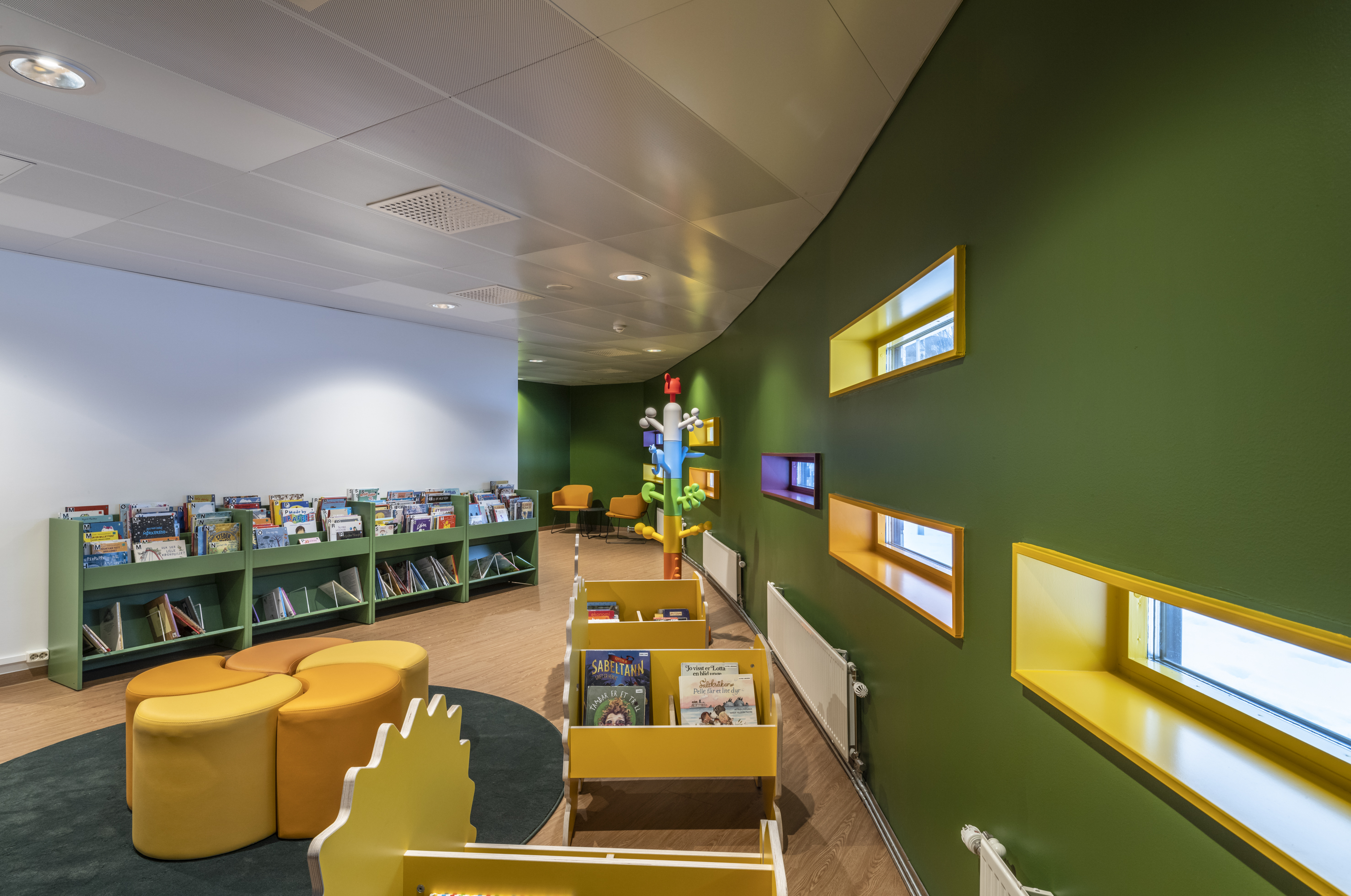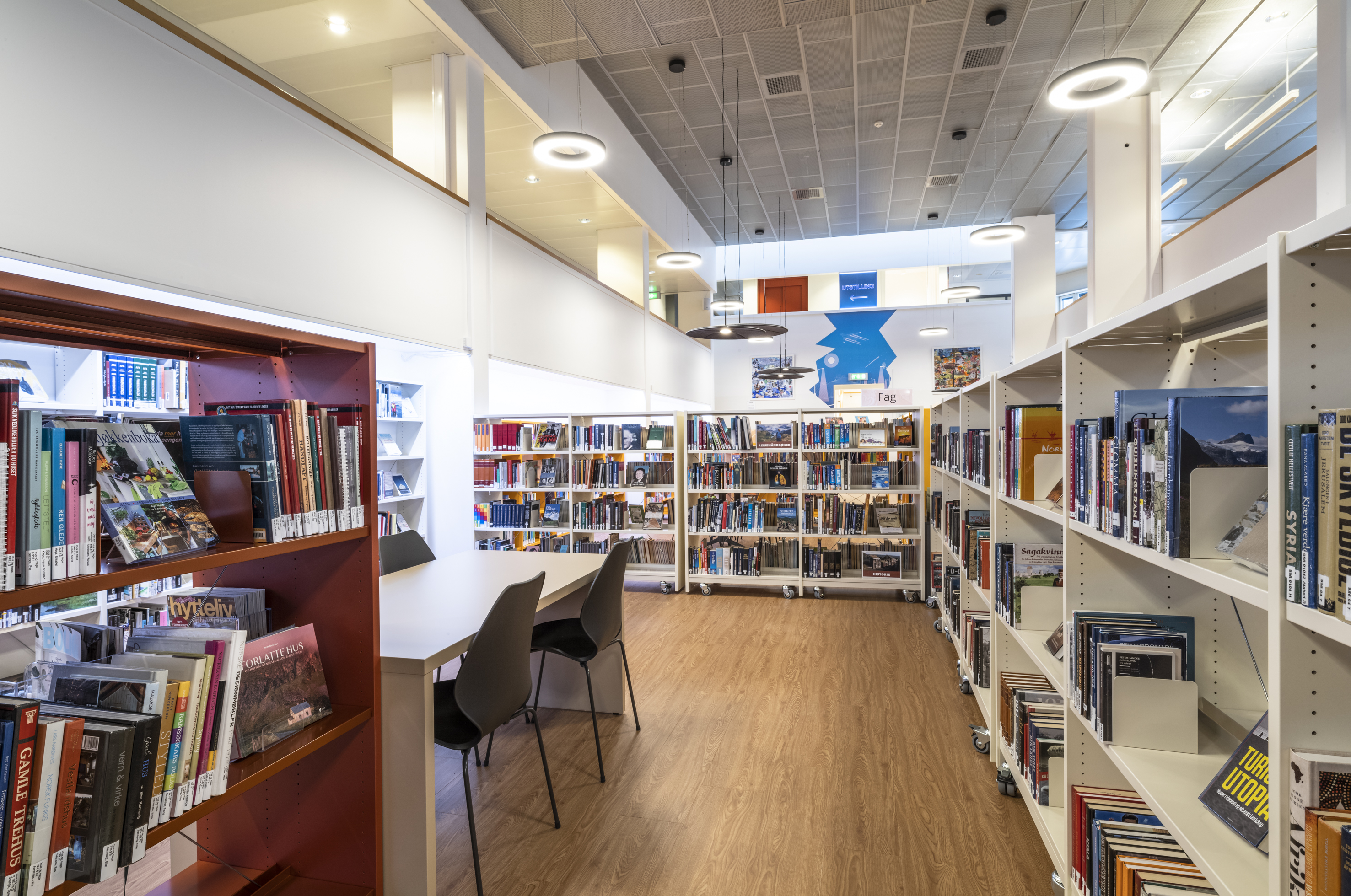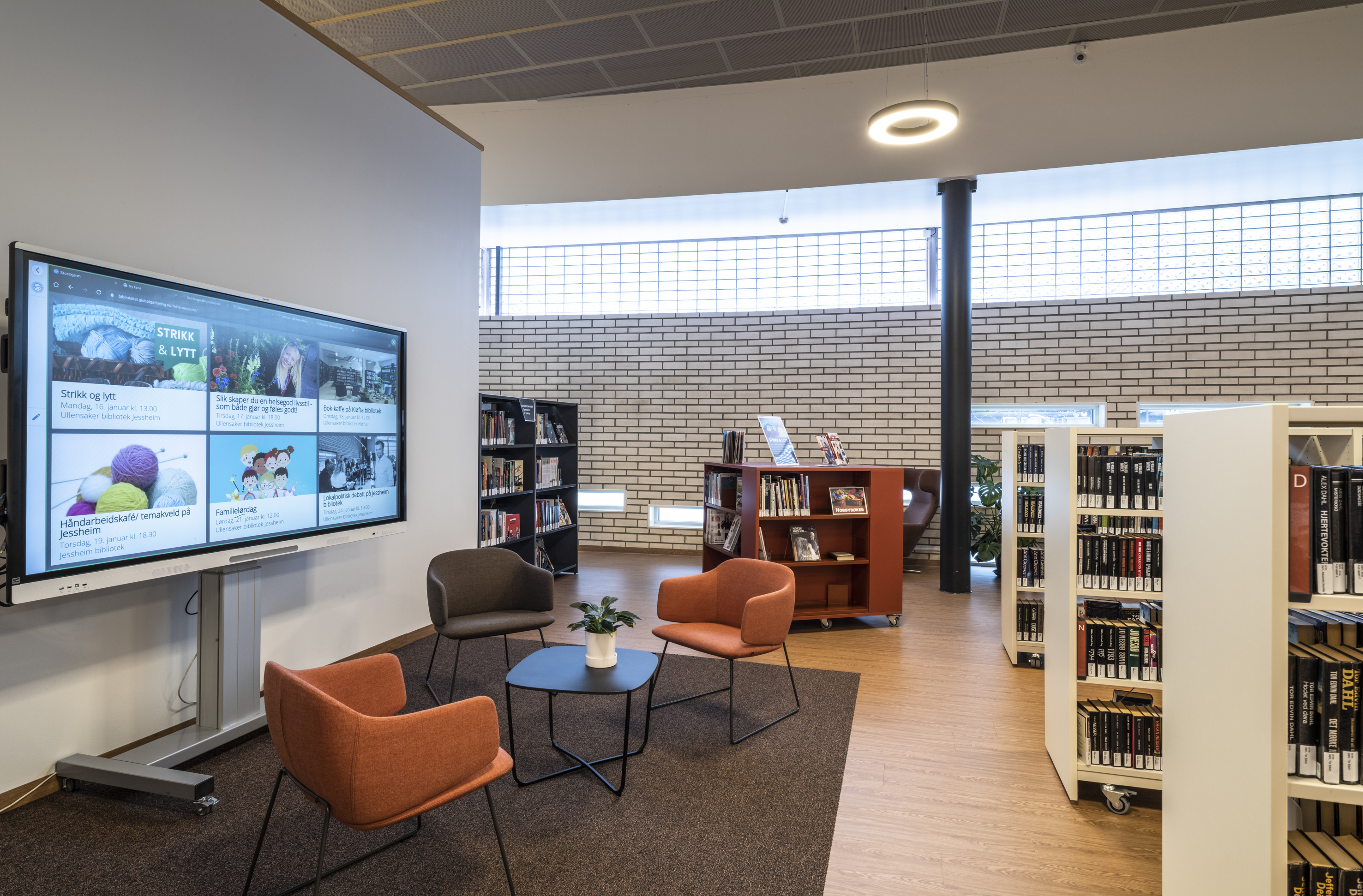 La bibliothèque municipale d'Ullensaker est située dans la ville de Jessheim. Le 5 janvier 2023, elle a été officiellement réouverte après d'importants travaux de rénovation, au cours desquels tout le mobilier a été renouvelé. En outre les coloris choisis s'harmonisent avec les éléments de base des locaux restaurés.