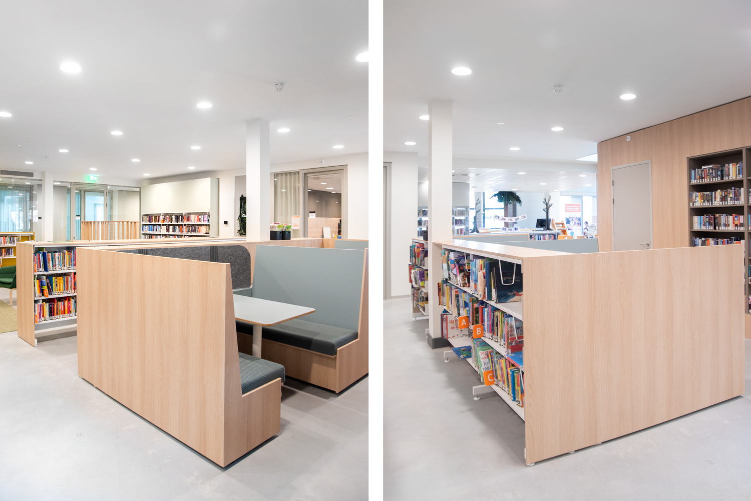 Le designer Rob Lindhout souligne : « La conception et le design dans son ensemble caractérisent la nouvelle orientation pour la bibliothèque, axée sur les réunions, l'apprentissage (les uns des autres), la connaissance et, bien sûr, la lecture. Les rayonnages de la bibliothèque ont été intégrés de manière harmonieuse dans la décoration globale des lieux ».