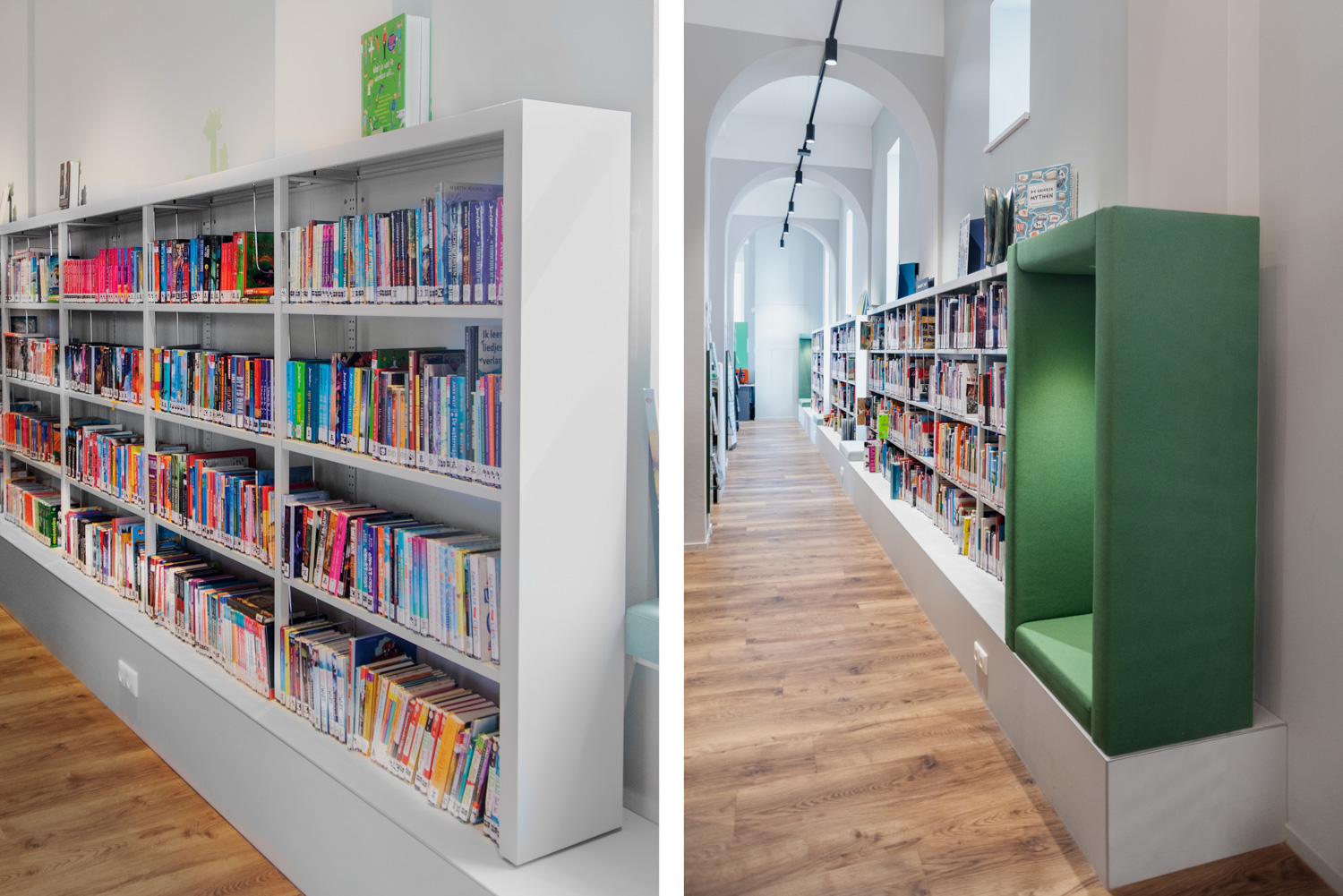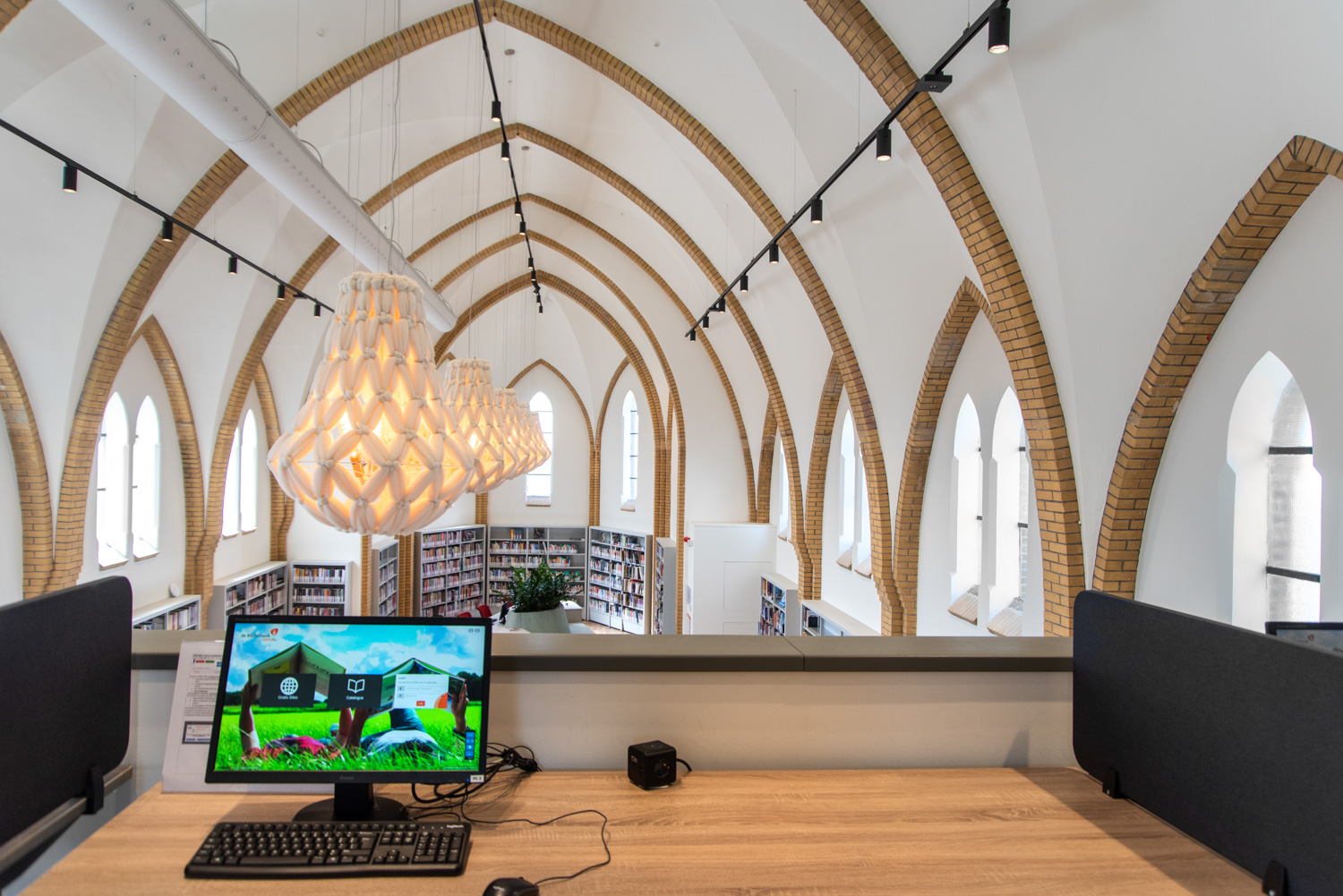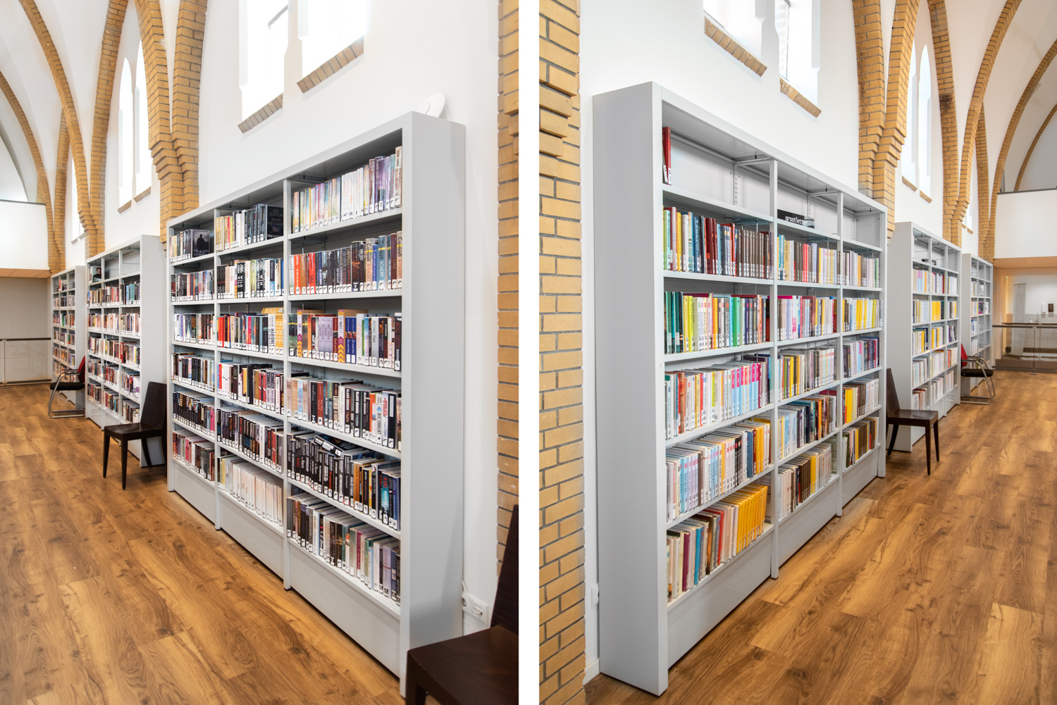 L'histoire de 't Gasthoes à Horst aan de Maas remonte à 1475. Le bâtiment a servi de refuge aux étrangers et aux pèlerins, et même d'hôpital et de cachette pendant la guerre. Aujourd'hui, l'ancienne chapelle de 't Gasthoes est utilisée à des fins plus modernes. Il s'agit maintenant d'un centre pluridisciplinaire comprenant, entre autre chose, une bibliothèque. De nouveaux rayonnages de bibliothèque ont été placés entre les éléments structurels du bâtiment historique. Ils sont munis de plinthe pour un usage et entretien pratiques.